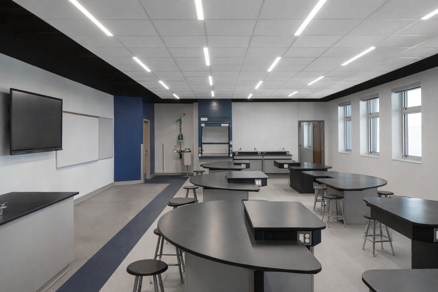 The finished installation delivers a highly functional, code-conscious, and safety-forward flooring solution that transforms flooring from a passive finish into an active life-safety communication tool. Students and staff can intuitively understand where to shelter during a lockdown, while the design intent of the space remains intact.