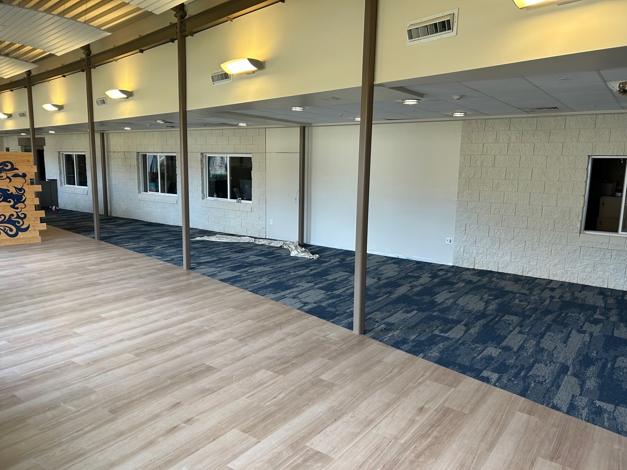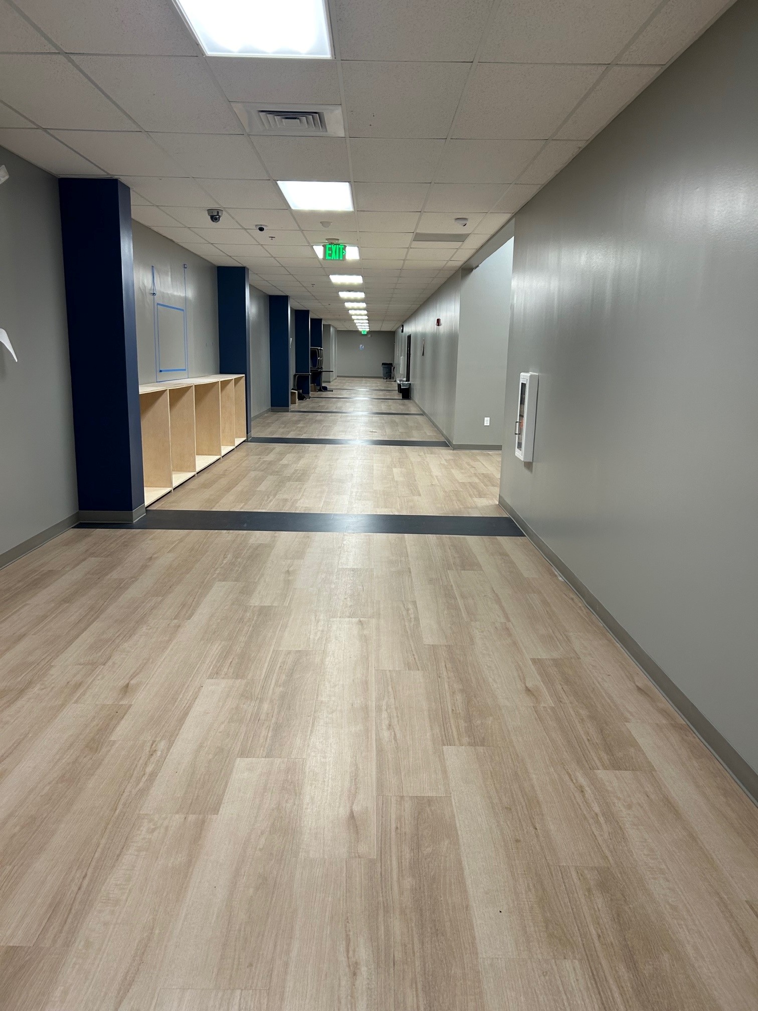 Within days of flooding PBI was contacted to be involved with the restoration process through the school, remediation company and a local GC. Over a couple week span we worked with the school on design, quoting and procuring materials to meet a rigid completion date of the end of December. With an overall footprint of 120,000 square feet, spread over three buildings – flooring began arriving early November and installation on the 18th. Flooring included Carpet Tile, LVP, Cove Base, Porcelain and Ceramic Tile, 16,000 + sqft of Hardwood Gym Floor, Rubber Tile and Interior Turf.