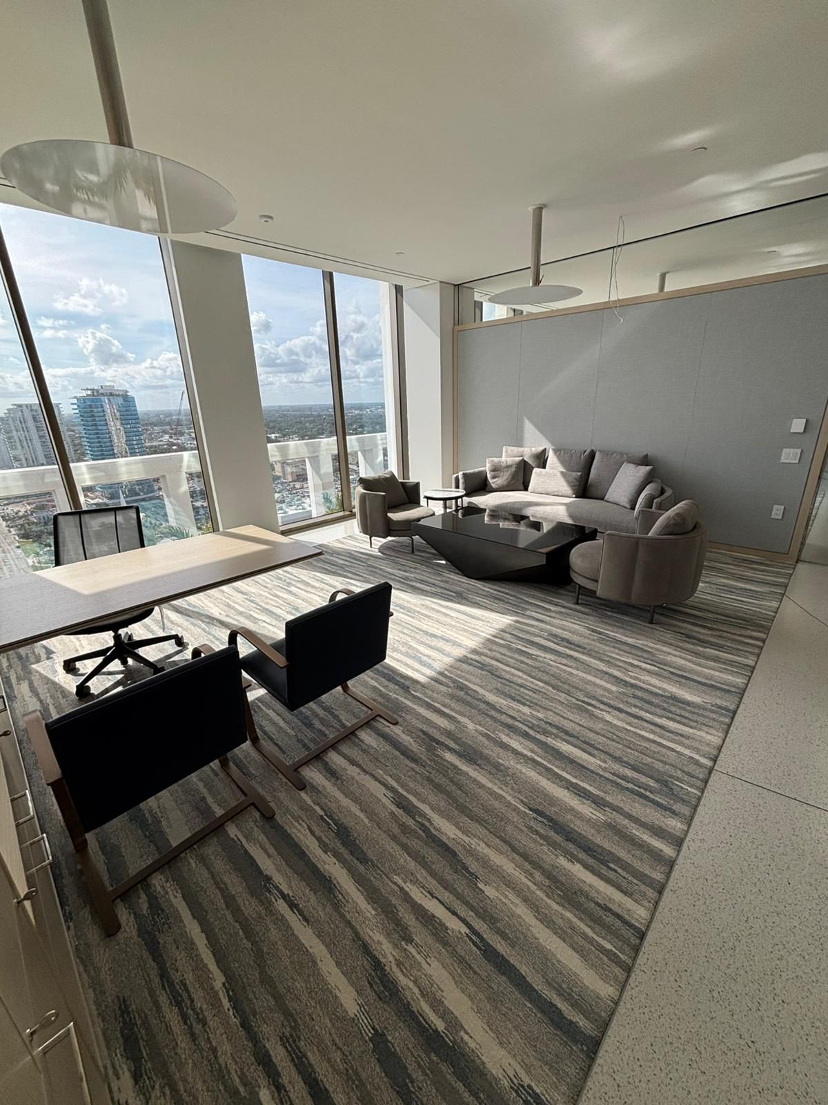For this project, we were entrusted with the installation of an ultra-luxurious, high-end carpet valued at over $100,000, all while coordinating with multiple trades actively working within the space. Given the carpet’s exceptional quality and significant investment, implementing stringent protective measures was paramount to preserving its pristine condition and ensuring the overall success of the project.