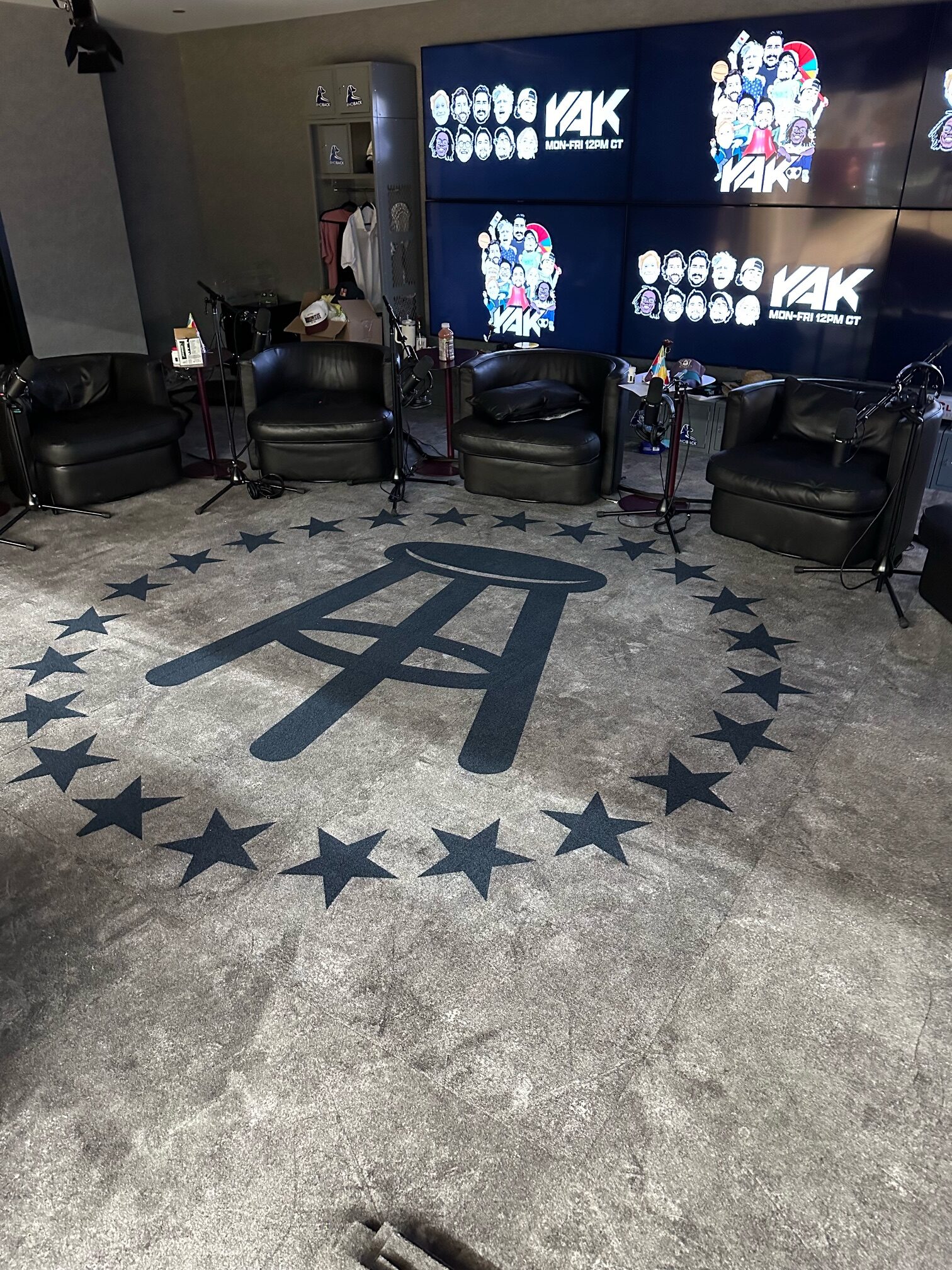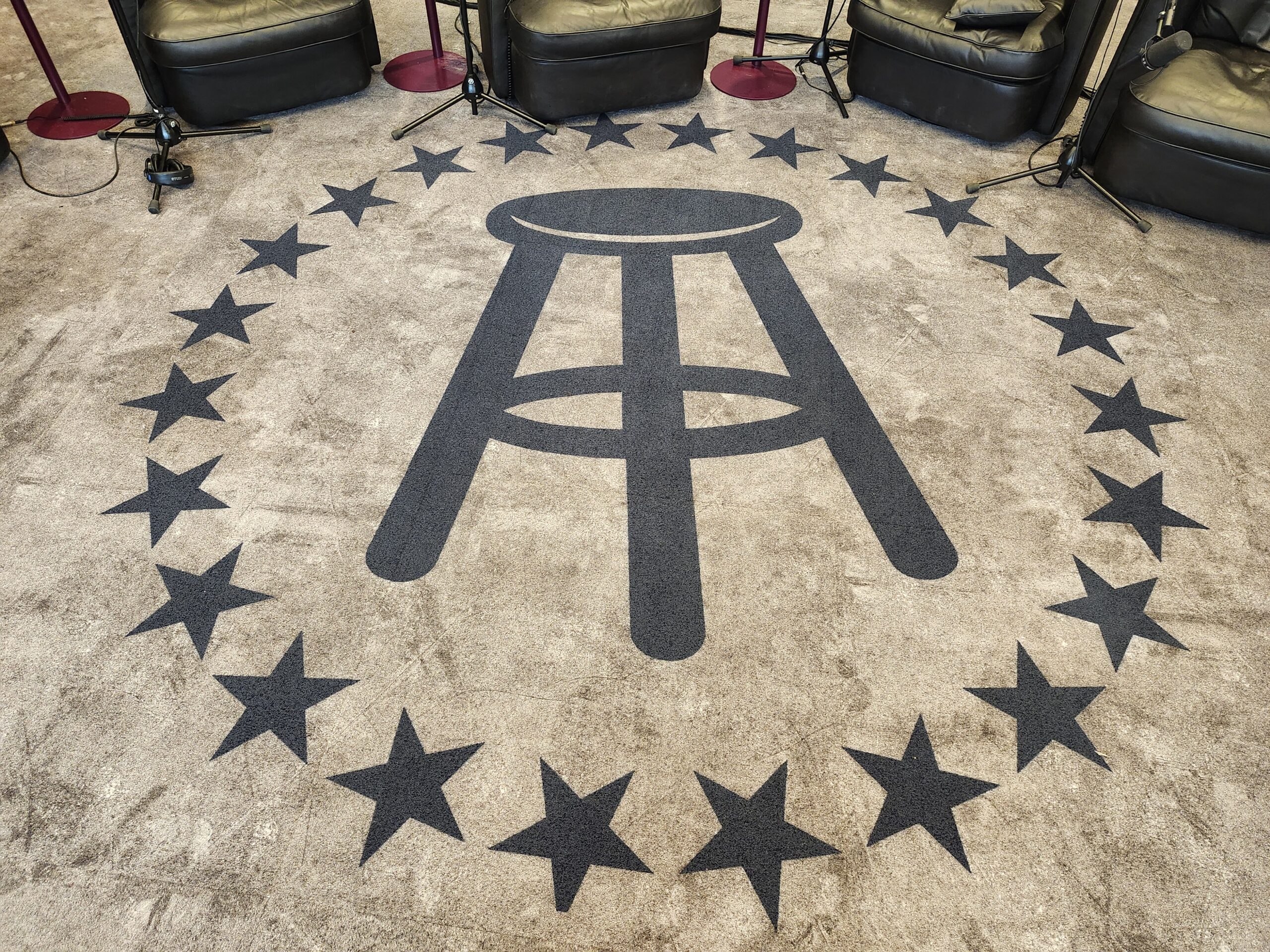 We installed custom Milliken carpet tiles, Shaw carpet tiles, as well as Tarkett rubber base, stair nosings and transitions to bring their flooring up to par with the unique design. The logo rugs set the scene for podcasts and social media posts.
