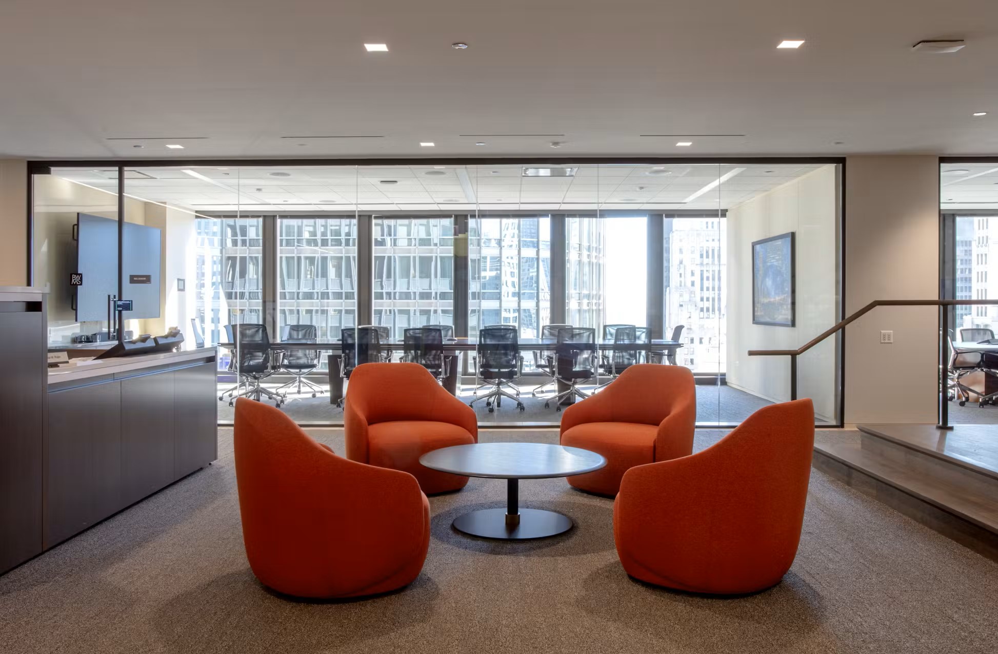 Phase construction was carefully planned to ensure the firm’s operations remained uninterrupted during the renovation, facilitating a smooth and seamless transition to the contemporary workspace.