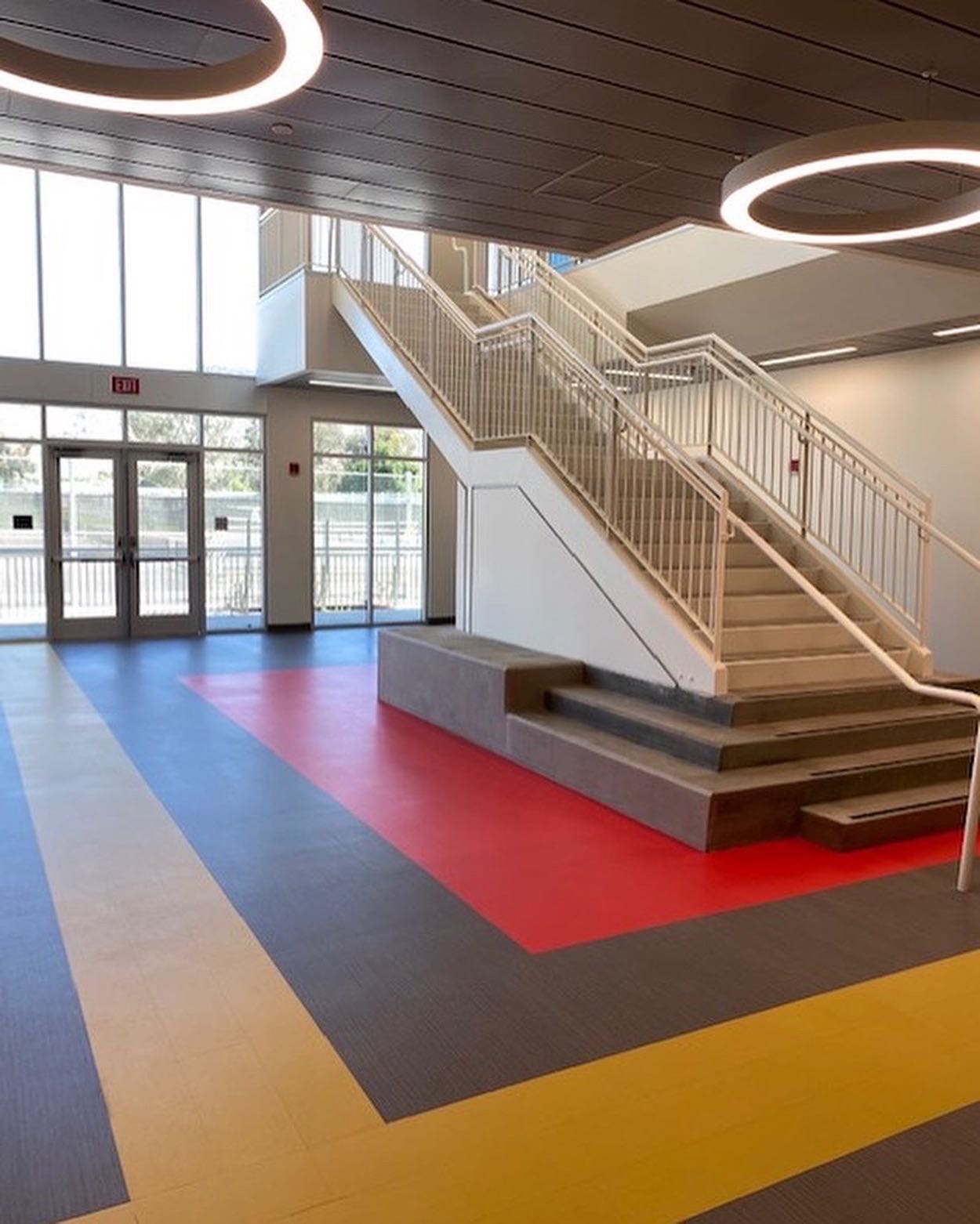 Two weeks into the installation, we contacted the GC and said there was no way we would finish by September 4th; there was just way too much construction traffic. It didn’t matter if we had 20 guys per day. There wasn’t enough open floor space to produce a quality project in such a short window! Two days later, they said that school doesn’t start until September 12th, that the days before were for teachers to prep their classrooms. They finally realized that the building would be incomplete and that teachers couldn’t move into half-completed classrooms and buildings. So we had one more week to complete our project.
