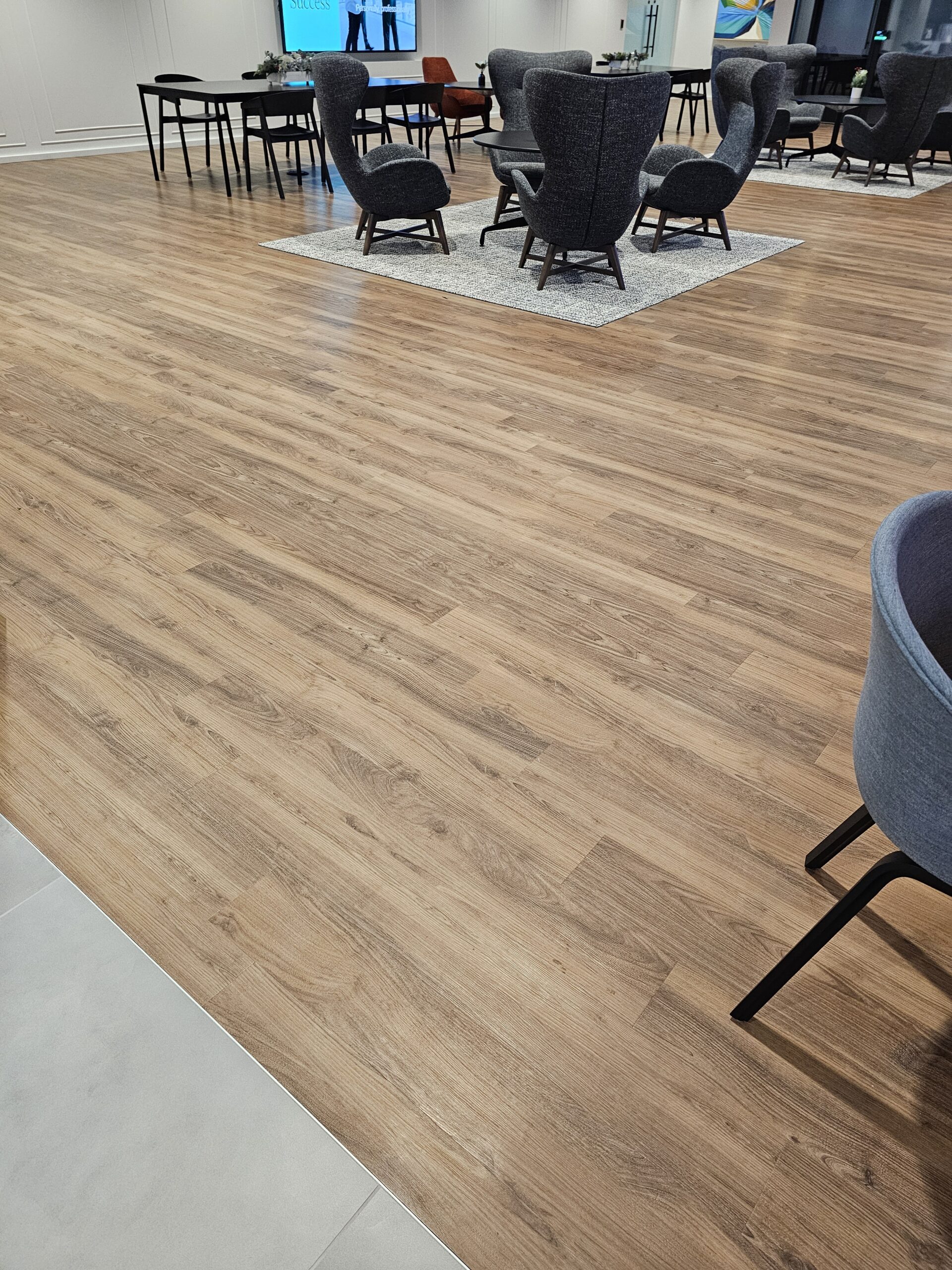 This beautiful, sleek project was on a fast-track schedule from the get go! We bid and were awarded within a month, then got submittals in right away to keep things moving. By another month later products were already in our warehouse and the job site was ready to go. From start to finish, we completed this 11,600+ SF project within 2 months. That’s also taking into account other trades being on top of us and certain areas being phased or blocked for a certain amount of time till ready. Overall this one was a great success and the client was very happy.