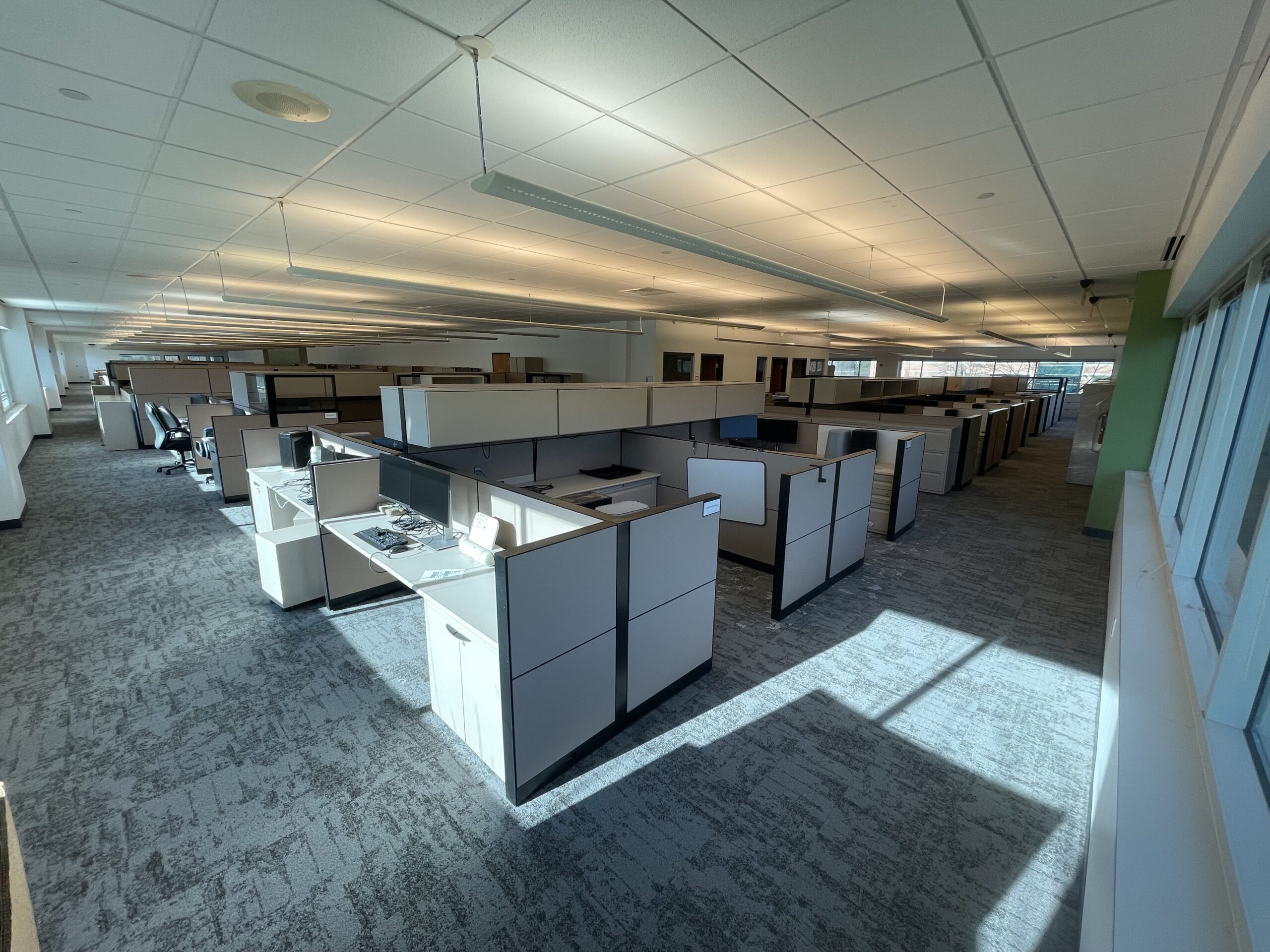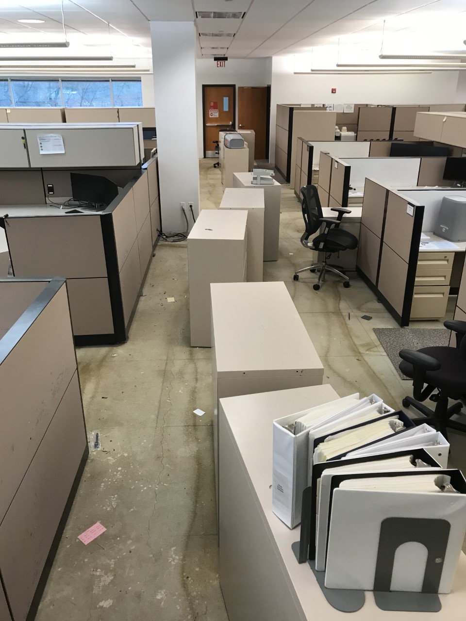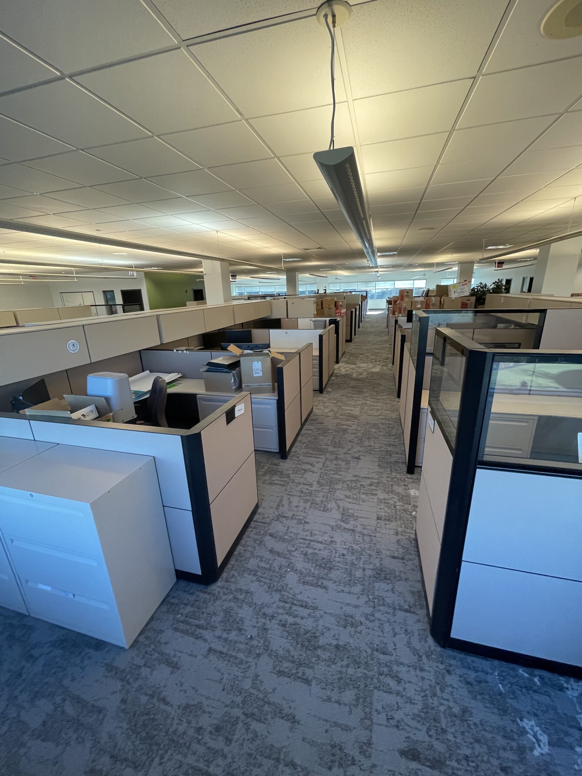 The project would involve extensive lifting of systems furniture in open office areas as well as standard office furniture in private offices and expensive conference room tables in conference rooms. The client requested a year-end completion. Starting this process in October was already getting things started a little later than we would have liked to. We explained this to the client. They initially said as long as we got the project underway we and billed complete by year-end then we would have some flexibility with the completion date. The project was going to involve fairly intricate pattern of 5 colors of a 12×36 Mohawk carpet tile. However, bidding was based on a schematic design and the carpet tile pattern and color selections had not been finalized. The other bidders were not, who were union shops, said it was too much furniture handling to tackle. Franklin Flooring had done a similar project with Tarkett in 2019 (15,000 sy of carpet tile and lift the week after Thanksgiving and completing by the new year), however this was going to be a little tighter schedule. Design was not finalized and colors were not selected until 11/10/2022 and a written contract sent to us until 12/2/2022. We ordered the carpet from Mohawk on 11/17/2022. Thankfully were able to get the proper sign-offs to start the demo on 12/5 prior to receiving the carpet on and then started the installation on 12/12/2022 when the carpet arrived. We had one crew on each floor working in each wing to complete in that time frame. We had to complete all badging and clearances and assemble all the teams in a compressed timeframe. Mohawk did an incredible job pulling together their teams to pull off incredible production and shipment commitments to this customer. We met two tractor trailer loads of Mohawk carpet tile on 12/12 bright and early in the morning and off loaded and allocated the materials per crew and per floor to follow the pattern precisely. Mohawk had our local rep, the Chicago rep, their production team, and the Chicago RVP all working on this order for several weeks to make sure it met the production and shipment date they promised. Our team recycled all of the carpets we took up; palletizing and shrink-wrapping 9,975 sy of carpet.