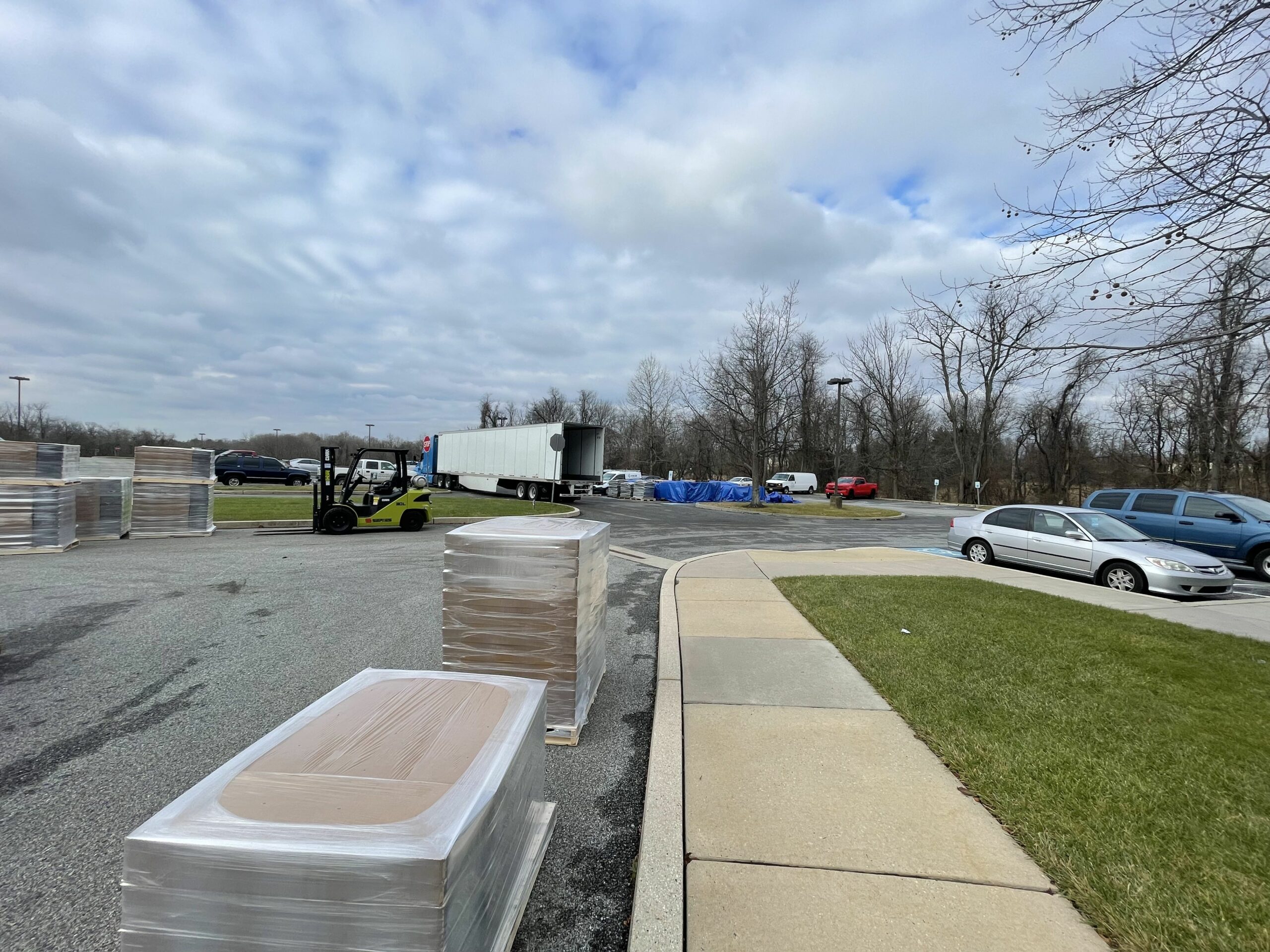 •Franklin Project Managers, David Lucas and Alex Winterburn were on-site daily to coordinate deliveries, off load trucks, cover pallets of recycling with tarps, monitor and manage progress, email updates to clients, manage badges and access, make sure crews had what they needed each day, and to solve problems. We would not have made it without their quick thinking, hardwork, and leadership.