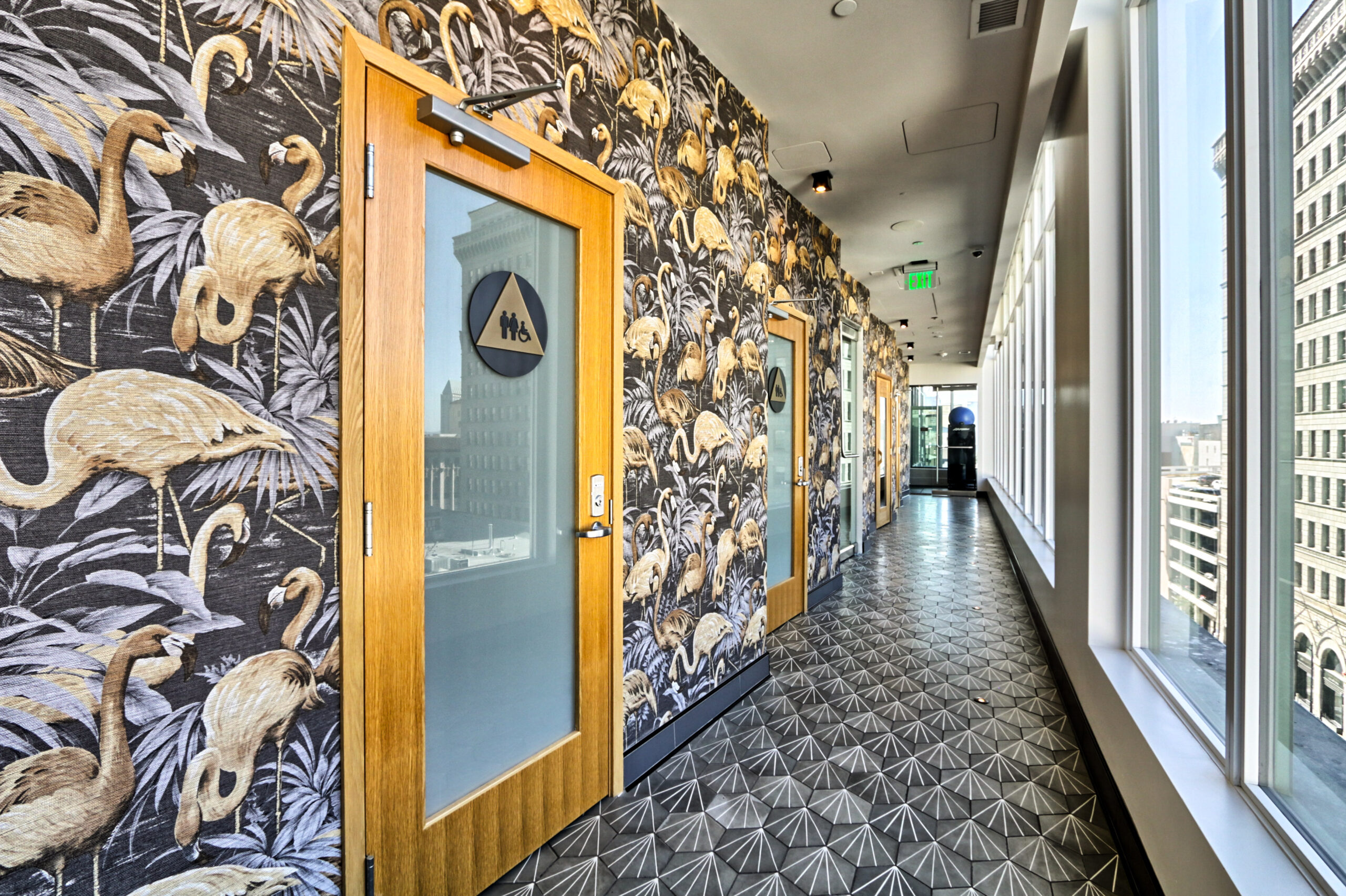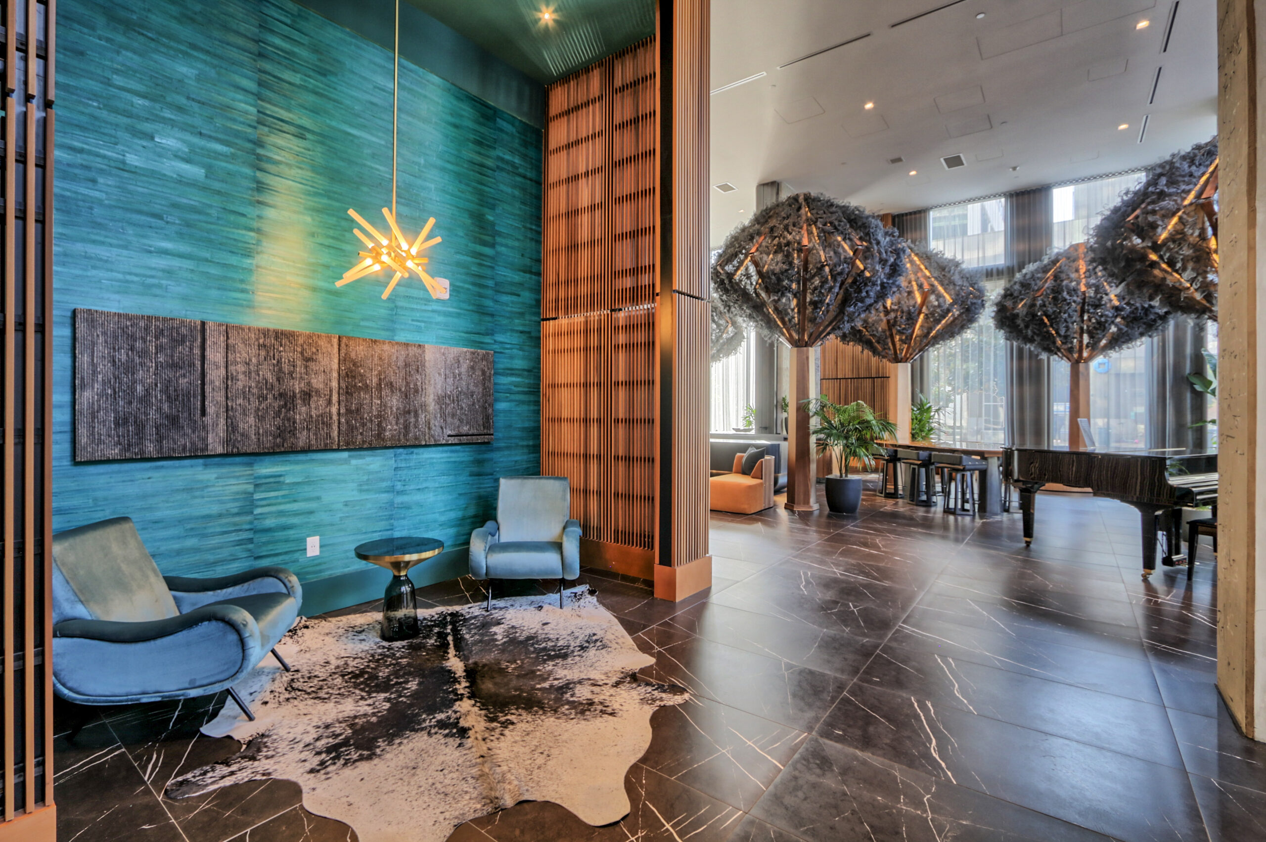 The unit areas included over 45,000 sq ft Marazzi GE06 Deep Pigment Wall tile. The lobby areas included 16,000 sq ft of Daltile MA83 Nero Matte 24″x48″.