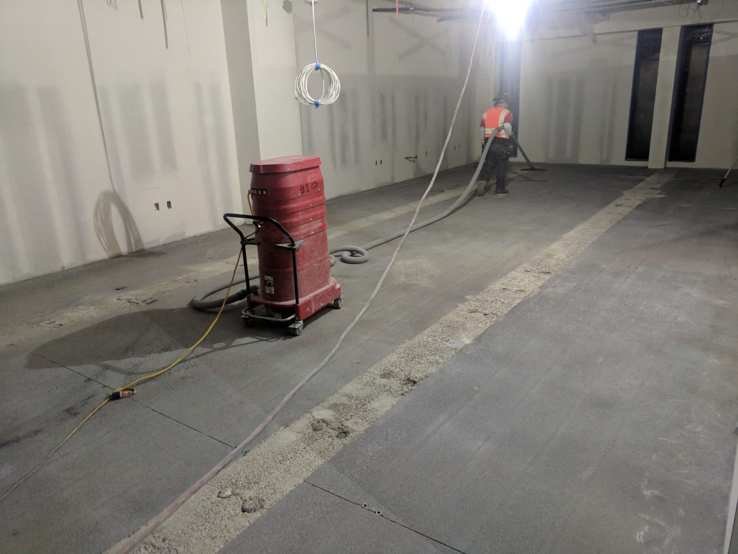 3. The concrete was then profiled to allow for the application of Schonox vapor barrier to prevent moisture from penetrating the VCT causing it to bubble or lift.