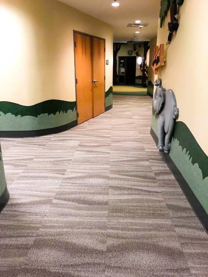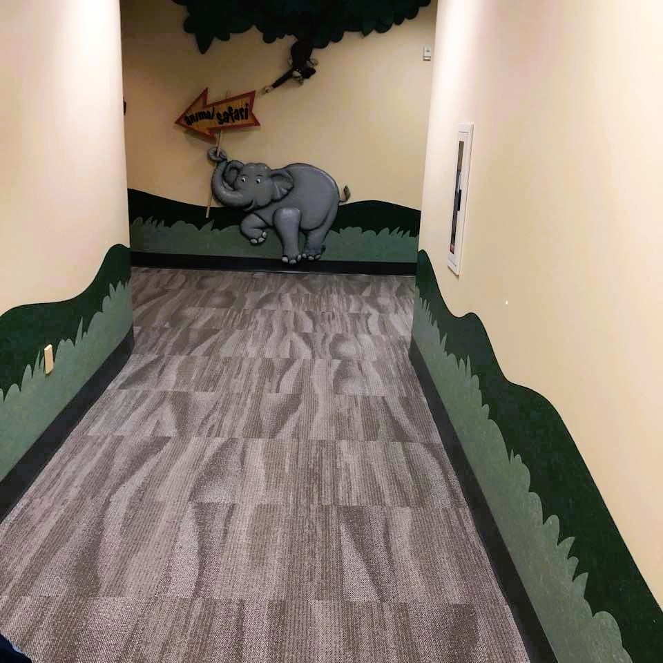 The mission of First Steps Inc. is to educate & care for children with special needs and medical conditions alongside their typically developing peers. They strive for an environment that will not only significantly impact a child’s cognitive development, but also provide sensory stimulation, thus increasing their overall happiness. First Steps, Inc. Director reached out to Music City Floors in hopes of finding a flooring solution that would complement their already fun Safari theme. They were searching for a “River” floor in their “River Room”, an “Island” floor in their “Jungle Room”, & earthy corridors that resembled wavy sand. Together with Mohawk’s bright Color Study Collection, Shaw Contract’s Earthy Sky Tile, & Tarkett’s perfect matching base, we were able to help them achieve their goal!