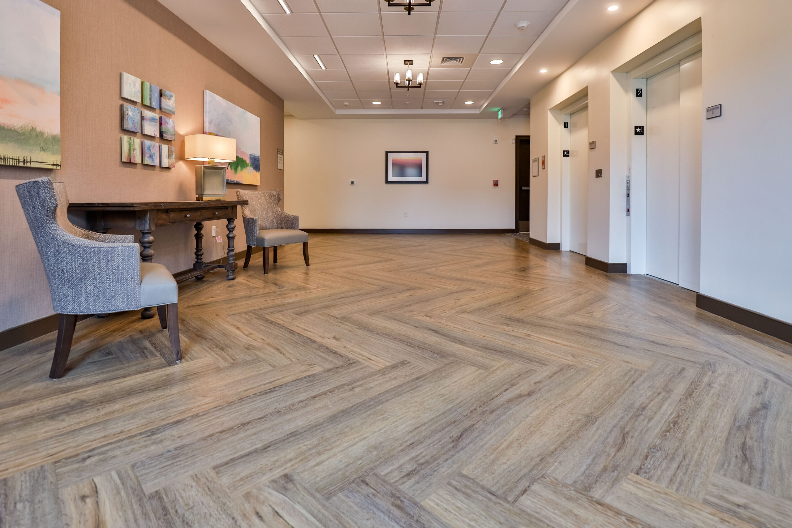 Givens Highlands Farm Vista Ridge North is a senior living facility that was a new build where we had the opportunity to work with a local GC to install the flooring in the facility. This was the second building of three where there is a bridge that connects the buildings for ease and safe walking. We partnered with multiple FUSE suppliers in our market to provide the best options for senior living. This was unique that there was 32 resident units where each resident could choose between a dozen flooring option to customize their living units. The timeline was on the short end, and we had little room to get off schedule. So, the project management and communication with the GC was important to deliver on time.