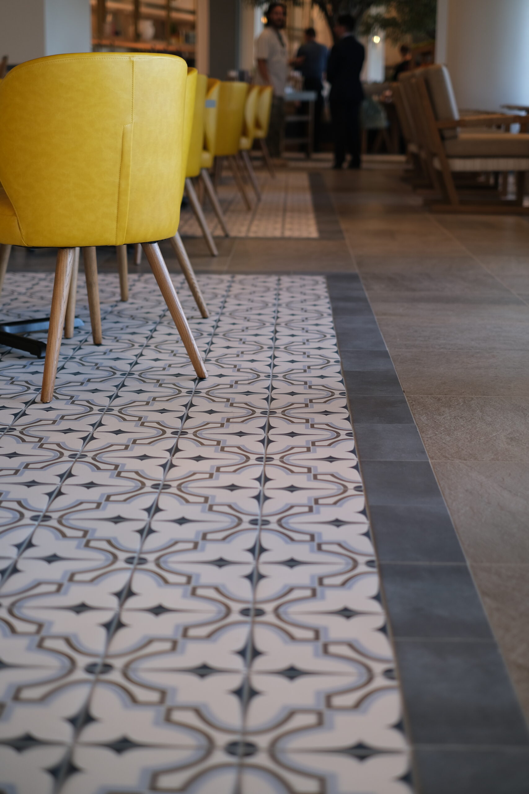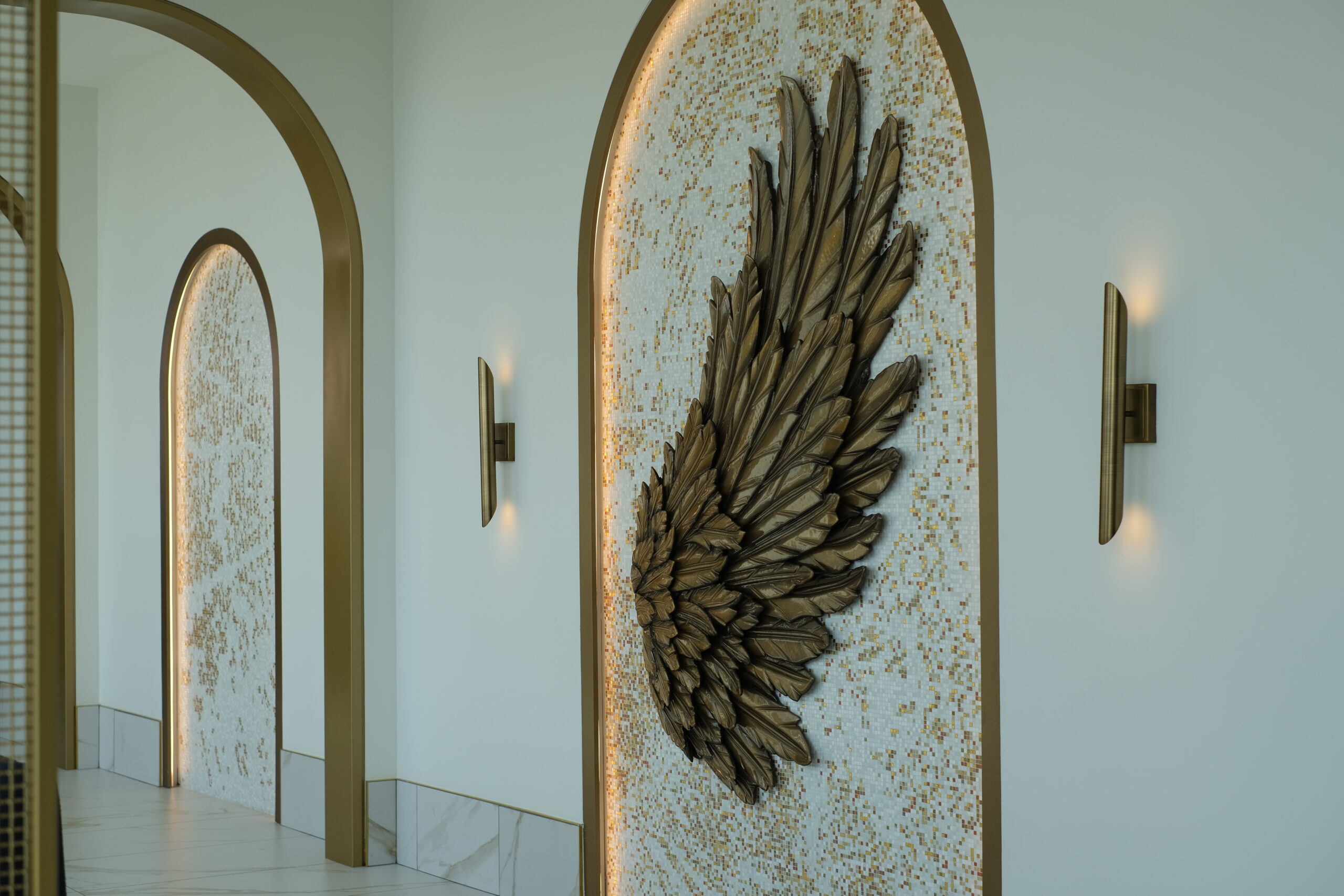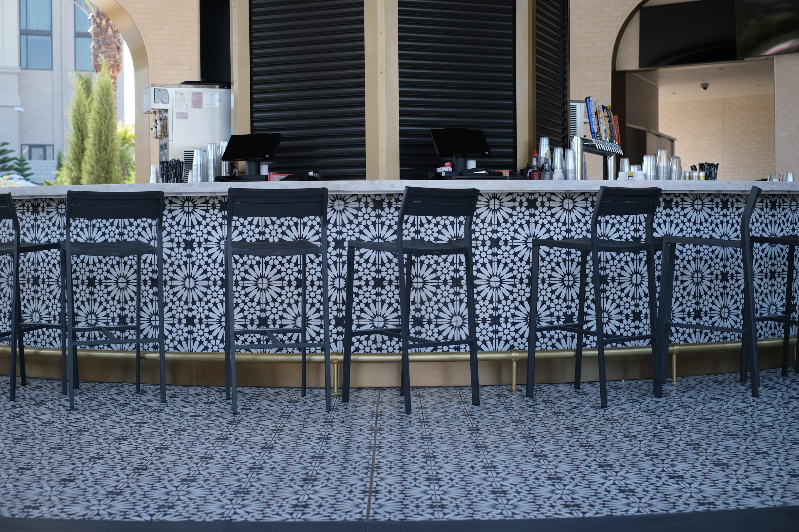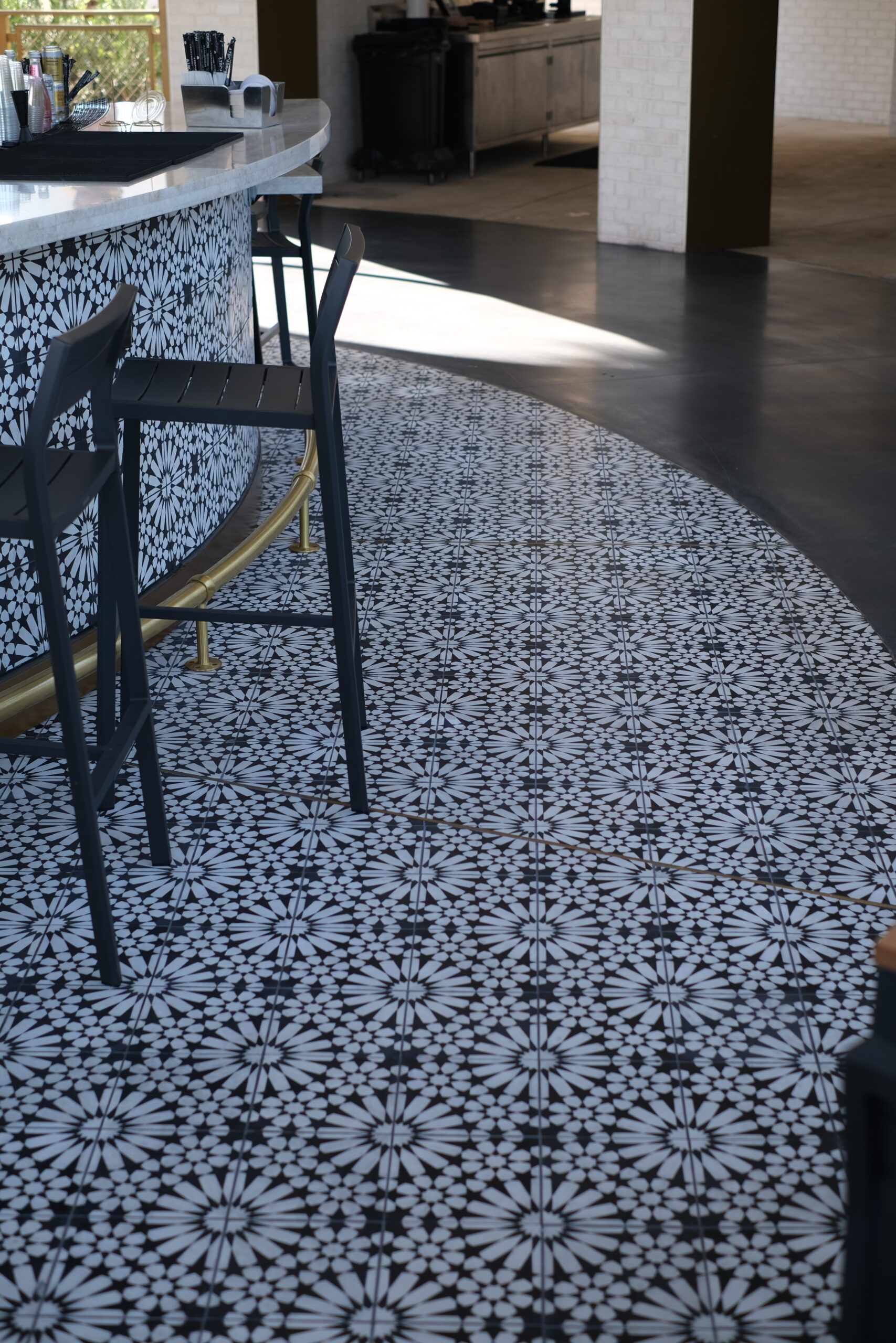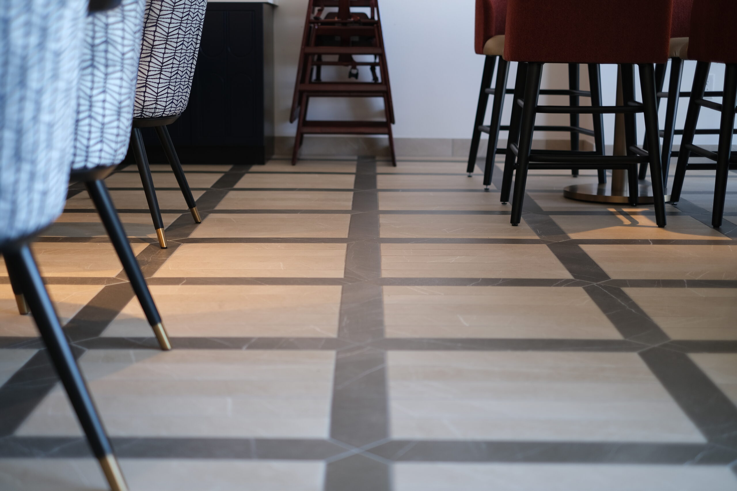 The tile scope for the Grand Helios Hotel at Universal’s Epic Universe represents one of the most extensive and technically demanding ceramic and stone installations completed by David Allen Company. Spanning over 92,000 square feet, the project encompassed tile and stone across 500 guestrooms, 58 showers, multiple rooftop bars, eight locker rooms, corridors, dining venues, and retail environments. The work included large-format porcelain, ceramic wall tile, custom mosaics, gauged porcelain panels, and stack stone, all installed using thin-set direct bond methods. Custom-fabricated transitions were critical to accommodating prefabricated POD bathrooms, especially in guestrooms where height differentials required custom thresholds. In high-impact areas like the Level 10 rooftop bar, tile was waterjet cut and dry-laid for layout verification before final installation, allowing precision alignment across radiused layouts. Complex carpet insets, multi-height patterns, and expansion joint transitions demanded continuous coordination with millwork, ceiling trades, and Universal Creative. Despite ongoing design revisions and a compressed schedule, David Allen Company delivered a flawless tile installation that supports the hotel’s celestial theming while meeting strict aesthetic, structural, and ADA compliance requirements.