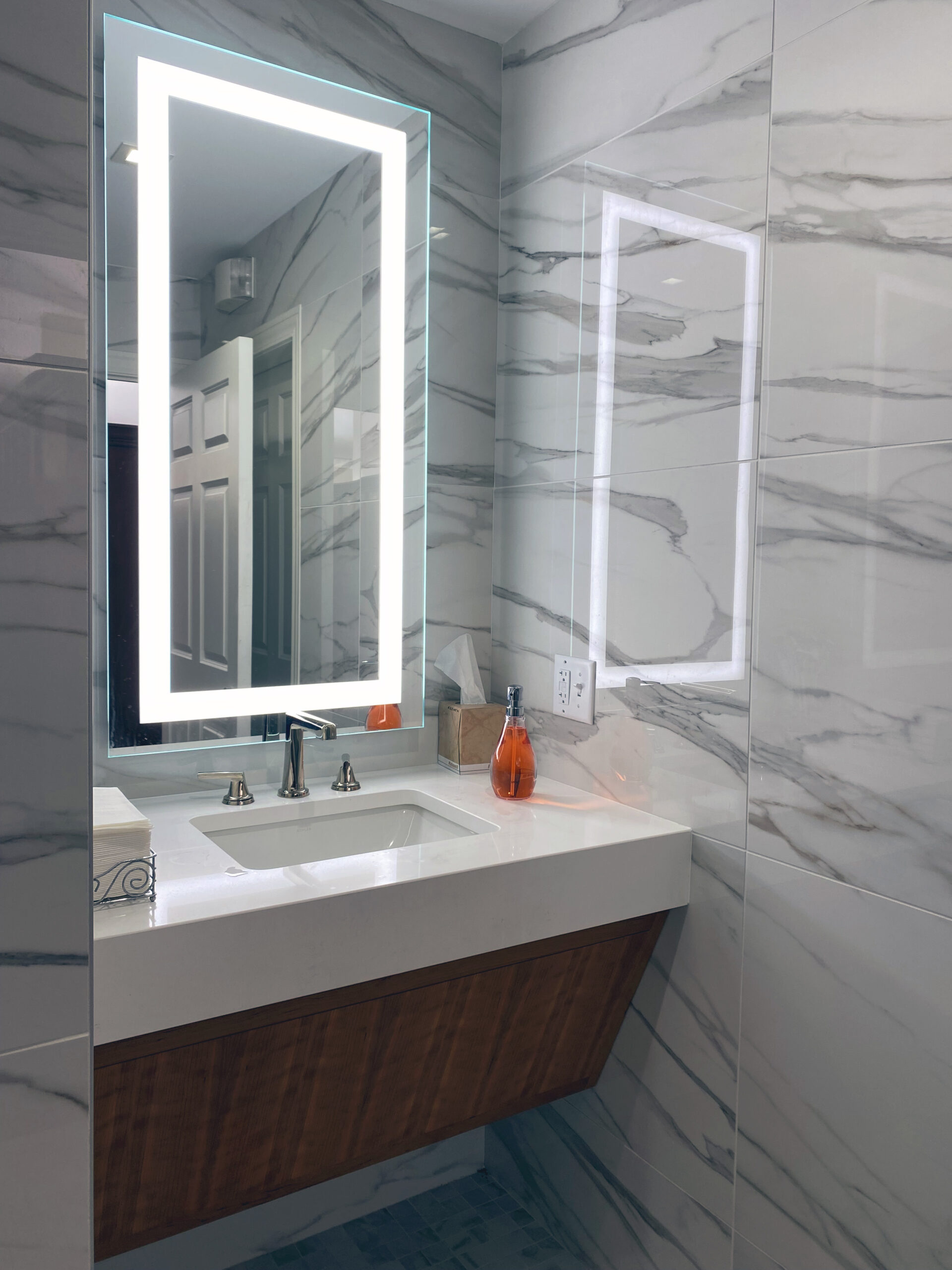 The transformation of this space was incredible. The design team from SPACE Architects did such a great job bringing all the different elements and materials cohesively together on this project. We enjoyed the unique styles, products and locations. Especially the carpeted walls and ceiling in the golf simulator room! Our installers took the utmost care to make sure the creative design came out as intended, and it really shows. The carpets, tiles and turf make this such a special space to be.