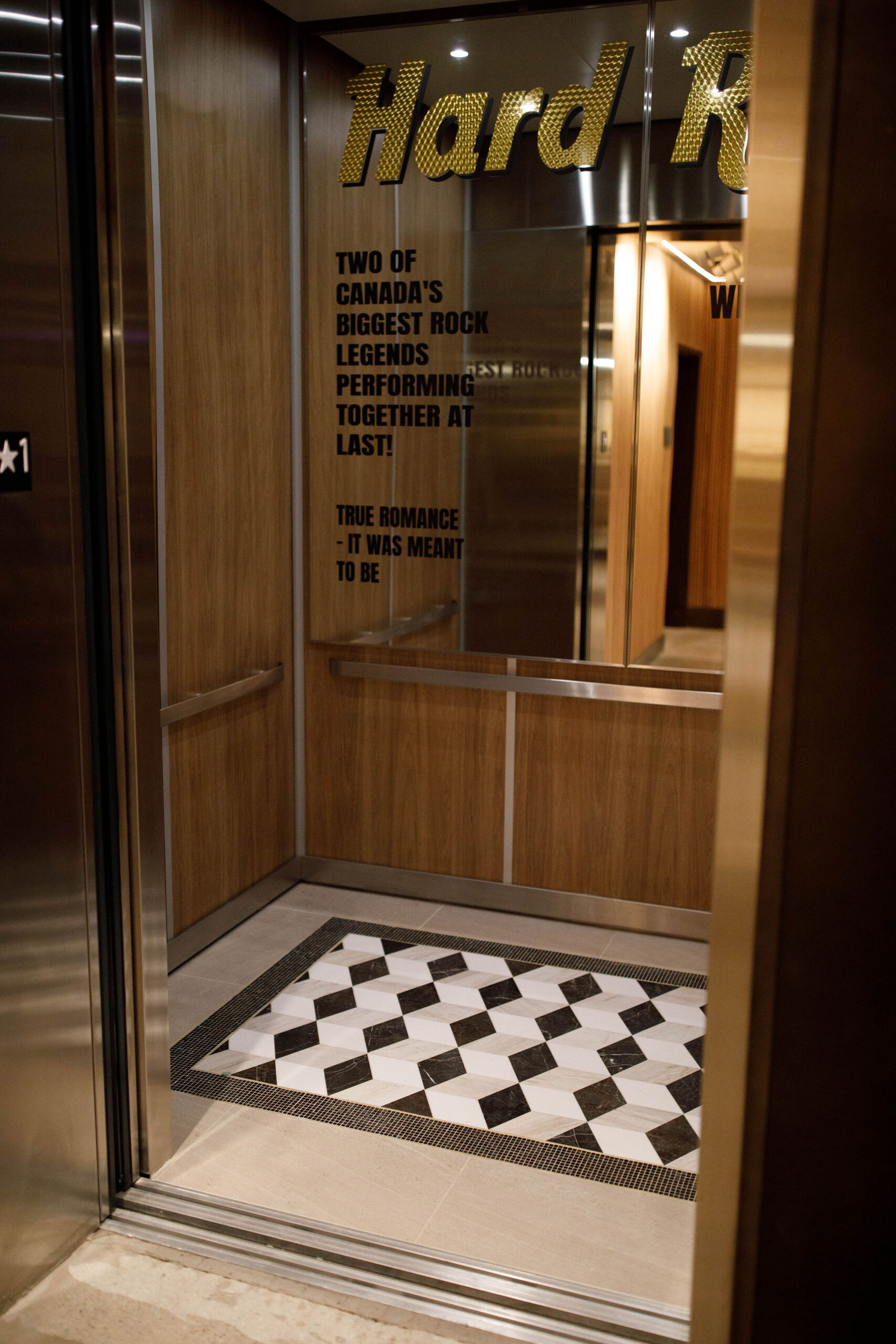 The design vision called for bold materiality, rhythm, and atmosphere. Spaces feel energetic, contemporary, and unmistakably Hard Rock while still honoring the raw character of the historic structure. Existing polished concrete floors preserve the building’s industrial DNA. Our team was entrusted with delivering the tile, carpet, and rubber gym floor installations that layer refinement, texture, and performance onto this foundation.