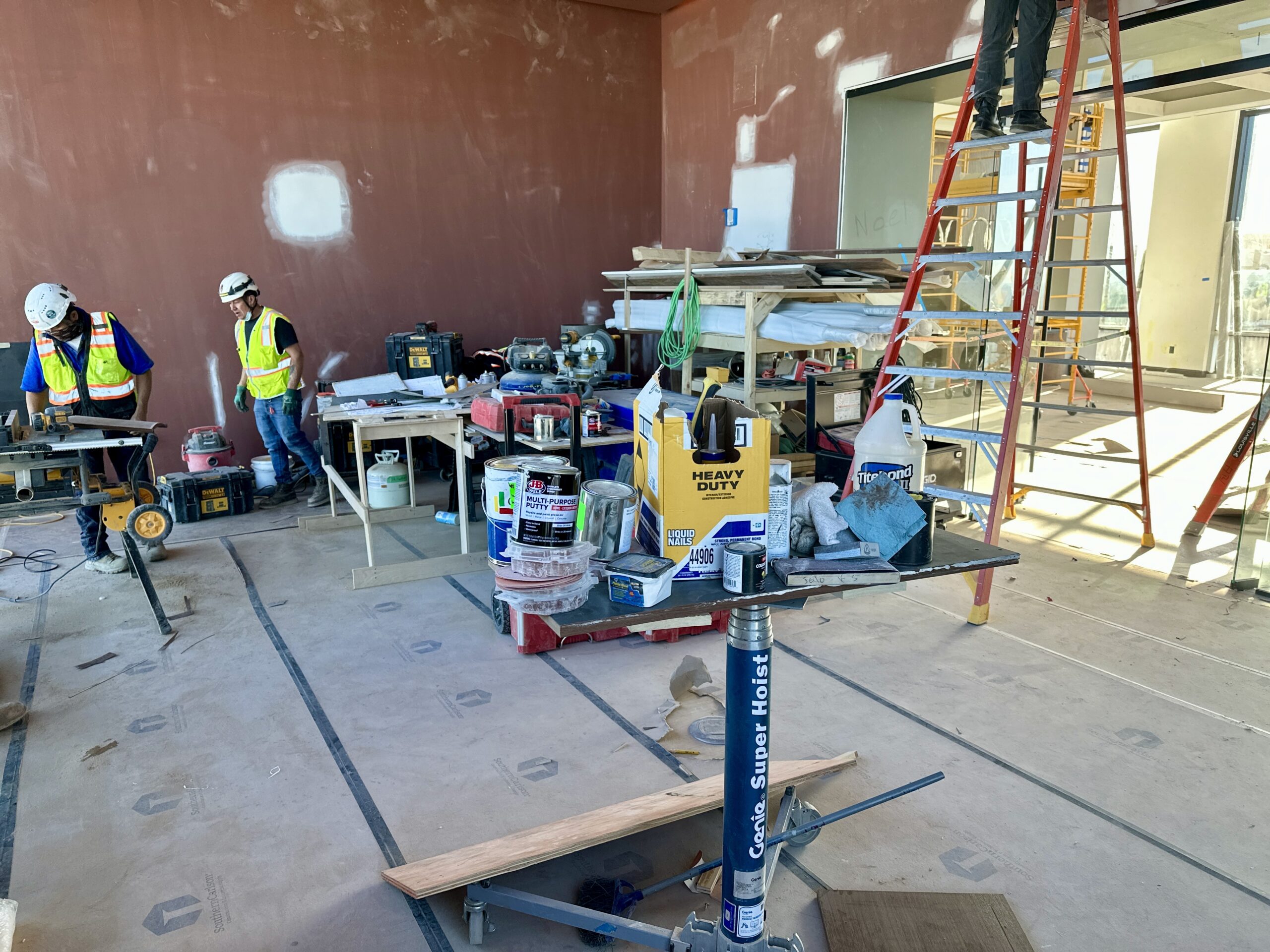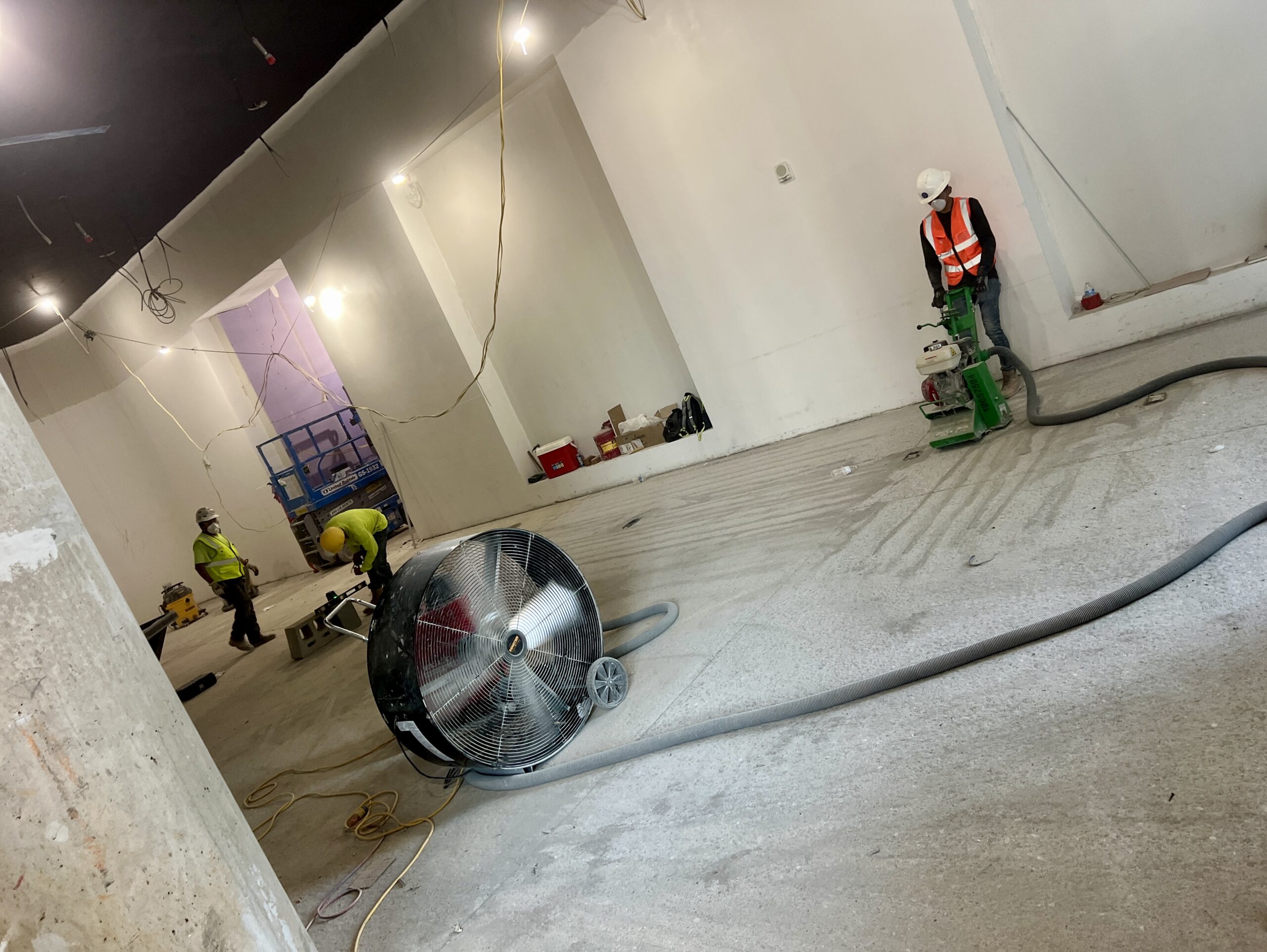 Another major challenge was the high congestion of trades working simultaneously in confined areas, leading to frequent interruptions and the need for continuous adjustments. In many cases, completed flooring sections were damaged by overlapping work, requiring unexpected repairs that strained both labor and schedule commitments. The lack of proper lighting further complicated installation, making it difficult to achieve precision without developing temporary lighting solutions that mimicked final conditions.