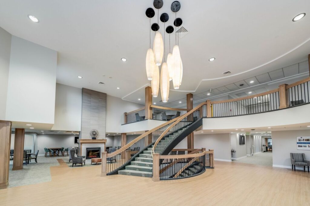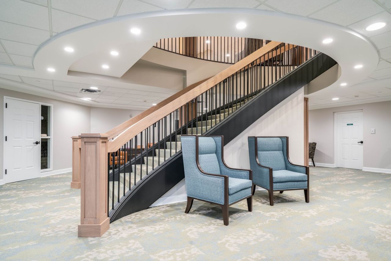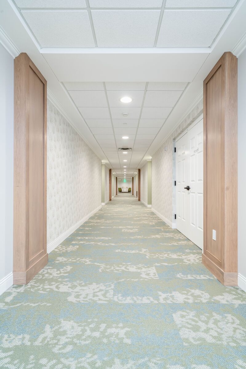 This 20,000-SF renovation for Holland Home Breton Terrace included the common areas on all three levels to include a new café and gathering space, upgraded chapel, upgraded theatre, and an upgraded feature stair that extends between all three floors. The kitchen was extended to double in size and was fully renovated to provide all new equipment and food service space. Resident corridors were updated with new finishes on all three floors. Private dining was also fully renovated as well to provide a new, refreshed space. Dal-Tile was used for the kitchen space and Tarkett was used throughout primarily. This property in particular has a history of moisture problems, so Mapei’s Moisture Barrier was used throughout.