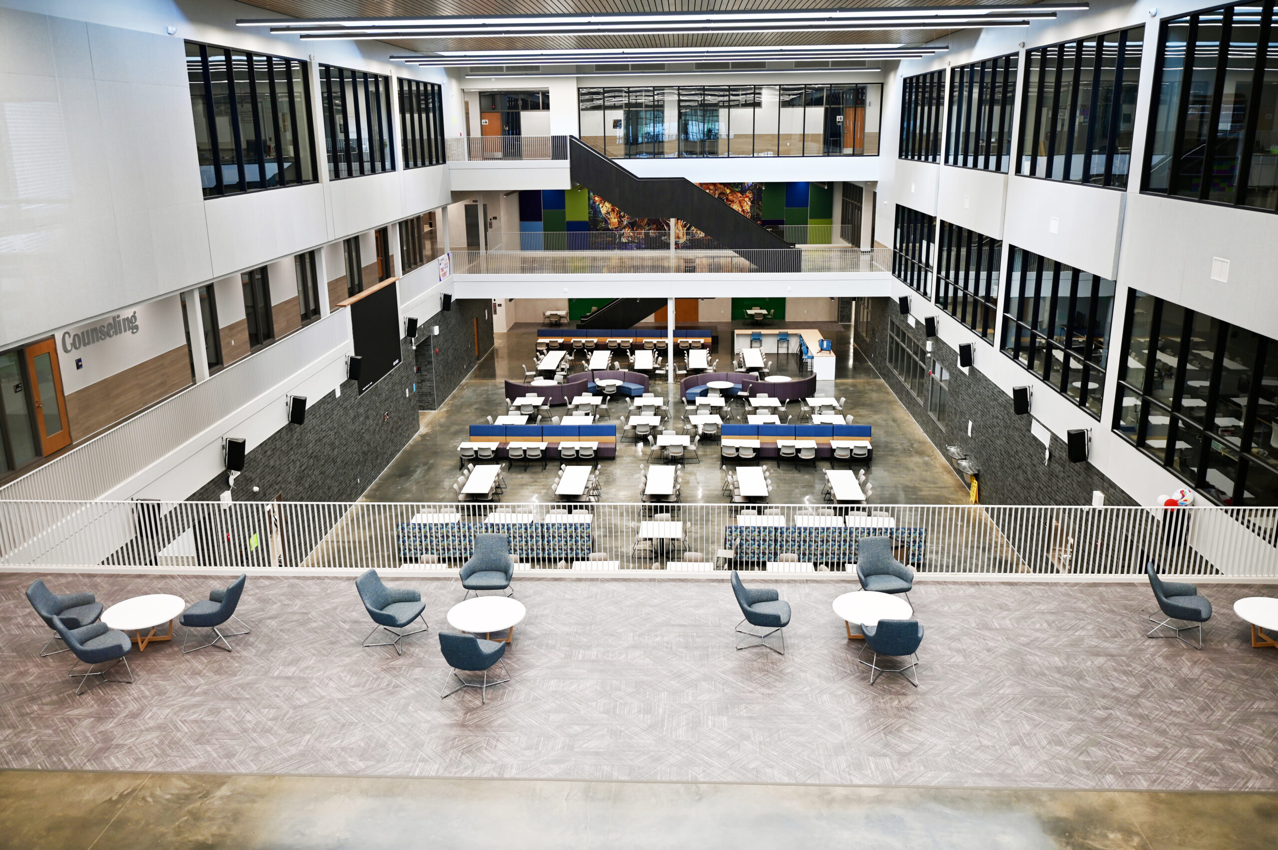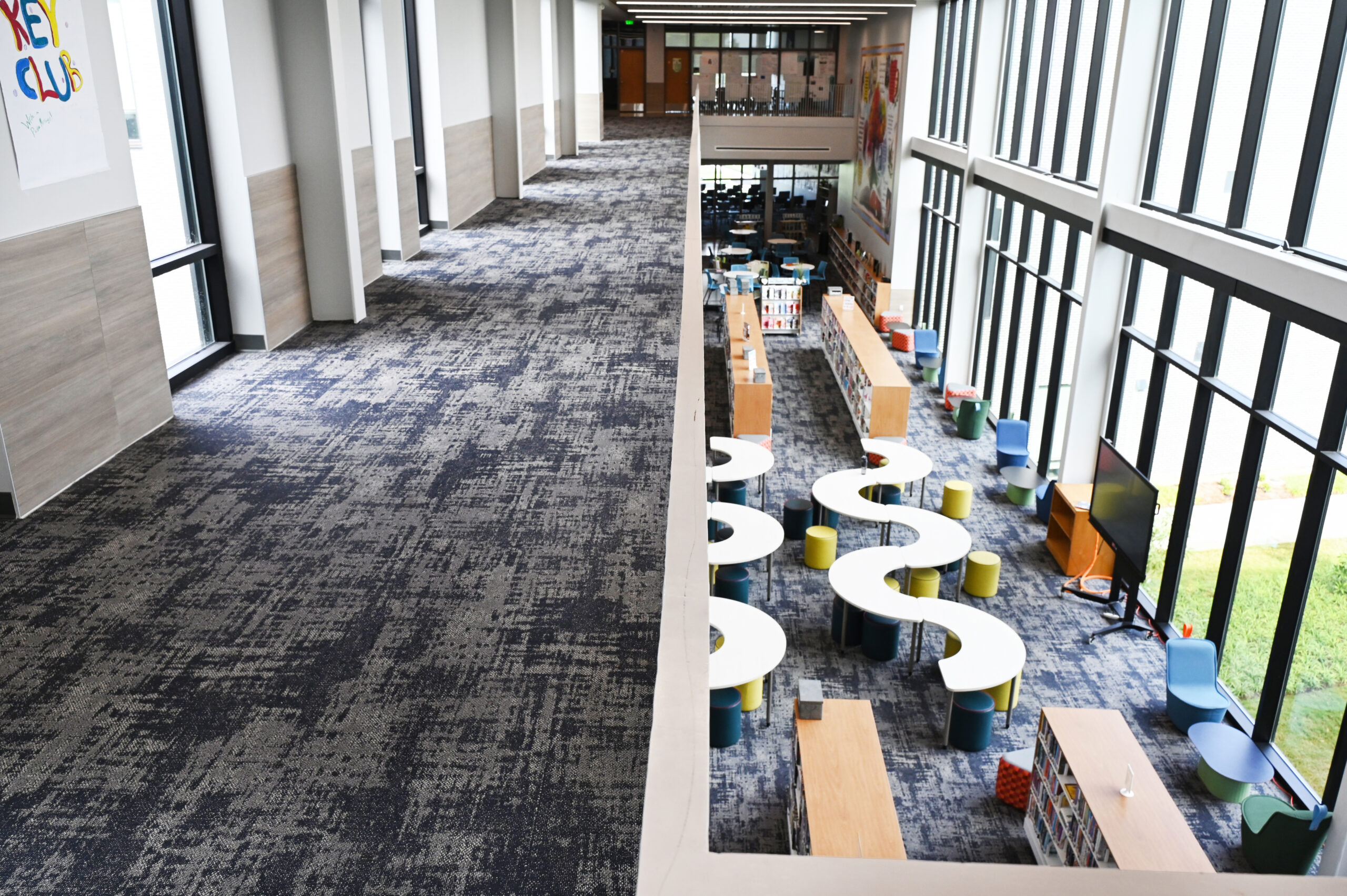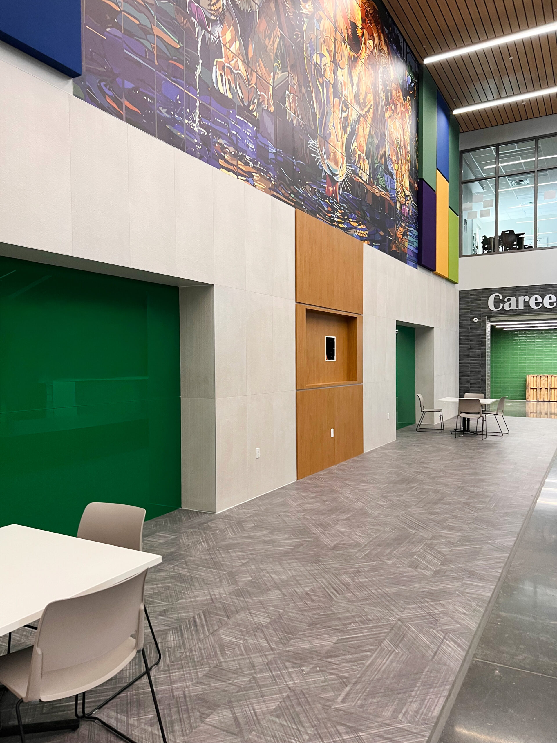 Lafayette High School is a shining example of how creativity and performance can coexist in a high-traffic educational environment. Today’s schools are dynamic, design-forward spaces, and Lafayette High sets a new standard with its bold use of color paired with a sophisticated, modern aesthetic. Every flooring decision was made with daily wear and long-term durability in mind, ensuring the design not only inspires students and staff but also performs under constant use.