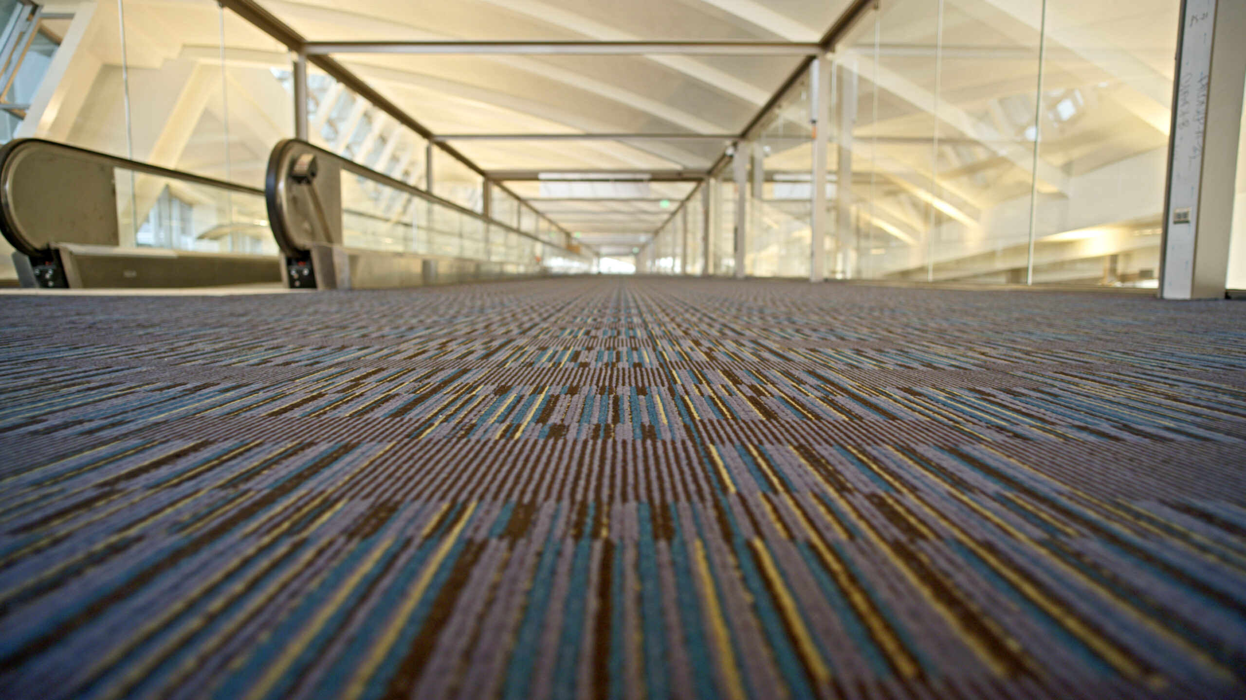 Level 2 of the Terminal in between Arrivals and Departures featured an Intransit Lounge and thoroughfare for passengers in between flights. Bentley’s “Euro Modern” carpet tile was selected here for its aesthetic appeal and design. This area featured a 200 linear foot uninterrupted walk way for installers to snap the perfect line for a monolithic installation.