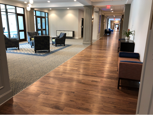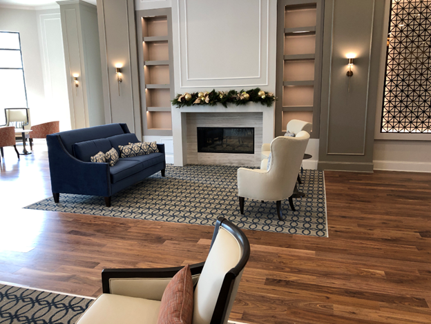 The Barclay at Southpark (i.e. Liberty Southpark) is Charlotte’s newest retirement community, providing residents high-end amenities, elegant living spaces, delectable dining options and so much more. The Southpark district is a favored area for folks who enjoy the ease of gracious living — so, it was easy when selecting flooring that matches this characteristic, while keeping the functionality and performance in mind of an independent living facility.