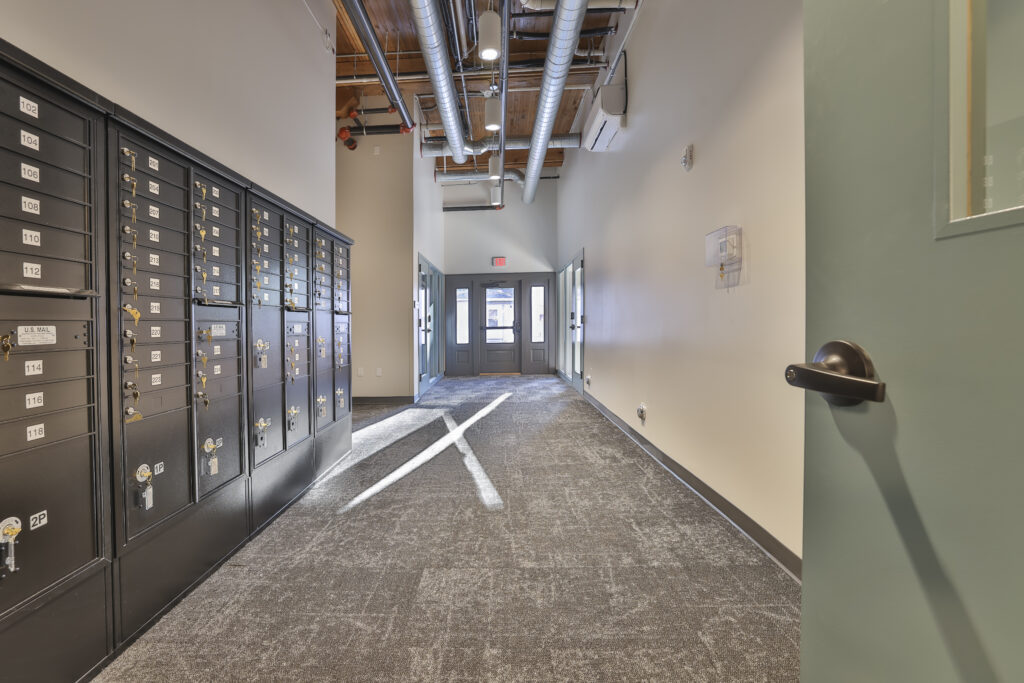 Originally designed with a higher-end product for flooring, River City Flooring and J+J flooring got together and offered an LVT line that saved the project more than $60,000 alone, tremendously helping the approval of the project. Over 30,000sf of J+J LVT was expertly installed over 100s of Uzin’s NC888 patch. Both Tarkett and Roppe base was utilized as well as Tarkett’s stair treads throughout the facility. There are now 5 studio apartments, 50 one-bedroom apartments, 10 two-bedroom apartments, and two 3 bedroom apartments that had immediate applicants. Low income does not mean a low-end design.