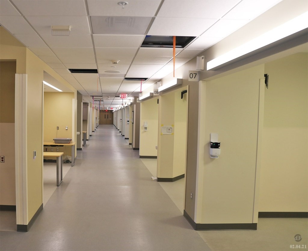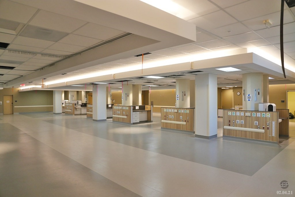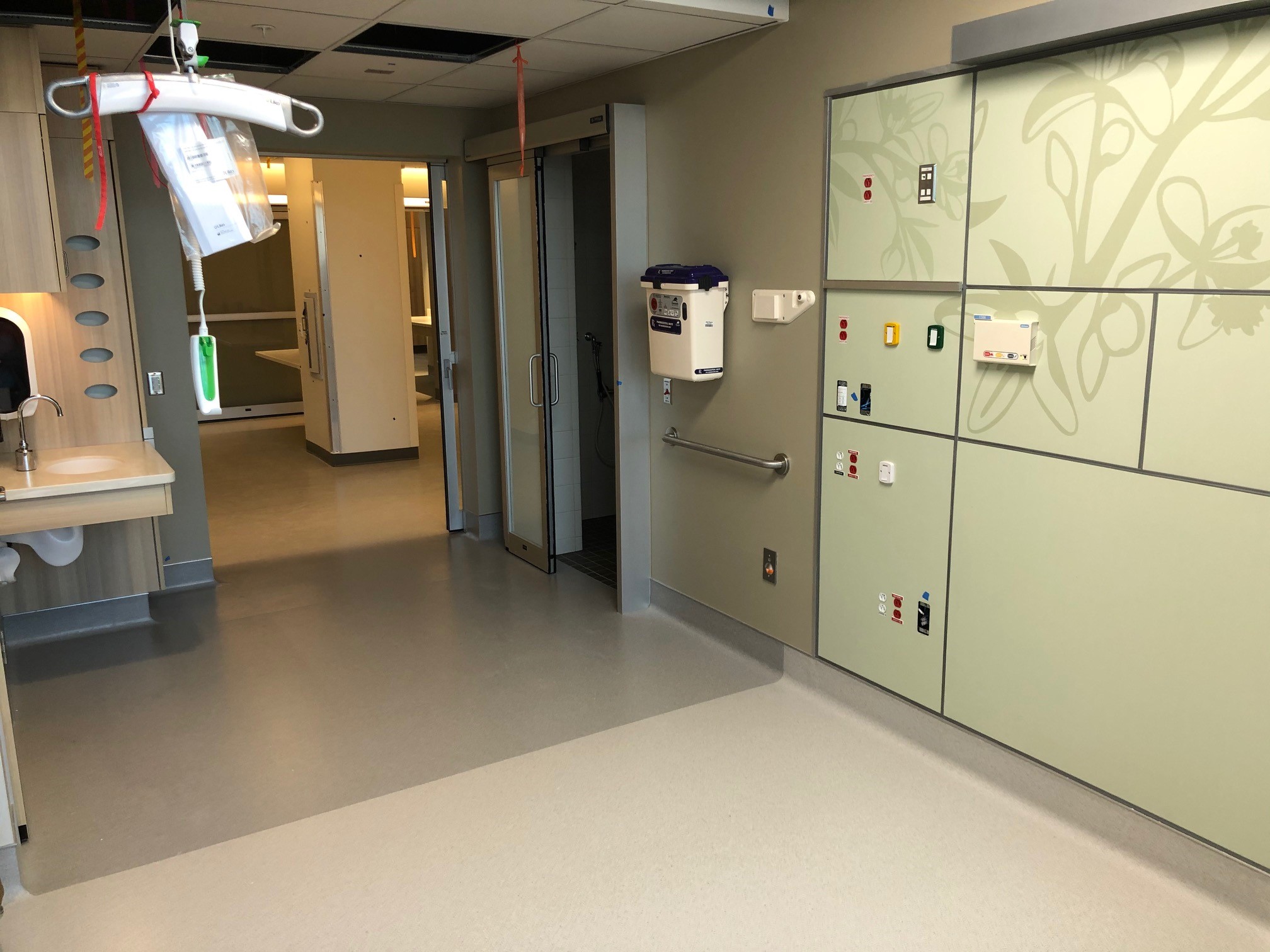 All of which was shot blasted and primed with either Ardex P4 Primer or broadcast sand. For floor preparation, each patient room and emergency dept suite featured rolling automated doors which needed to be leveled to which 1/8″ tolerance of surrounding spaces.