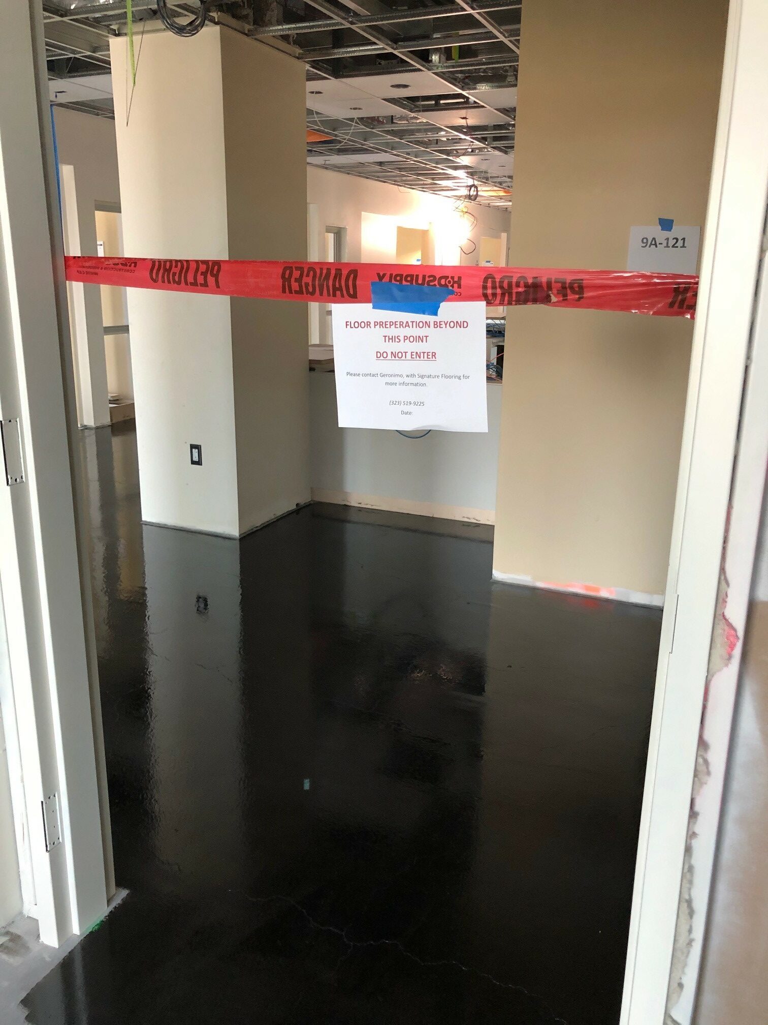 Two-part epoxy moisture mitigation was budgeted for utilized throughout the entire building which hosted floor covering which amounted to approximately 2,500 units of Ardex MC Rapid.