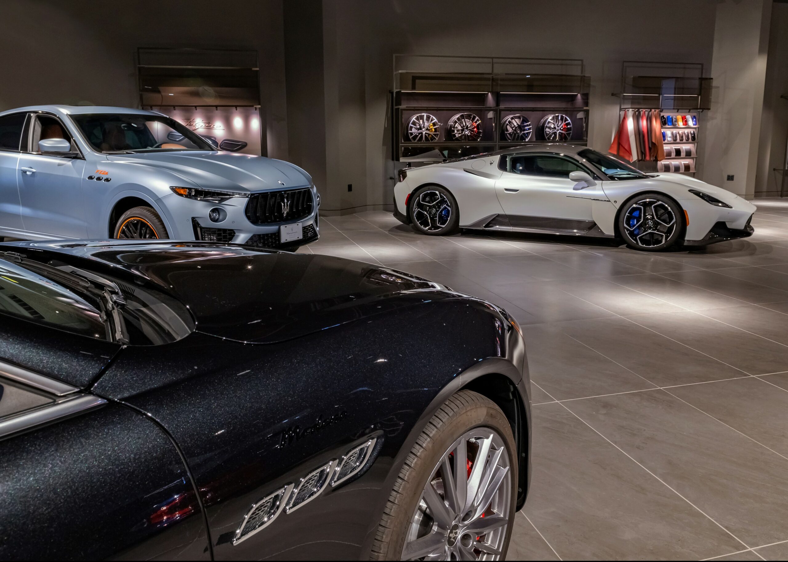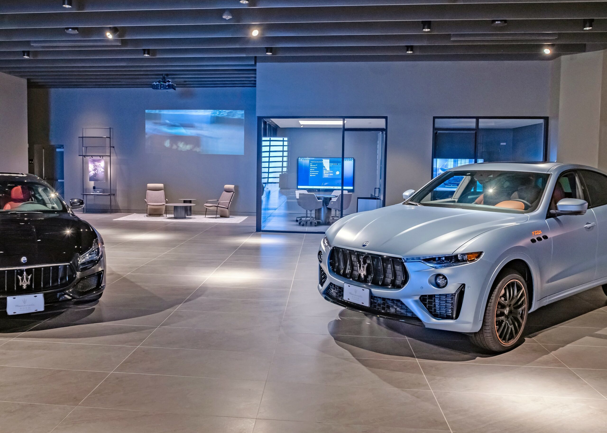 It includes over 7,450 sf of ceramic tile, and the design was based on a luxury fashion retailer, restaurant, or private club, filled with rich Italian design and signature Maserati hospitality.