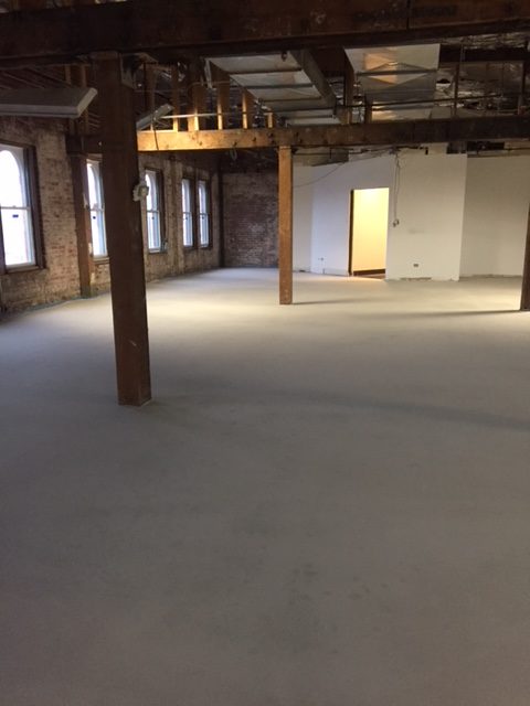 The original subfloor condition challenged the team – the one-hundred year old building had concrete, gypcrete, and plywood subfloors with multiple layers. We could actually see the space down below along the perimeter and in several places in the floor.