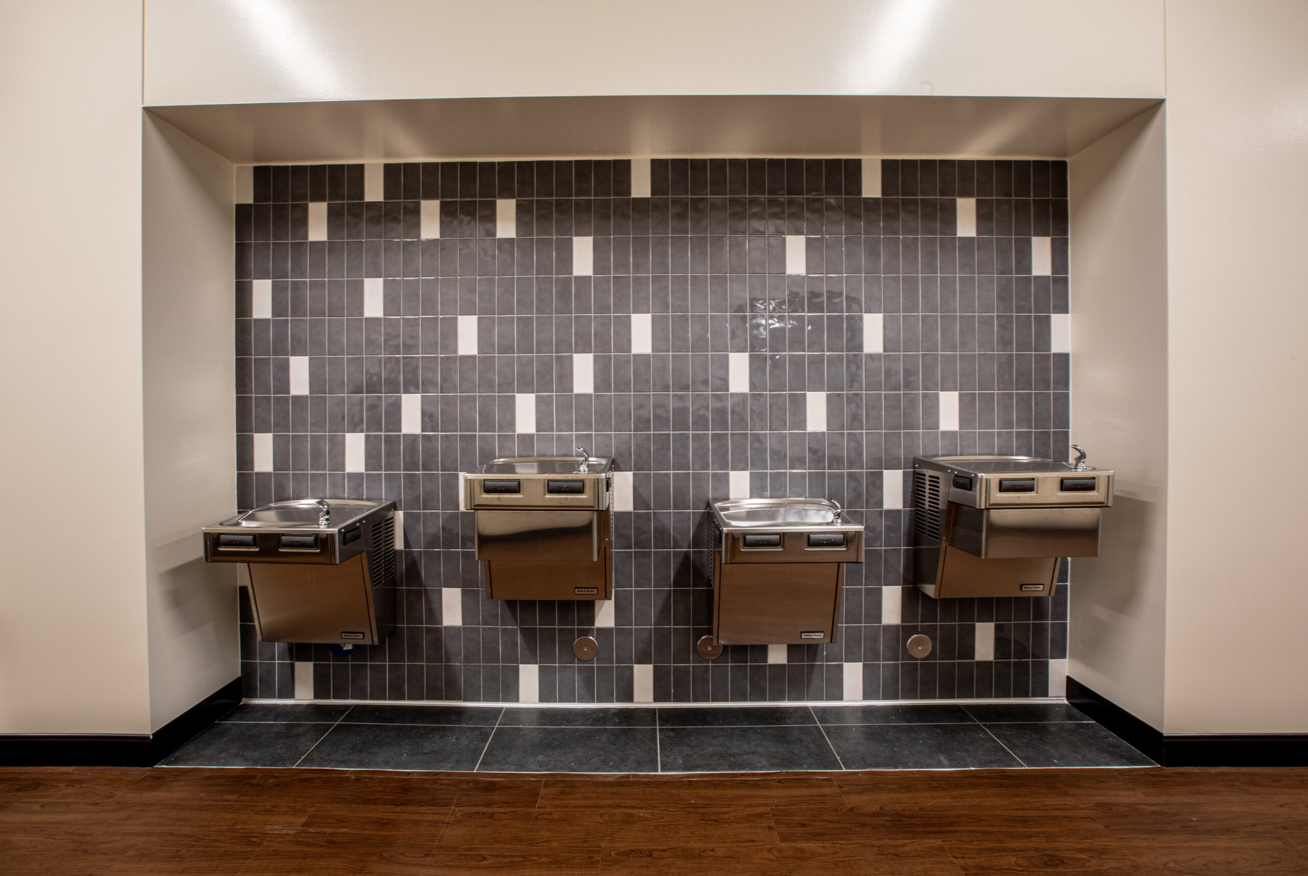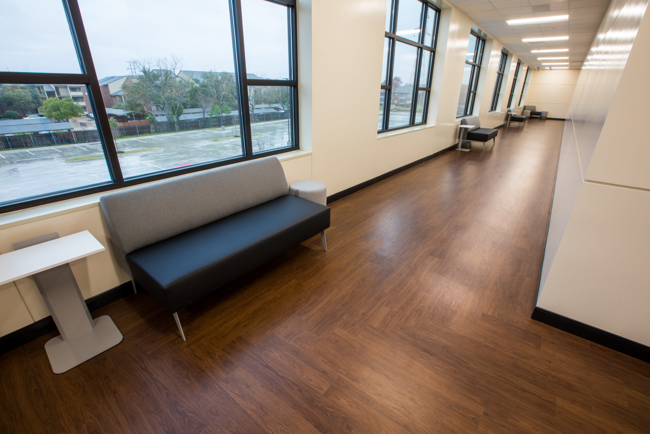 We had significant elevation differences between new and old slabs where the addition joined the existing building which required extensive grinding and floor prep/fill. Much of the demolished areas required extensive floor repair and prep. Many trades were competing for position at the same time in tight spaces, often getting on finished work immediately after installation or as we were installing. This would normally be difficult, but we had a challenging and technical installation for a great customer and owner.