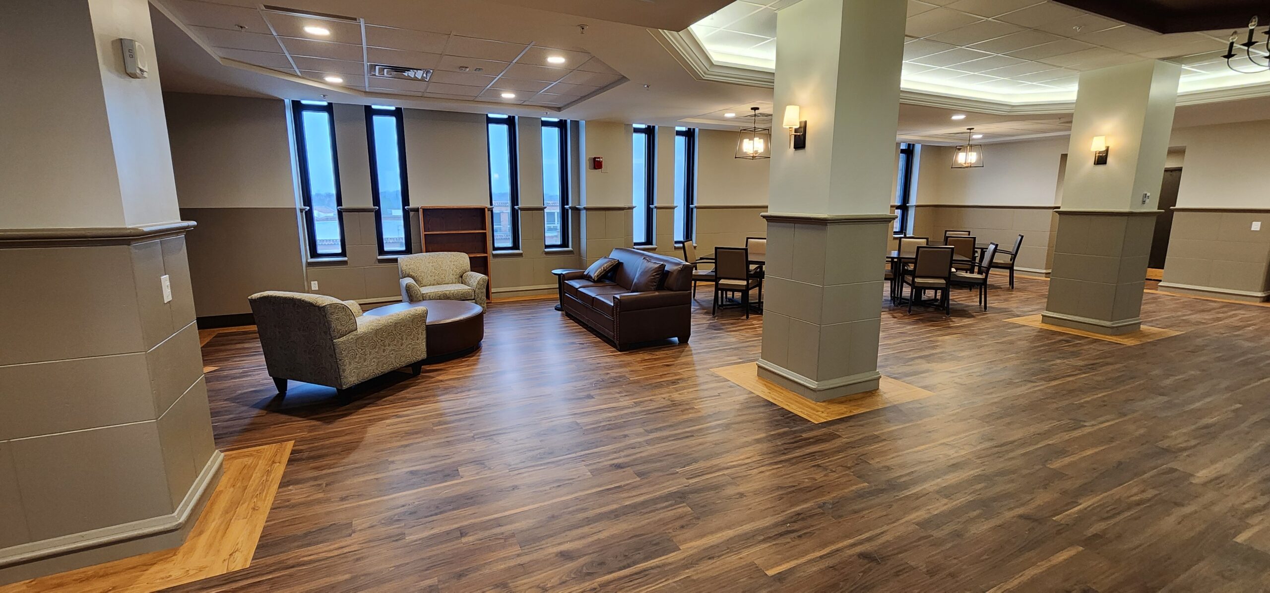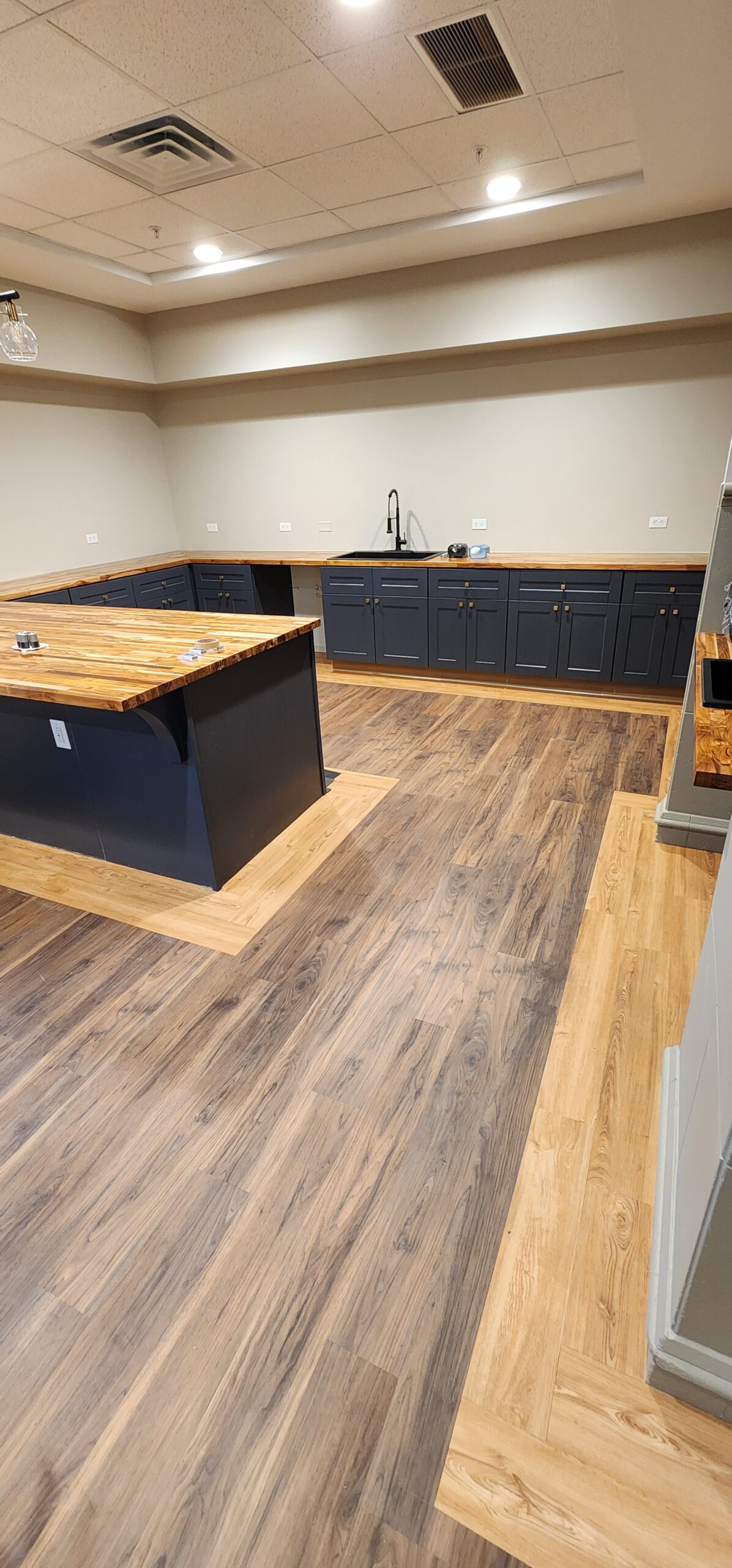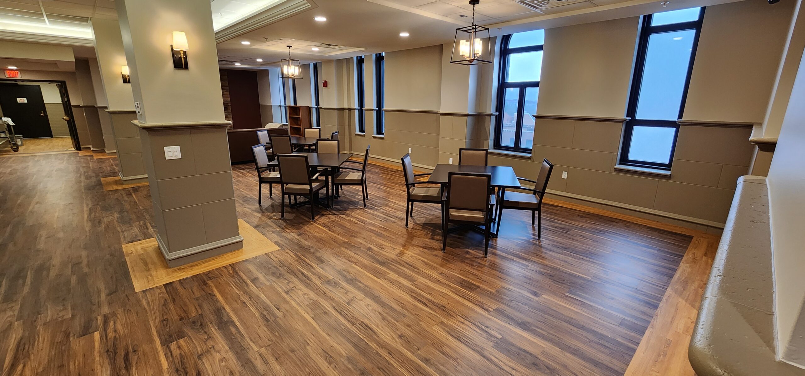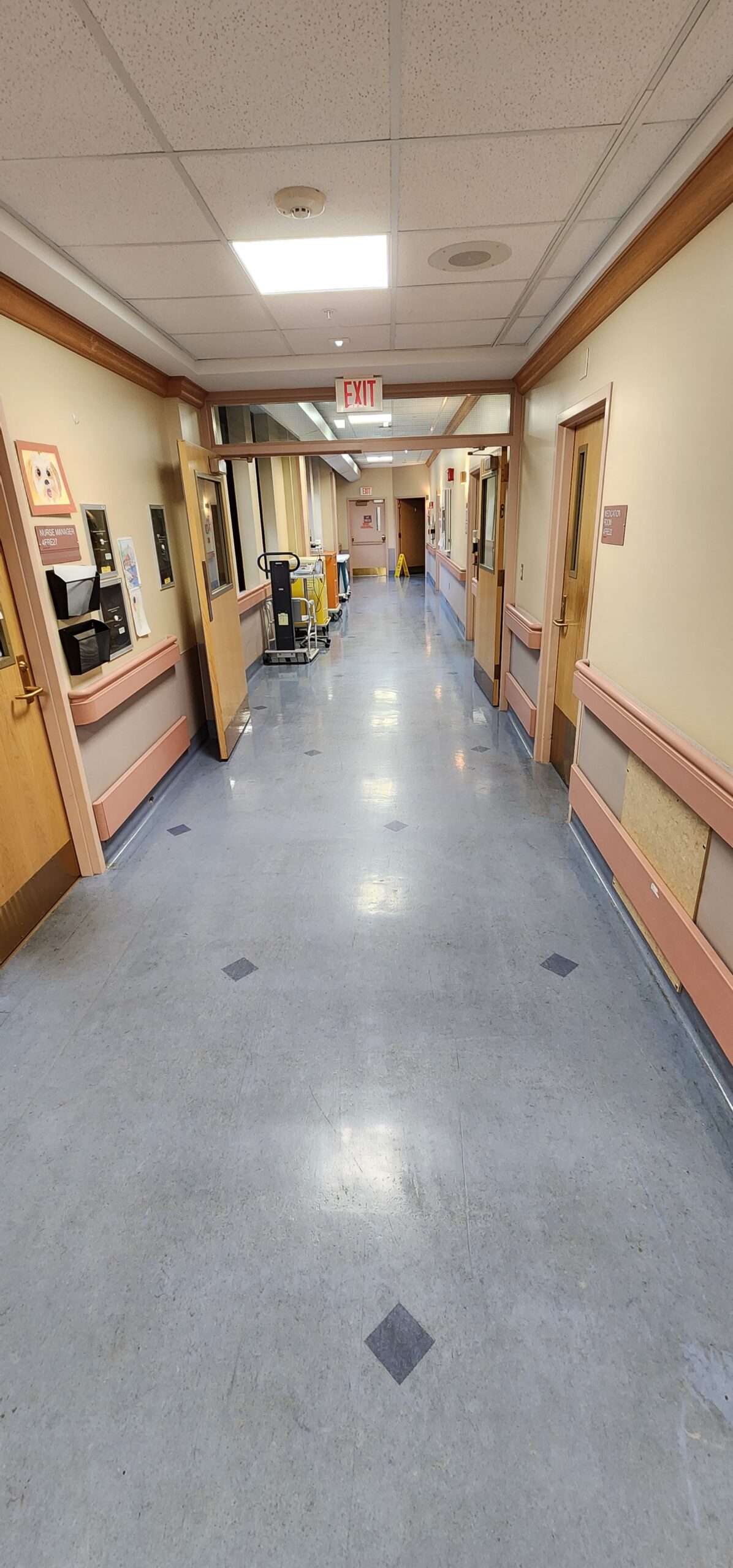 Our team had the privilege of revitalizing the flooring in an existing community hospital dedicated to providing accessible healthcare to underserved populations. The goal was to create a welcoming, uplifting environment that reflected the hospital’s mission of care and compassion while addressing the practical needs of a high-traffic medical facility. Using a creative combination of Tarkett LVT in various colors and sizes, Roppe wall base, and Bostik floor leveling products, we delivered a design that was both functional and inspiring.