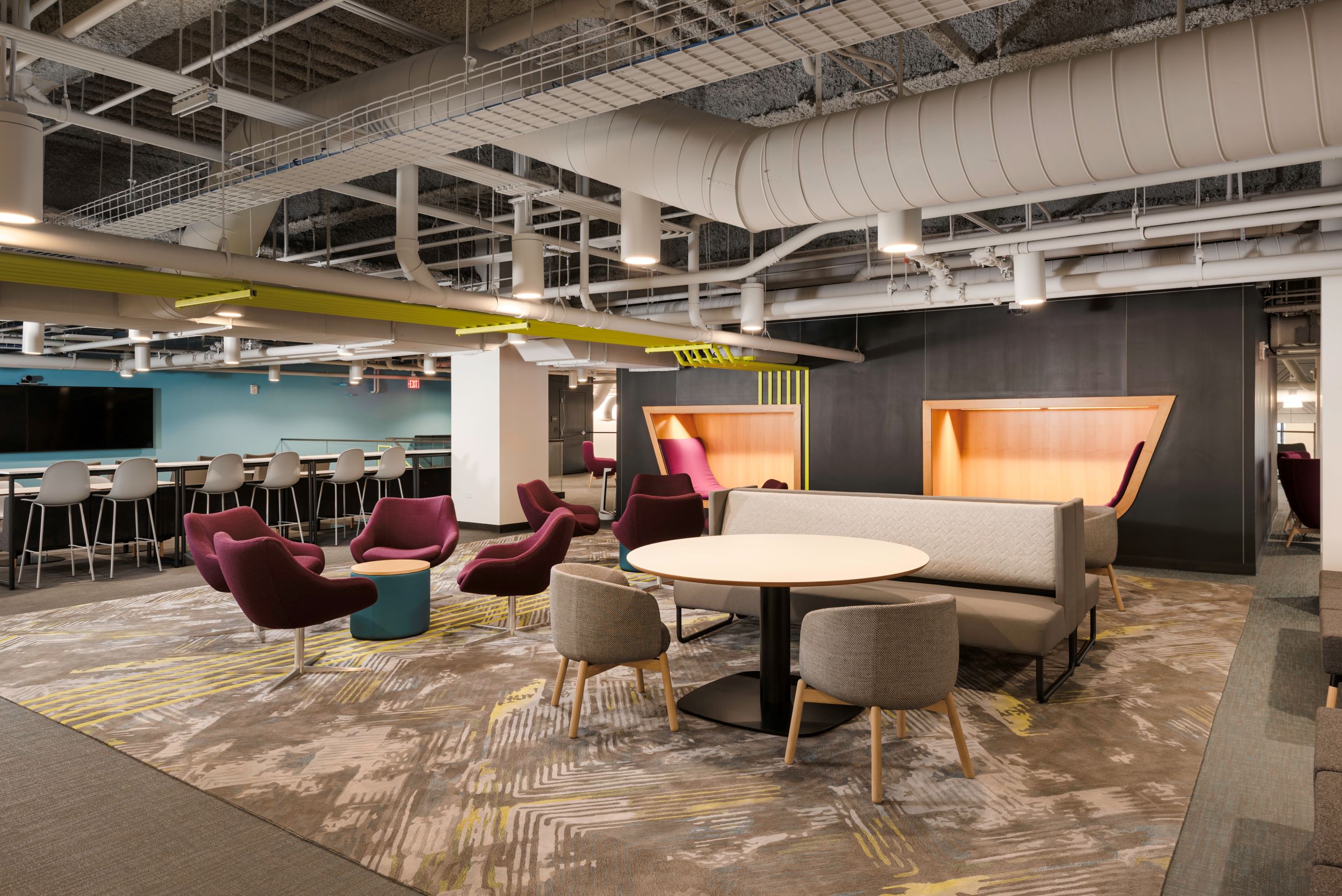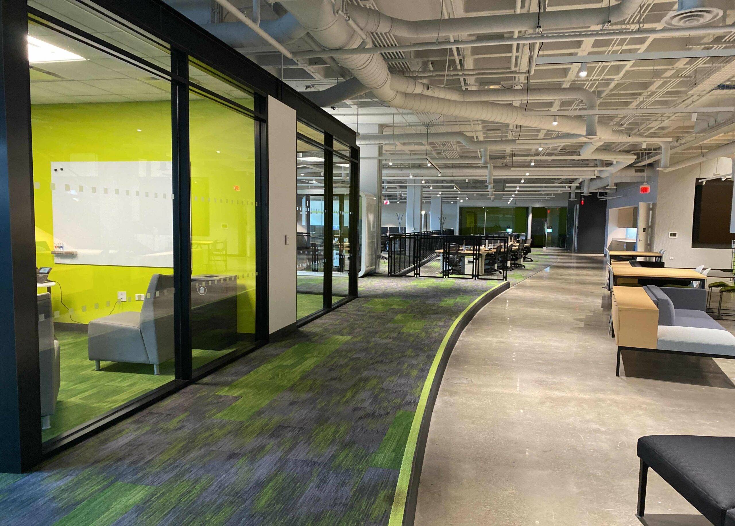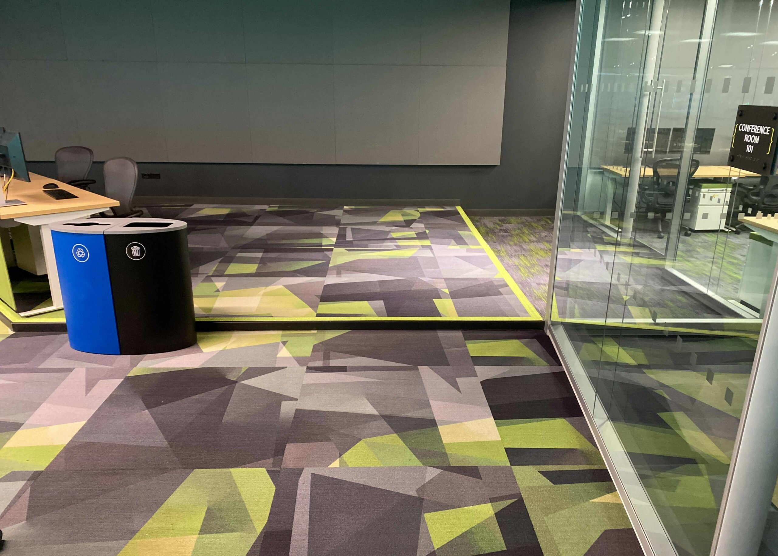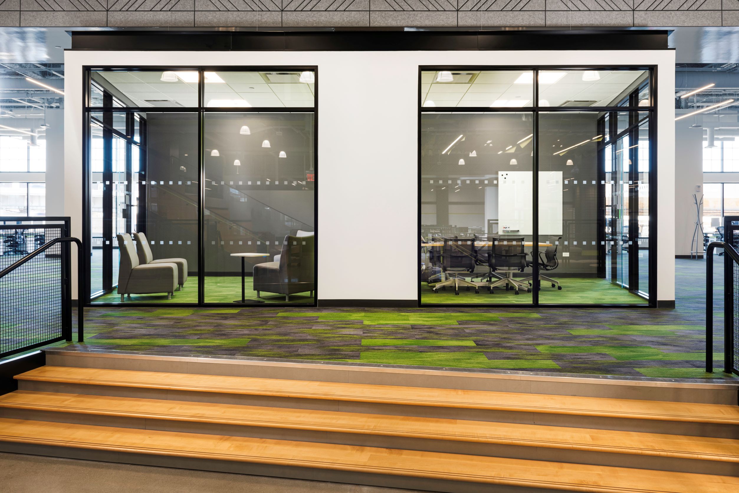 Overall, the carpet tile and ceramic tile flooring in this creative space offer the perfect balance of creativity and functionality. Whether the end users are hosting a brainstorming session or just need a quiet place to focus, this project has all aspects covered.