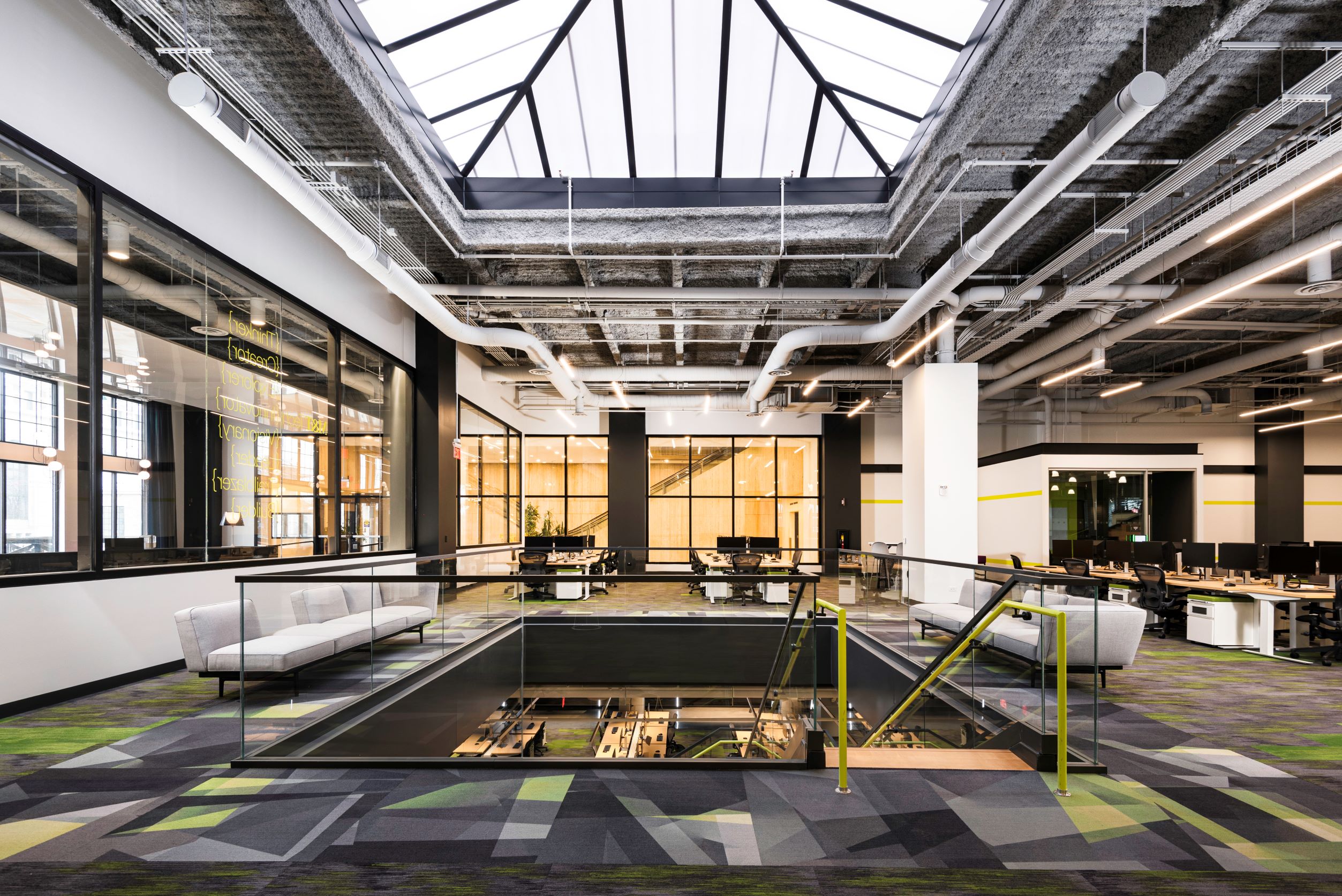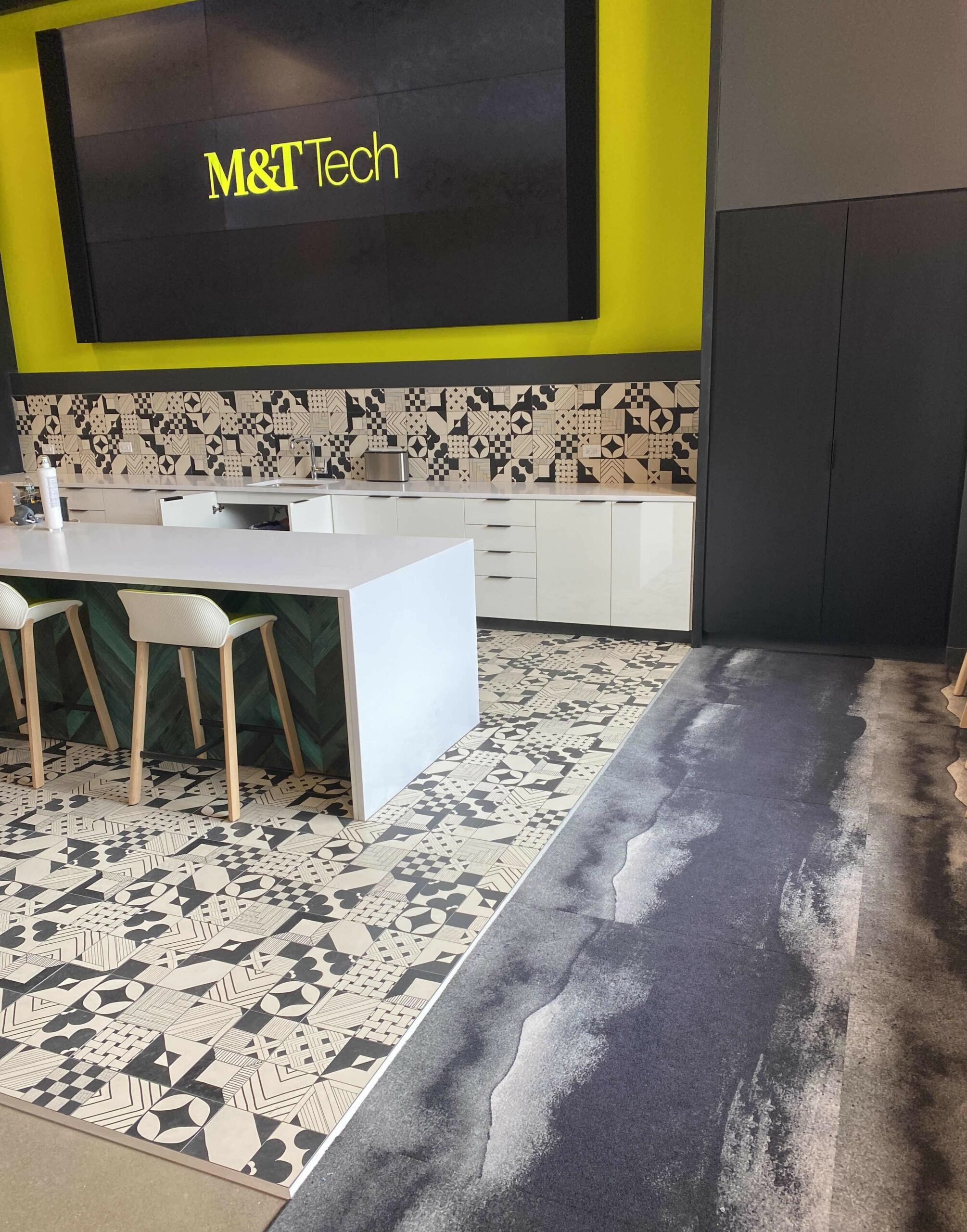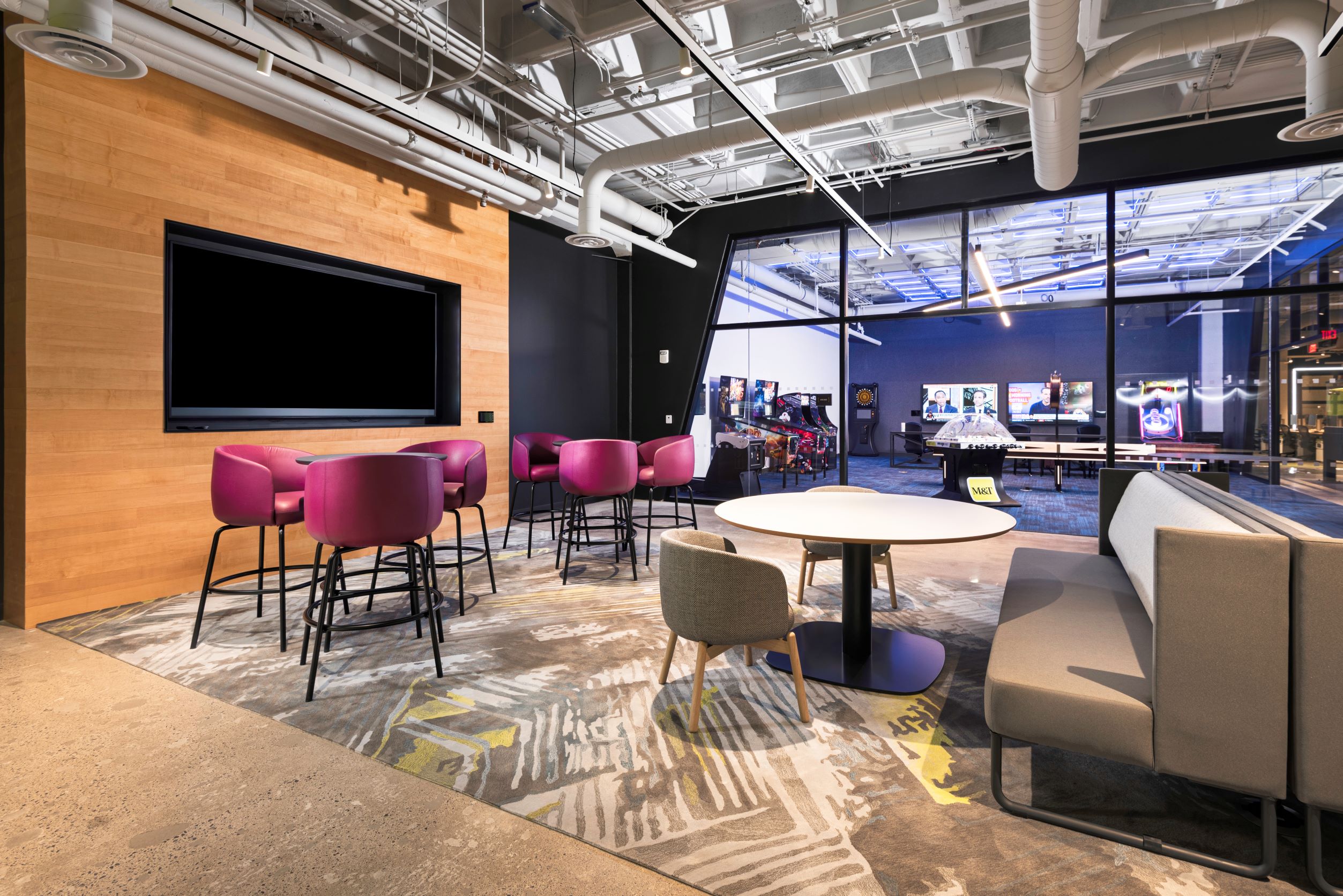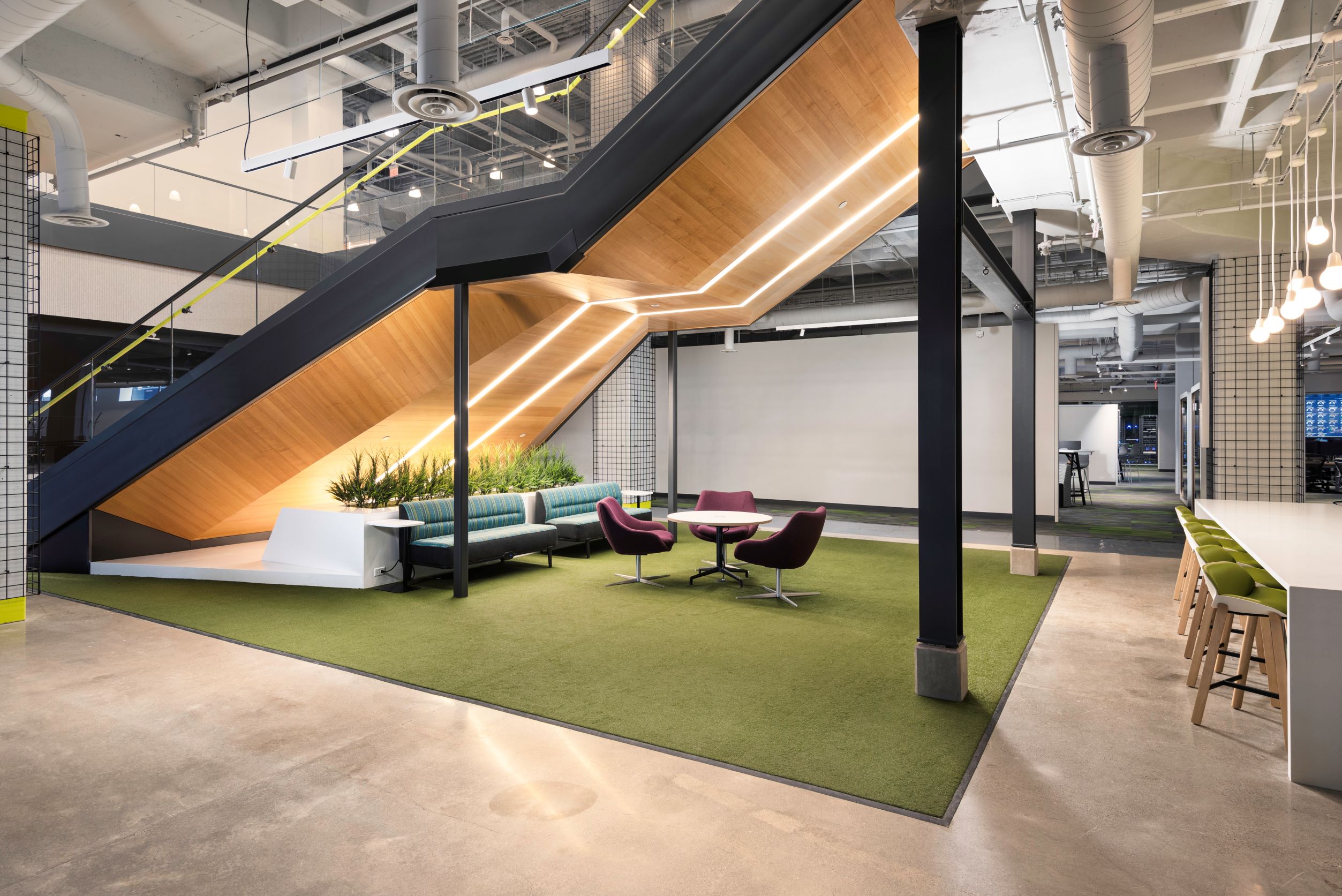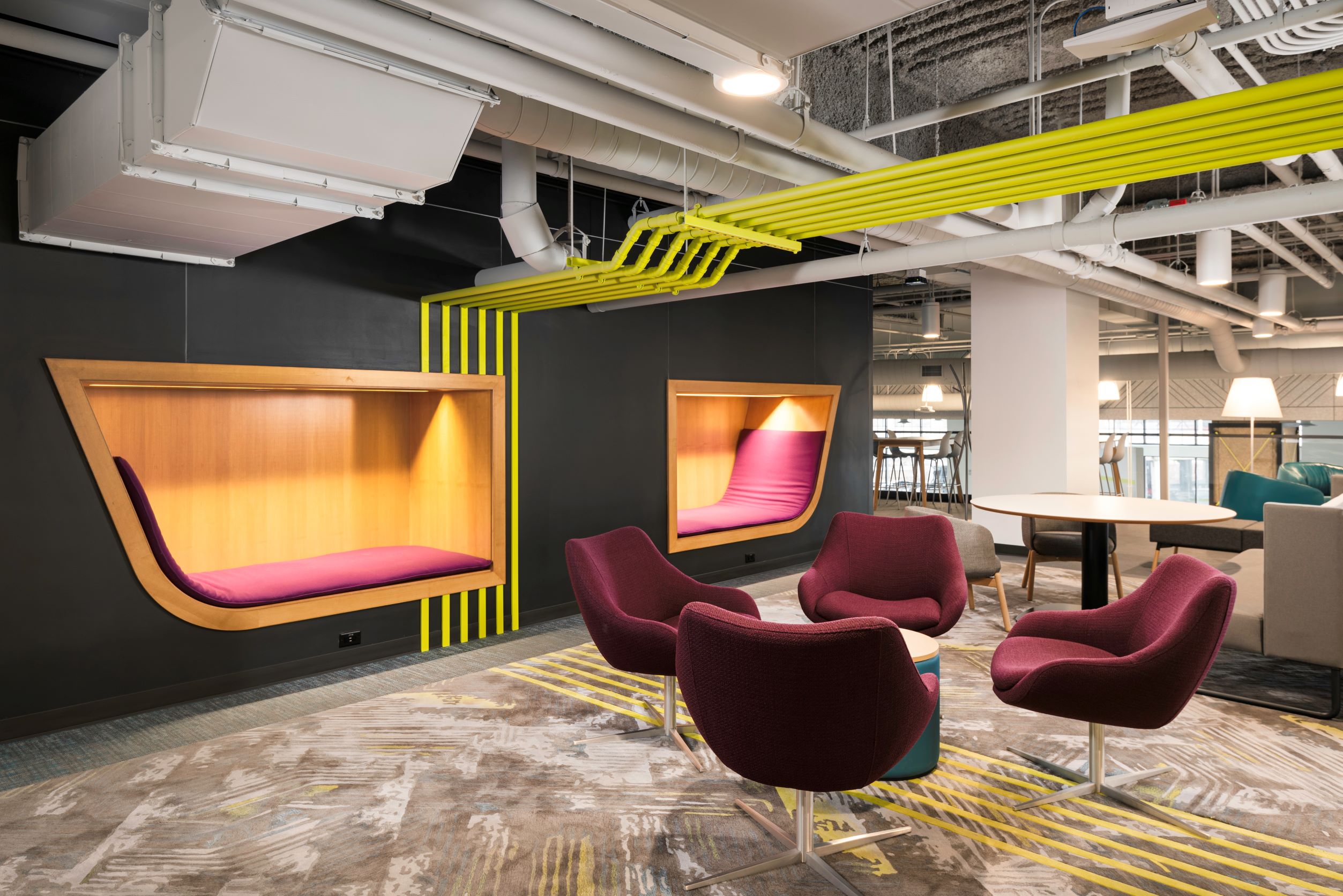 Overall, the carpet tile and ceramic tile flooring in this creative space offer the perfect balance of creativity and functionality. Whether the end users are hosting a brainstorming session or just need a quiet place to focus, this project has all aspects covered.
