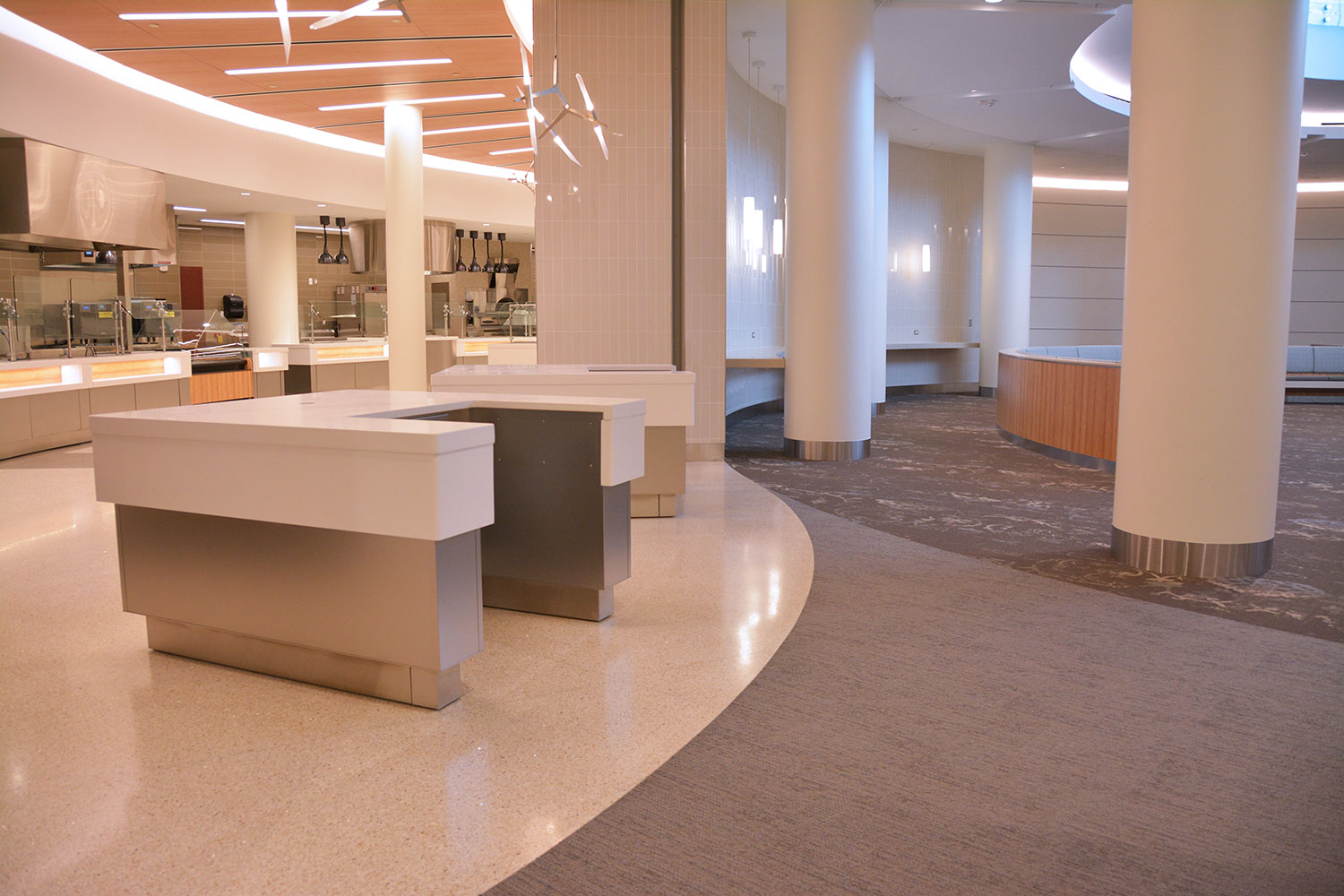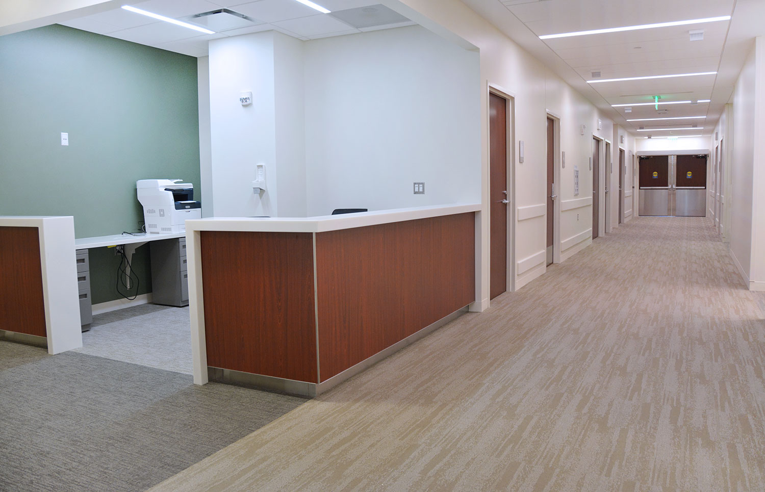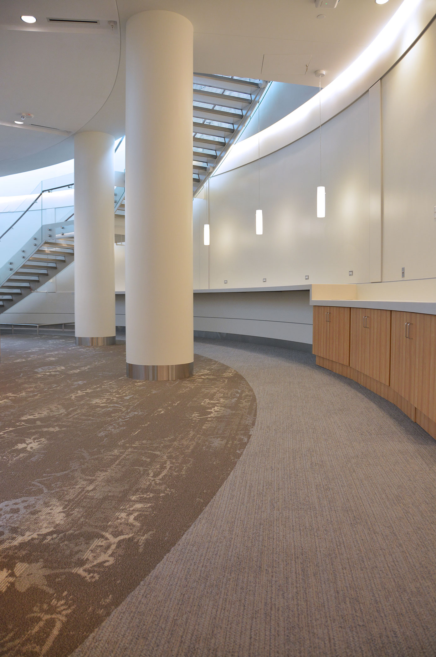 We feel almost like we have become family with our Northwestern Hospital Projects. We have spent the last several years working on many different campuses with this hospital group. This was one of the largest projects we have ever completed and the phase this year was full of challenges. Even though this is new construction – we overcame several space challenges. This project endured a major flood during installation in the spring putting us behind schedule. In addition we worked around an active existing hospital so careful planning and weekly coordination between us, the general contractor and hospital was key to not impacting patients and medical staff. We also had to devise a special inventory management system for labeling all the rolled sheet goods we delivered and picked up from site as we installed. Keeping each cut and roll in order was quite the challenge over thousands of yards of material. We are very excited to be part of this project and proud of the work we have done here. In 2018 we continue to work on more phases of construction and other campuses for this hospital.