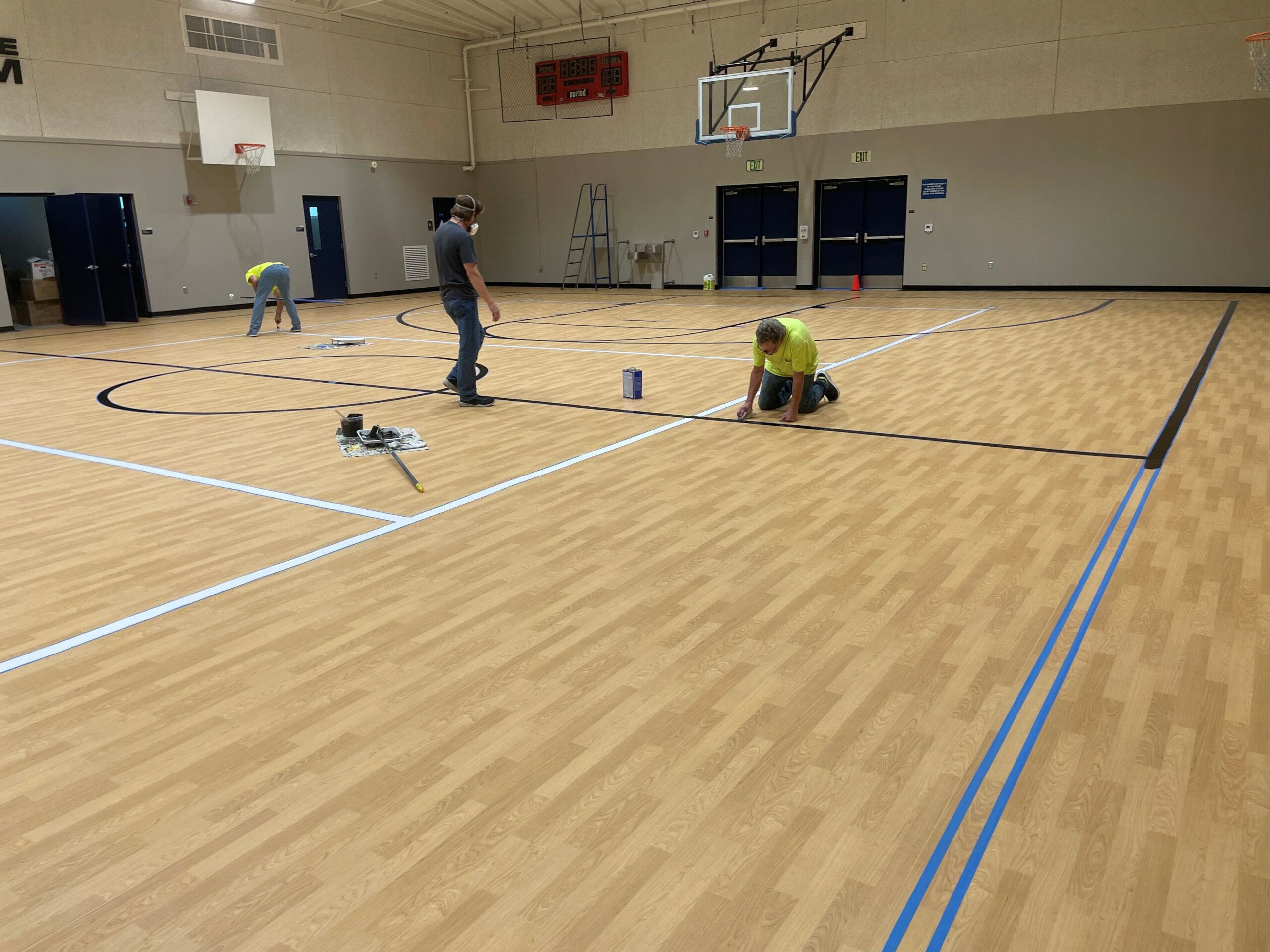 Once the vinyl was finished, Signature’s installation team expertly welded together all the seams and finished off the install by painting game lines for both youth Basketball and Volleyball courts. The use of Pacific Solutions’ Flooright surface proved instrumental in showing the client various options and colors based upon the shape and size of the courts.