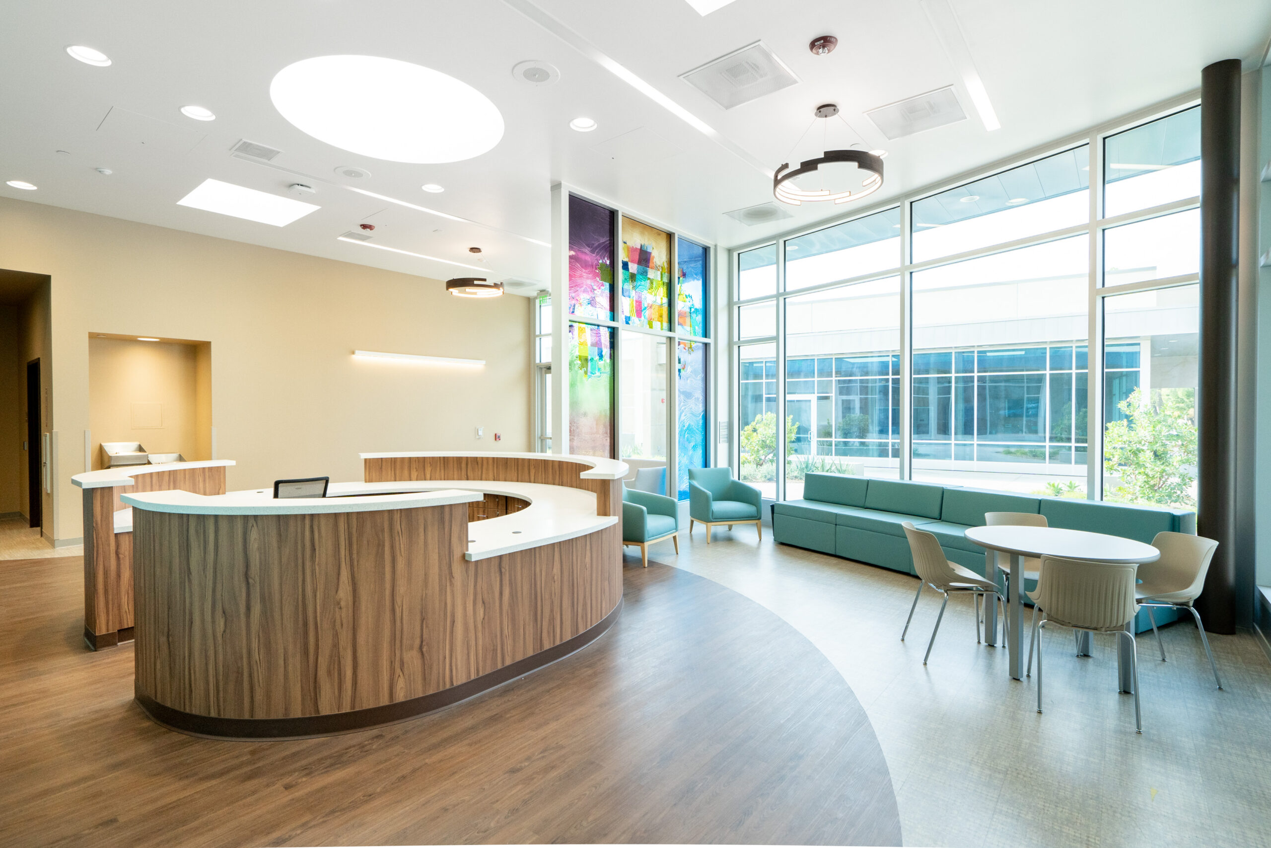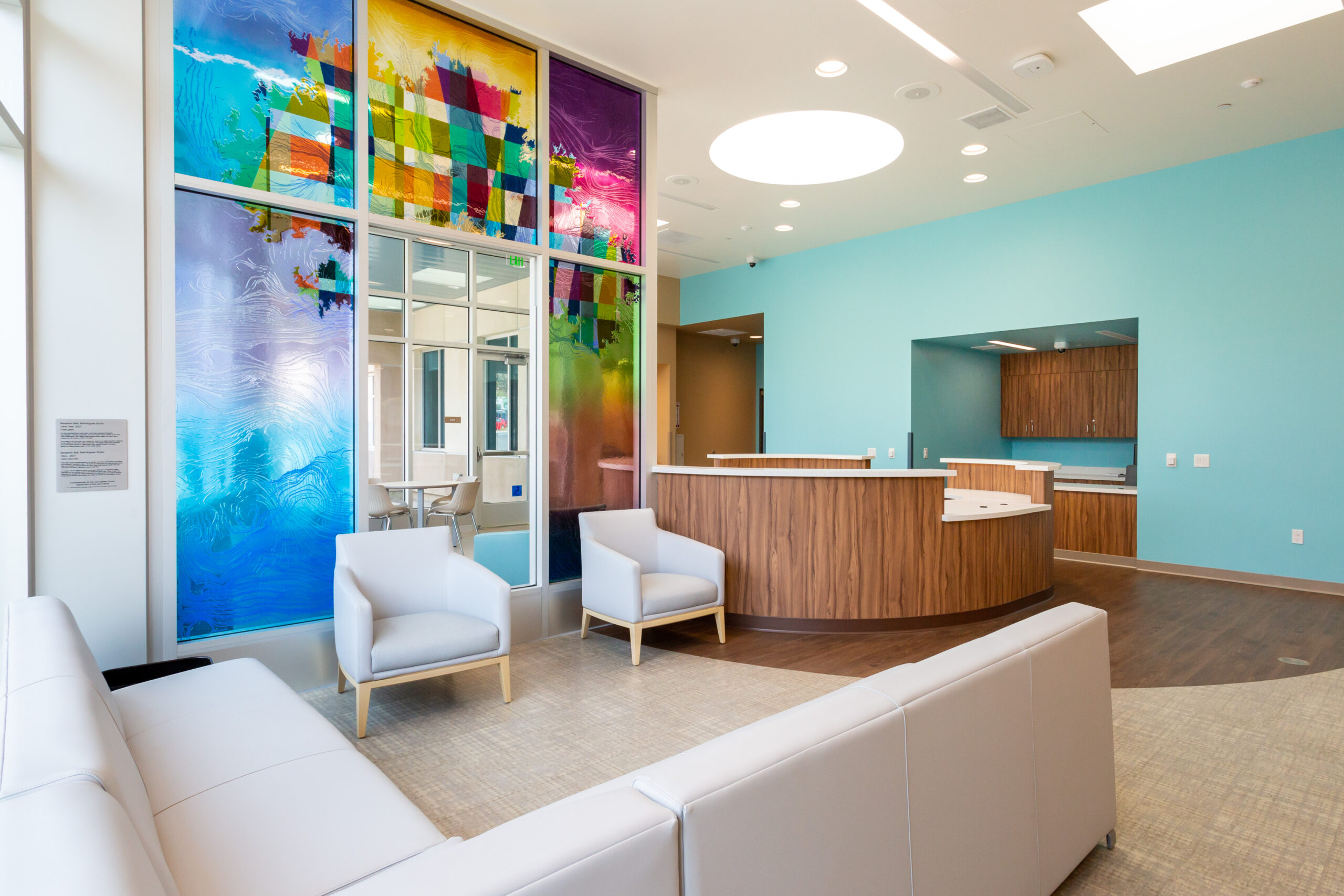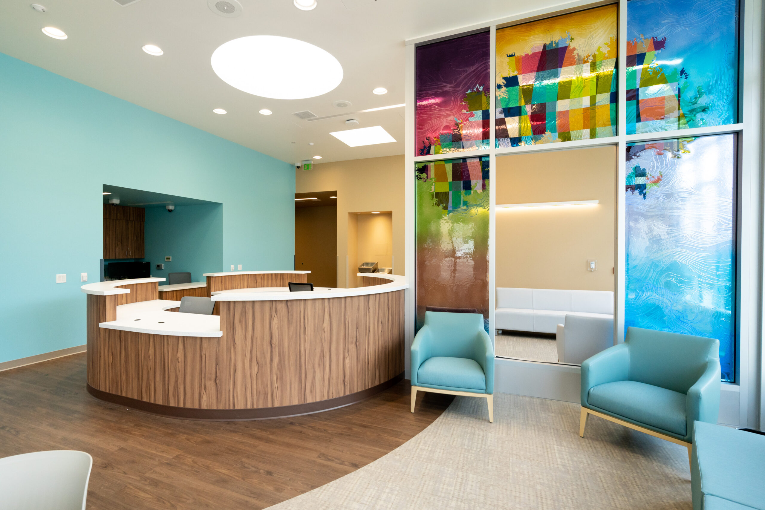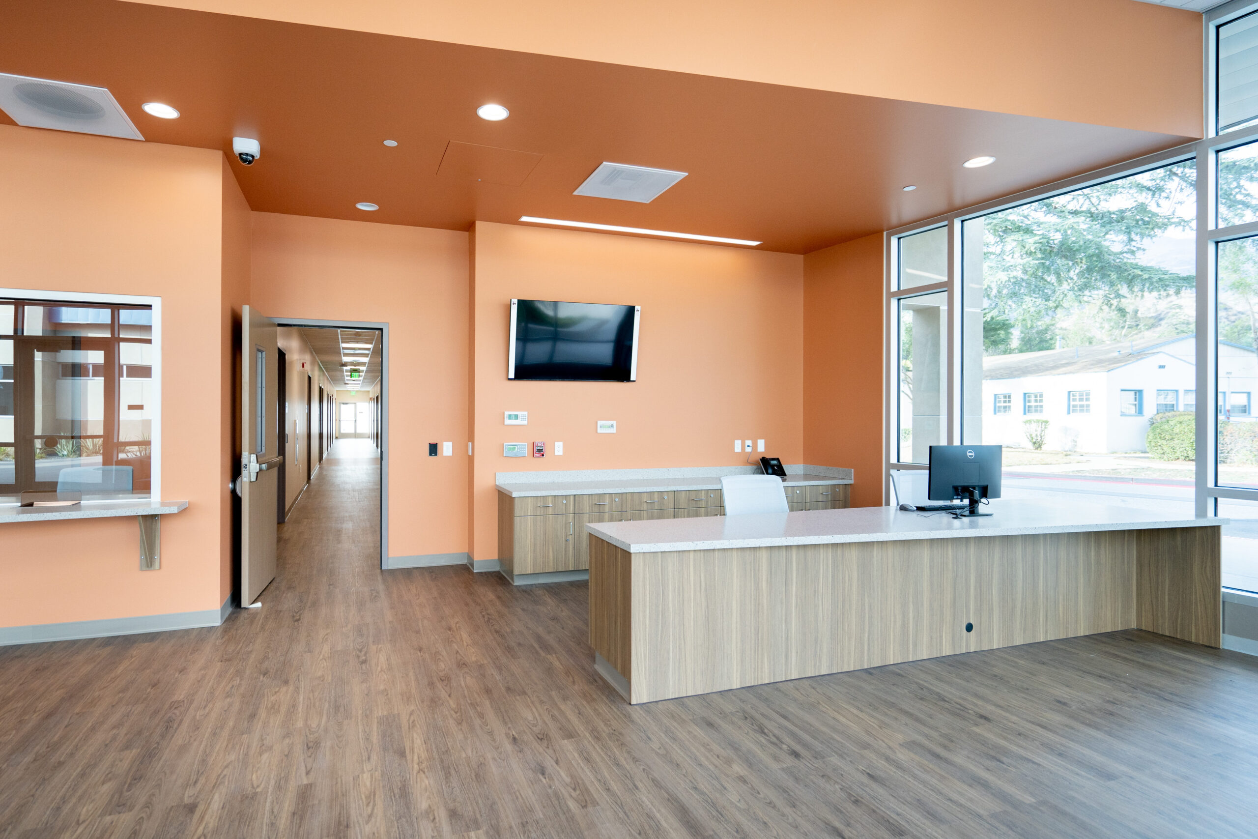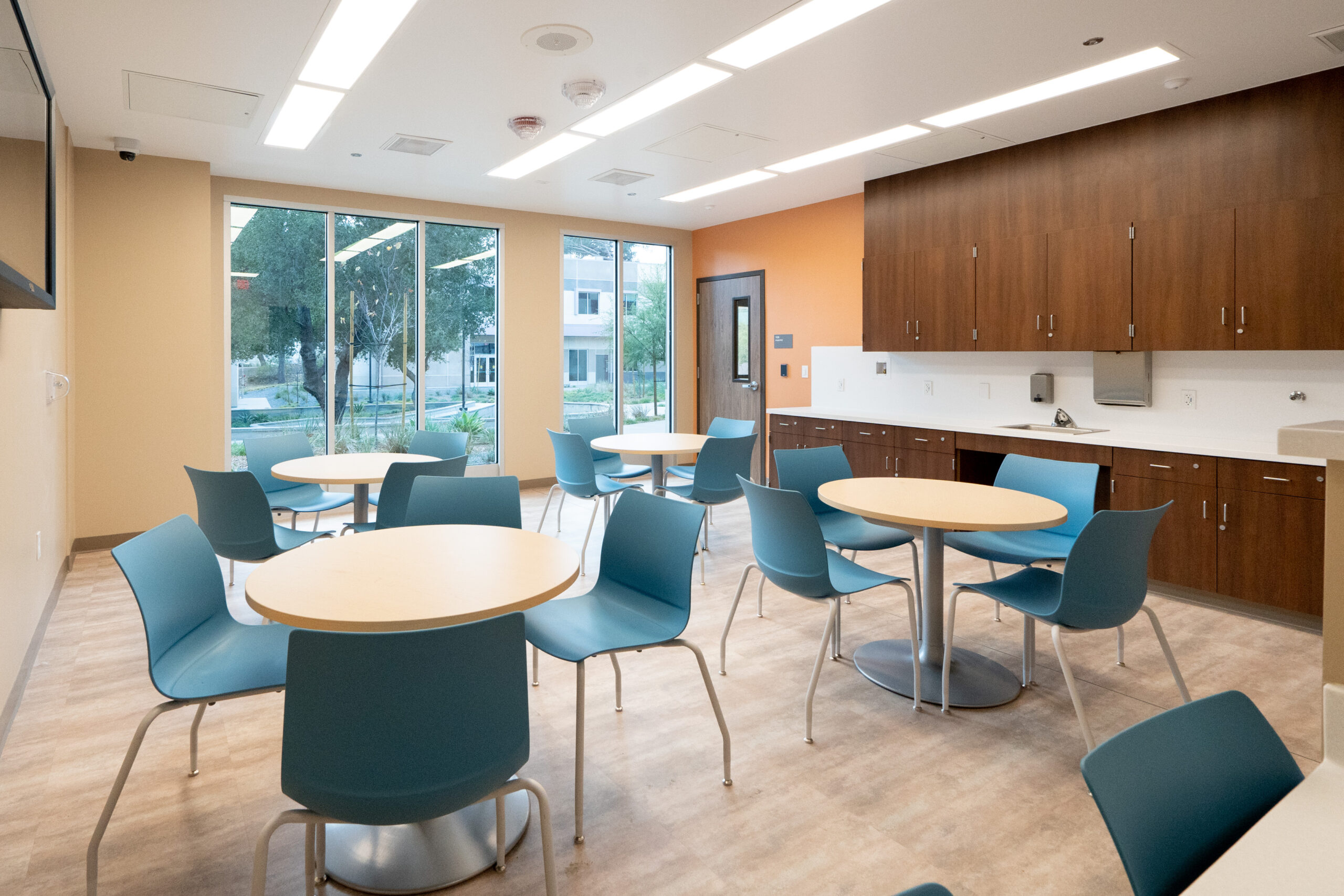 Package B features two traditional ground-up buildings – a 10,000 SF Mental Health Urgent Care Center and a 10,000 SF Mental Health Wellness Center. Similarly, we installed Daltile floor tile and full-height wall tile in the 14 Restrooms and Teknoflor Forest Plank HPD, Teknoflor Medscapes HPD Resilient Sheet, Armstrong VCT and Carpet throughout the remaining areas.