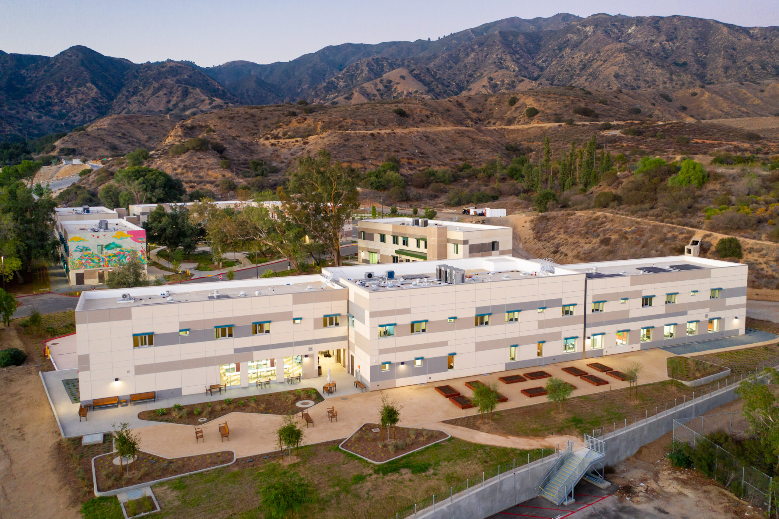 This was a design-build project that Abbott Construction and SWA Architects partnered with the County of Los Angeles on to answer the pressing need for increased mental health, medical, and homeless support services in local communities. This new Restorative Care Village at the Olive View-UCLA Medical Center campus not only provides mental health services, but also offers a safe place to stay, recuperate, and receive ongoing clinical support, with the goal of helping residents successfully reintegrate into their own communities.