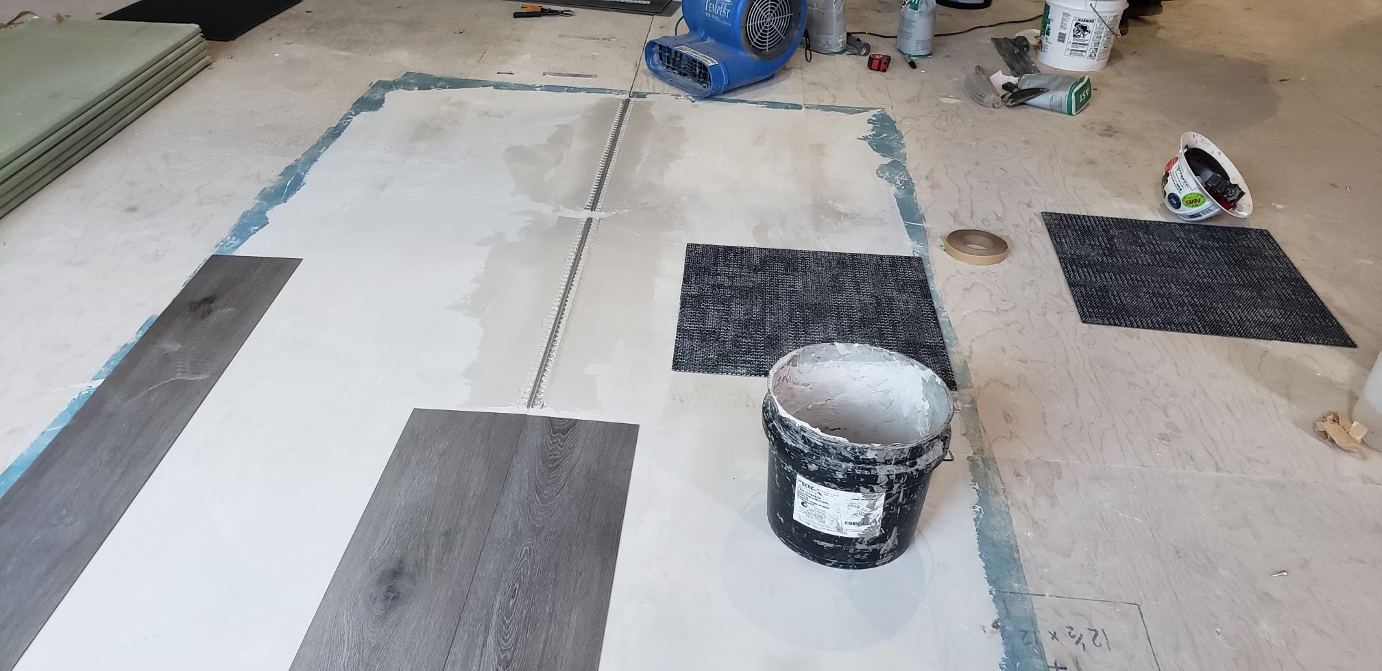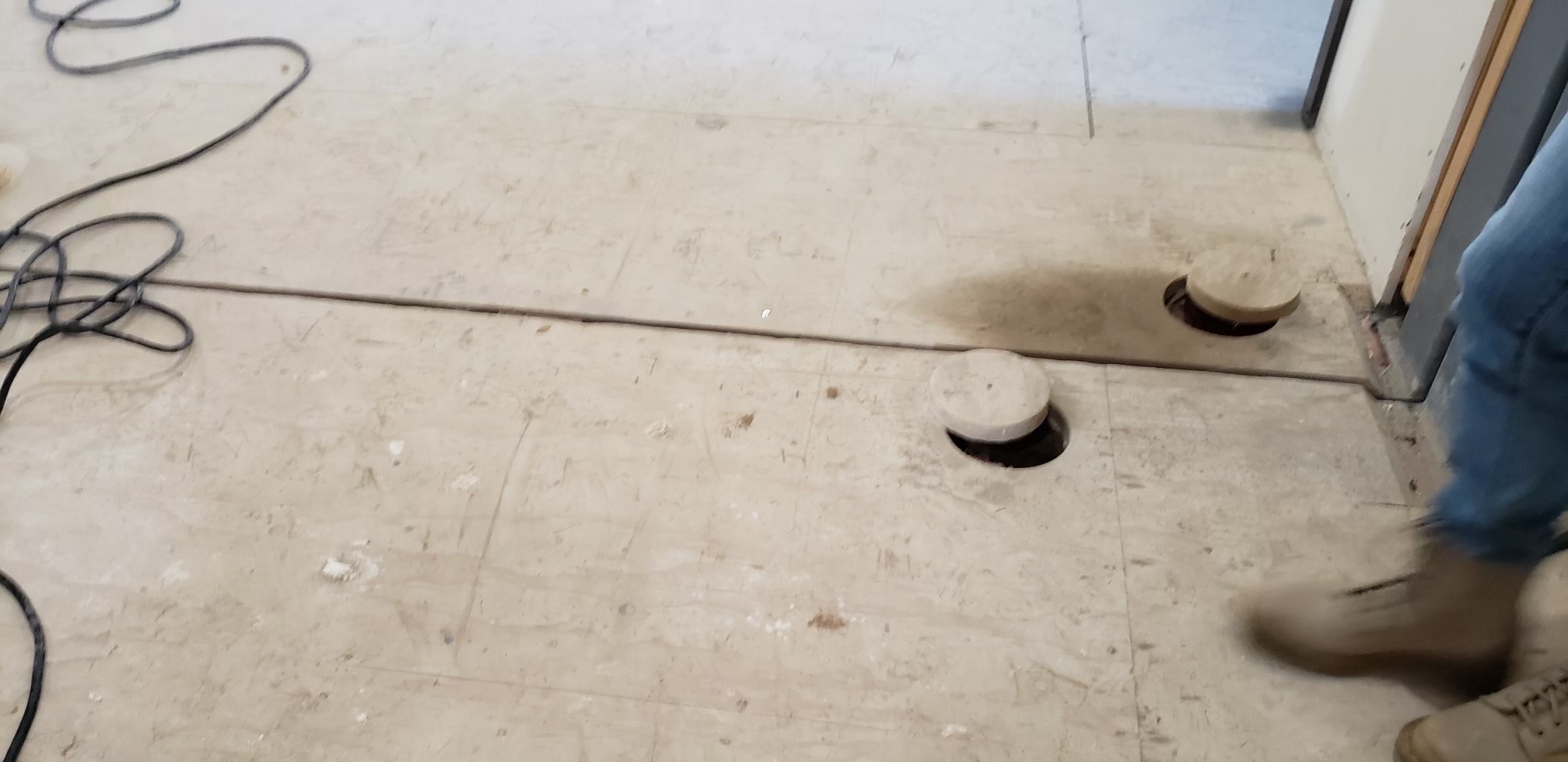 The 6 modular buildings for the RTP and RCC buildings were manufactured offsite and assembled on site, which presented some challenges that we had to address with gaps and uneven substrates where the units came together. For example, the RTP building had a wood substrate, while the RCC building had a concrete substrate, so we had to address the floor prep of each very differently to achieve suitable conditions for the floor covering they were receiving. We accomplished this with Schonox SHP Primer, Schonox SL Moisture Resistant Patch and Schonox APF Leveler.