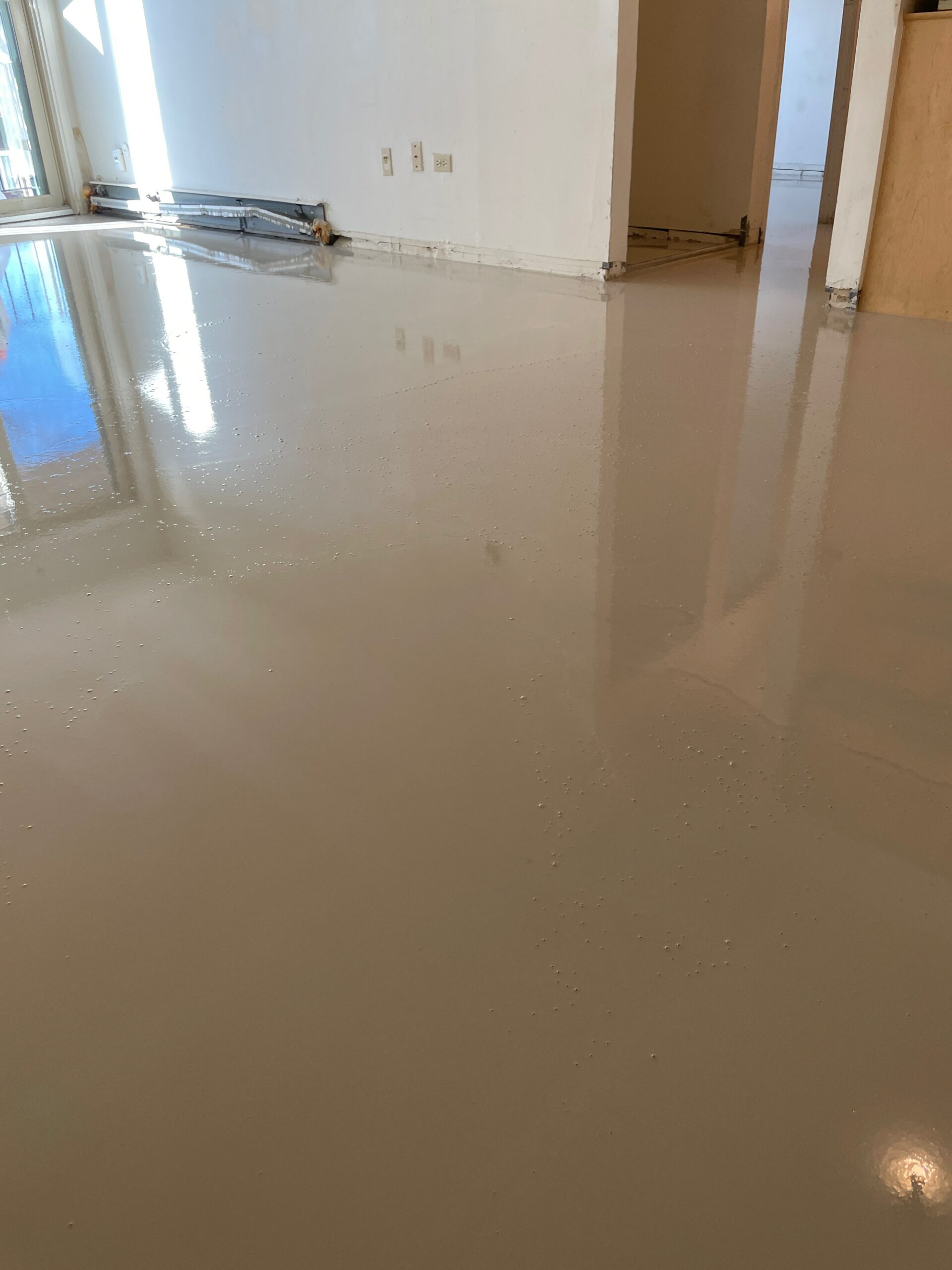 HTC Commercial Flooring partnered with Schonox to provide a new subfloor, priming the existing with KH Fix, overlaying with Renotex, and pouring over 10,000 bags of APF. However, doing so was no easy task. Throughout renovation, 27 buildings remained occupied at all times: requiring 30 different leveling mobilizations. HTC utilized their GRACO ToughTek MP40 mixing pump paired with a static mixer, to allow pumping the Schonox leveler and its embedded fibers up 2 stories. In doing so, reducing the labor costs, and turning each building over back to the client in half the original proposed construction time.