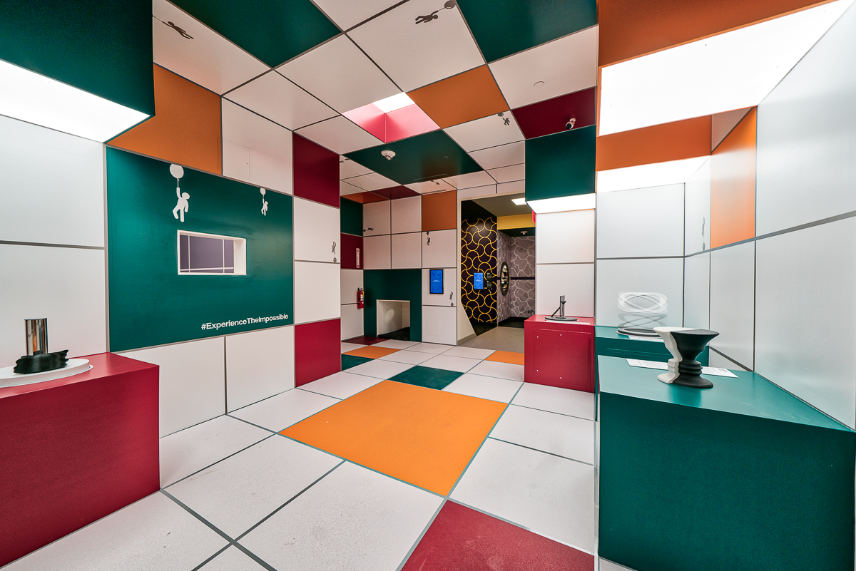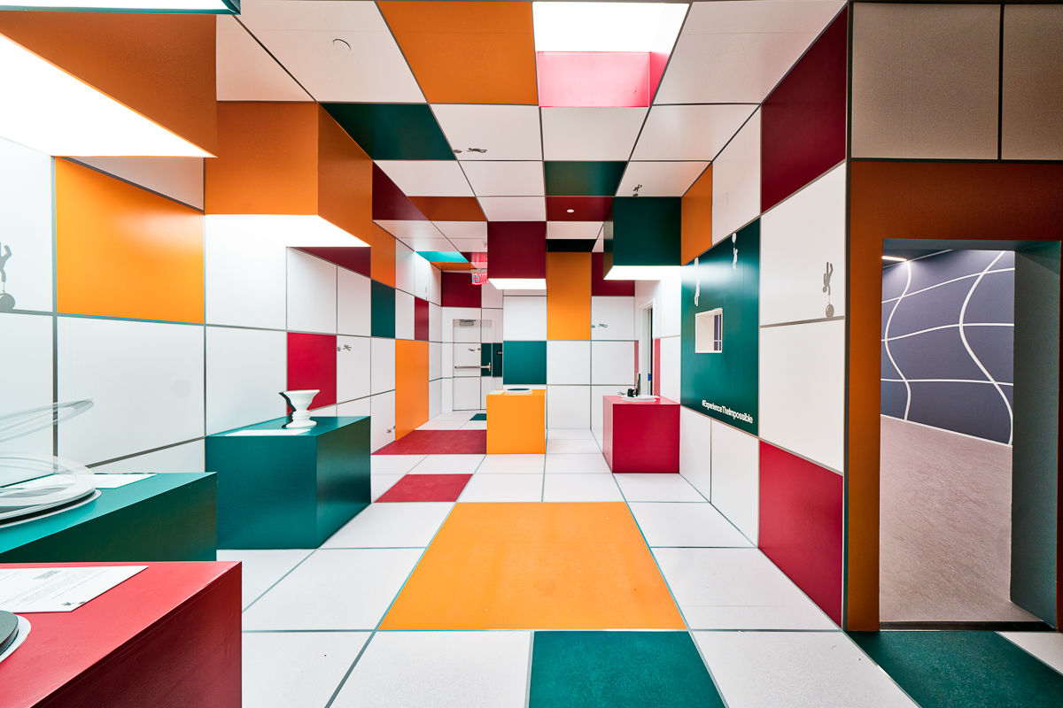One of the most creative aspects of the project was the “Cubes Room”. It has a grid pattern painted on the floor which we used game line paint used for athletic courts.
