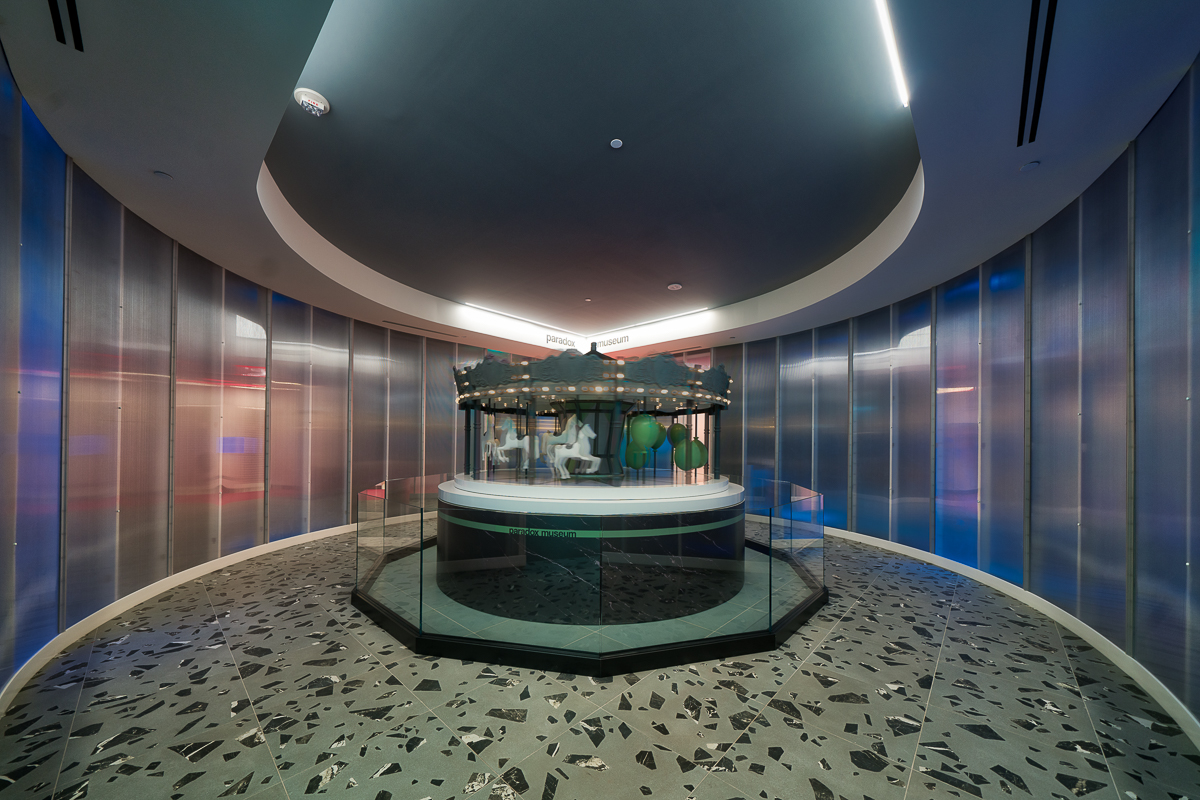 The paradox Museum project was all Tarkett/Johnsonite resilient sheet floors. Thirteen different colors all with color matching millwork base. When you view the photos, you’ll notice each floor color has color base to match.