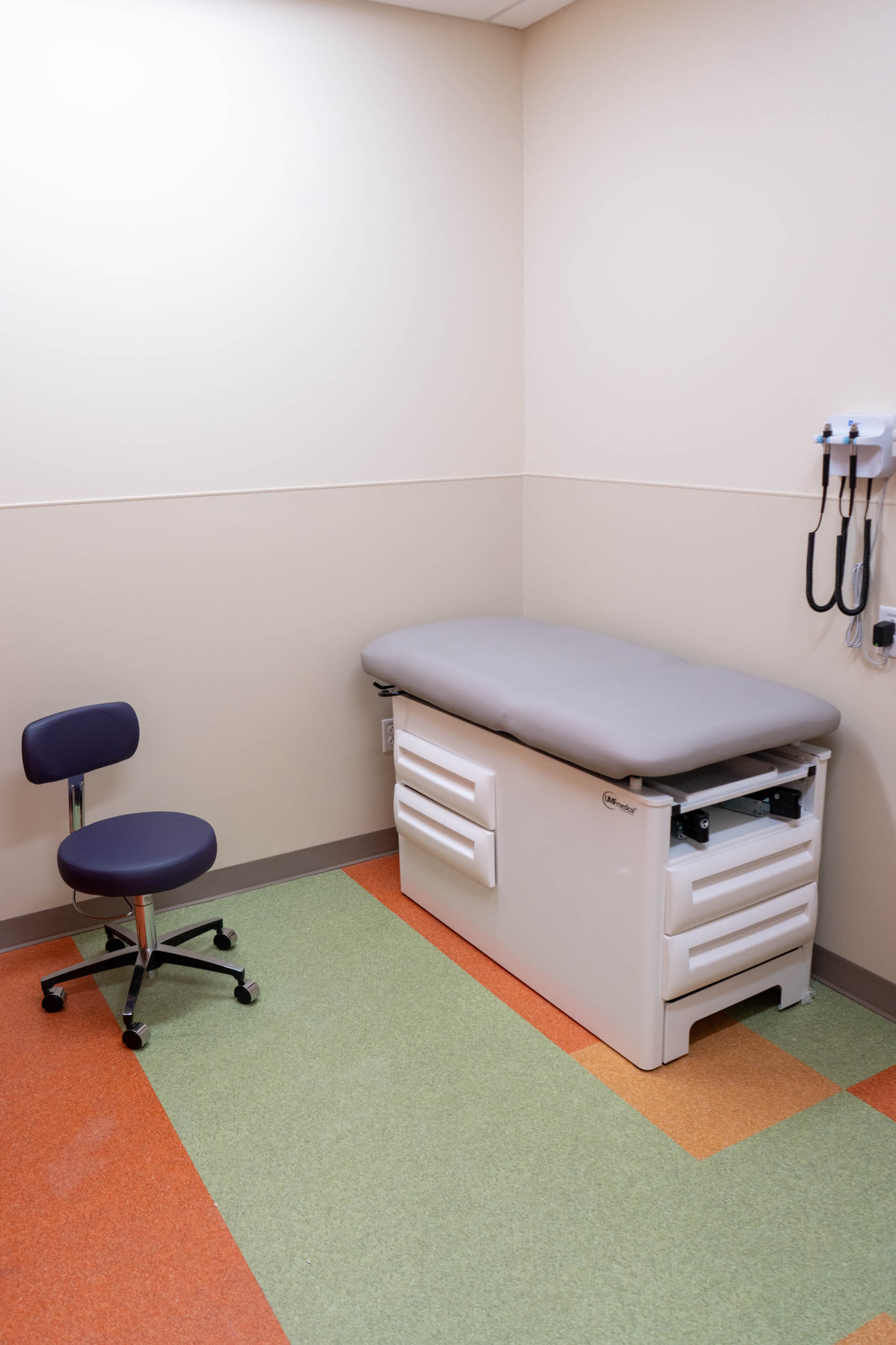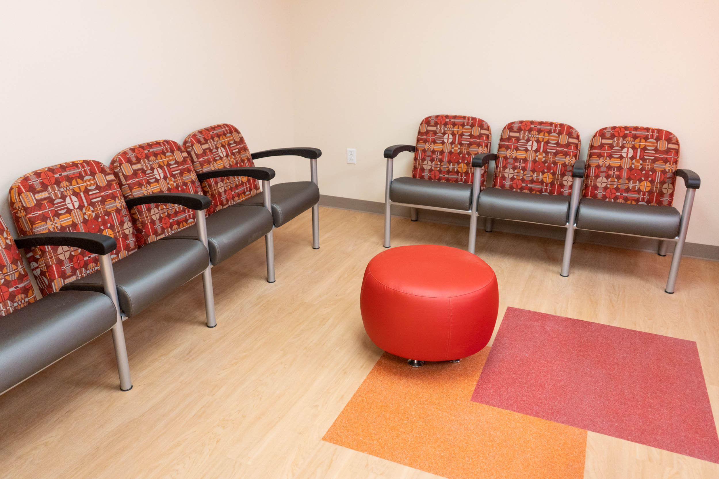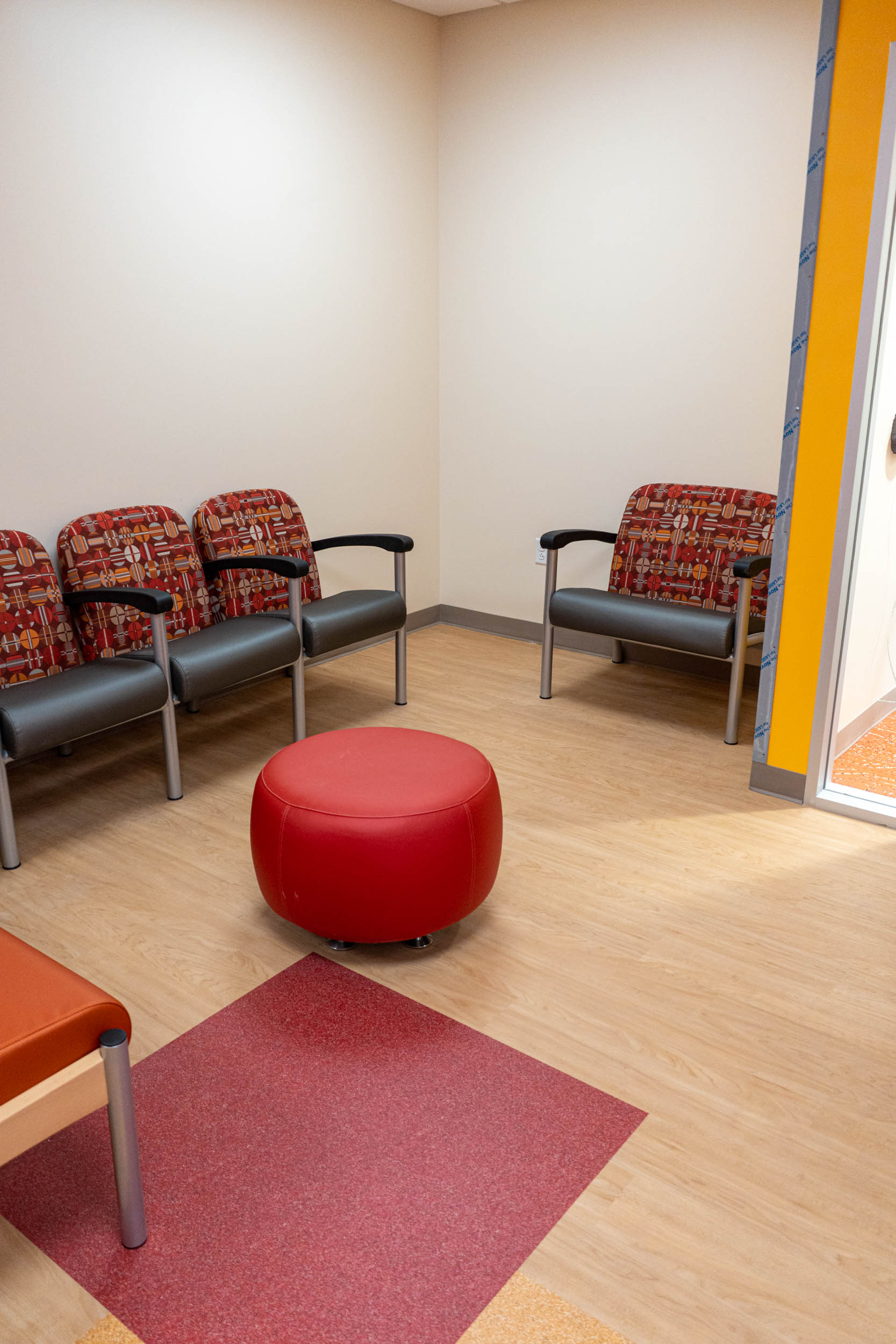 A total of ten different colors were introduced with the consistent background of Canadian Maple Wood as well as a Tarkett Luxury Vinyl Tile Color Play / Color Pop Apricot, Cardinal, Paprika, Dandelion, Lime, Bermuda, Plum and Pink. Each color provided specific guidance to procedure rooms, assisting patients to locate the correct location of their treatment.