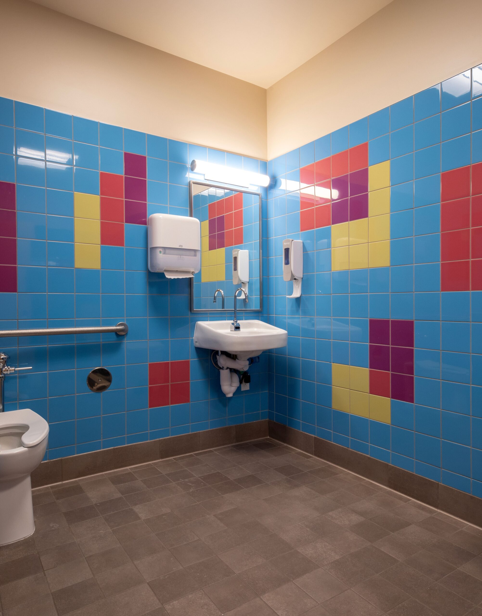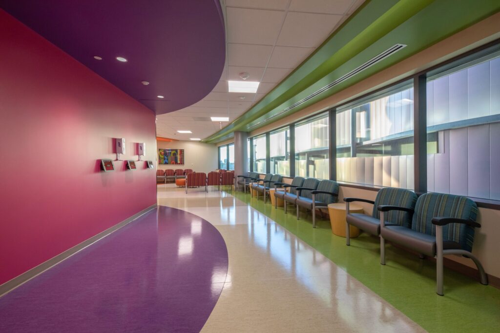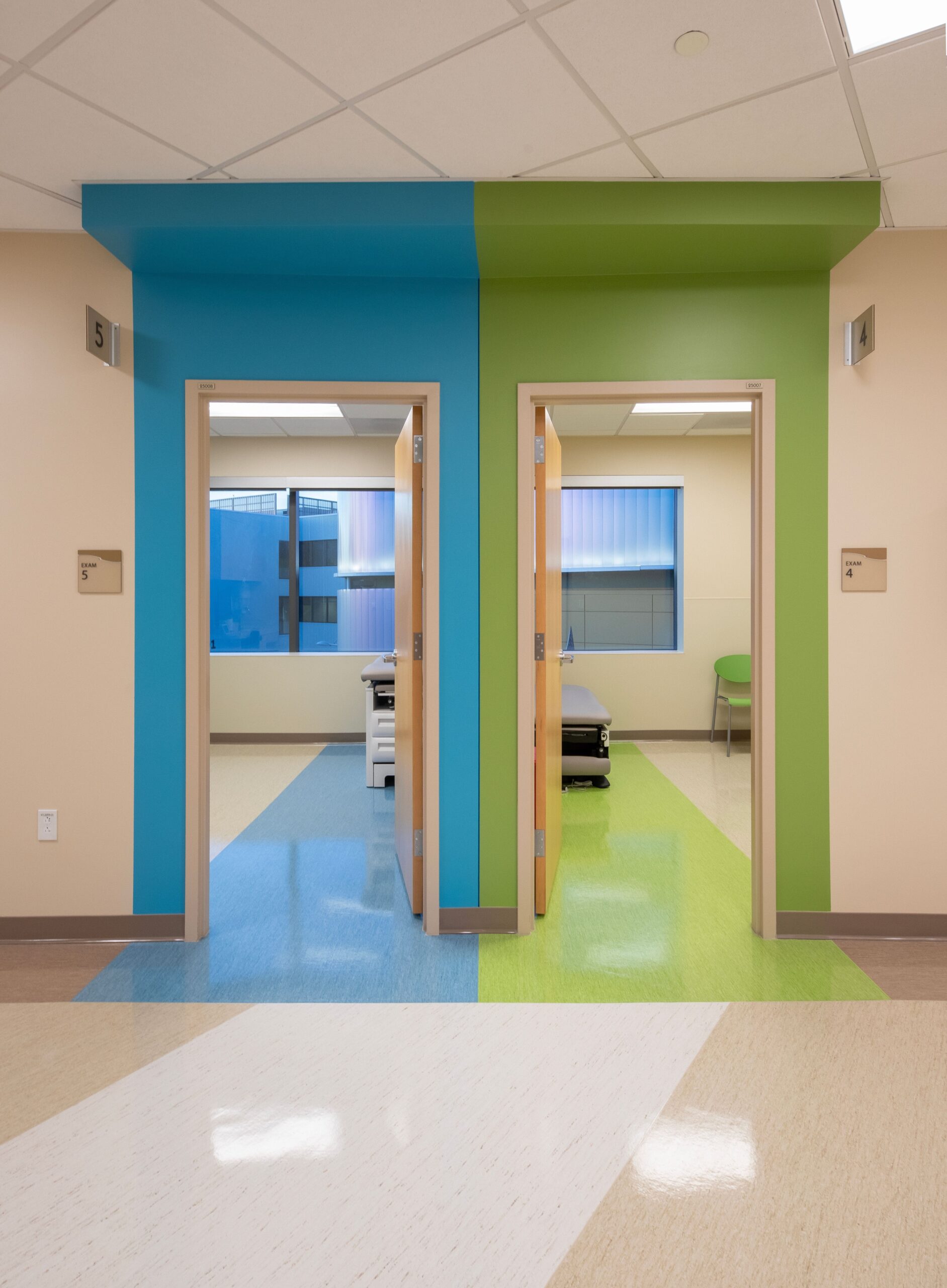 Working in partnership with DPR Construction and Orcutt Winslow Architects we were able to deliver this project to the hospital with virtually no punch. We self leveled the project using Schonox ZM Leveler to achieve a superior working surface. During initial installation our crew determined the material had some defects most likely caused during shipping. This obviously created a strain on the project schedule. Tarkett had an immediate site visit, secured replacement material and shipped new product. We worked with the GC and the Architect on site to finalize layout of patterns and intricacy needed to complete the installation. We used 10 of our in house installers to escalate the installation once new material arrived to our warehouse to get back on the clients escalated schedule. Once the project was back on track we were able to deliver a great finished product with great communication between all parties involved.