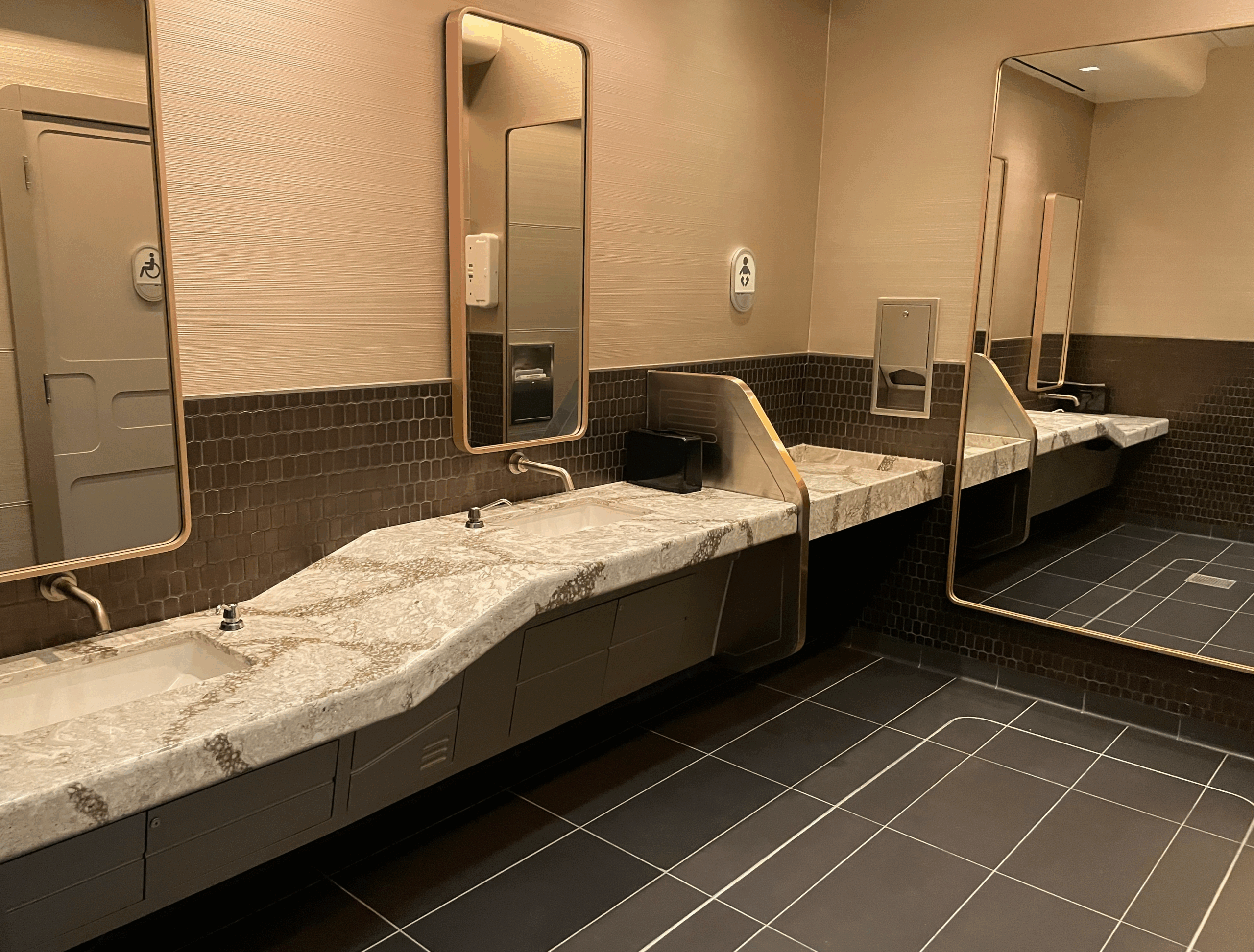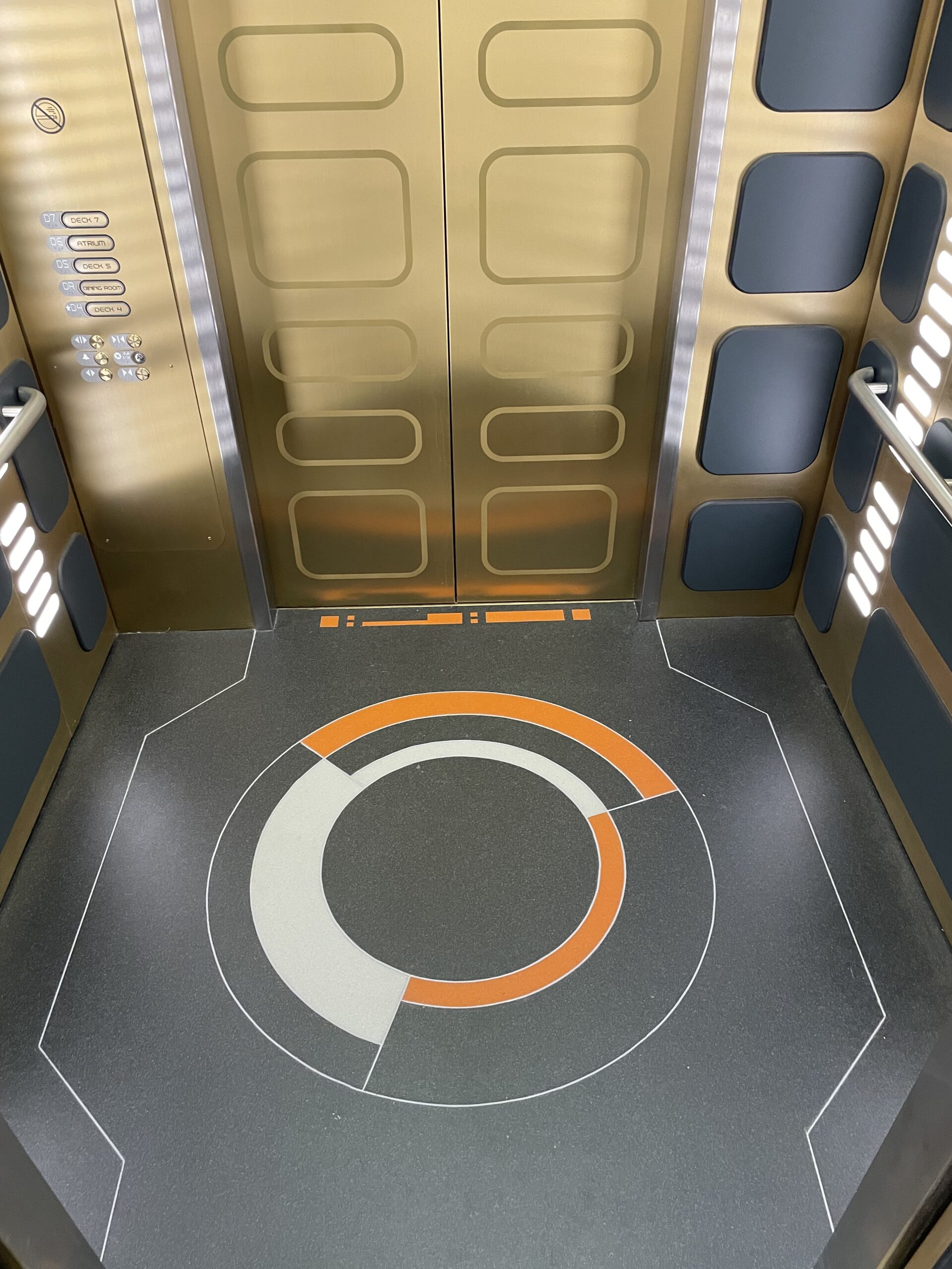We had the pleasure of working closely with the lead interior designer on this project to assist with product recommendations in the early planning stages. Once they landed on Shaw, we worked closely with both Shaw and the designer to layout and install a few different products that all came together to help highlight the path of travel walkways in between library rooms. This design also included mirroring the unique lighting fixtures above to provide fun accent pops on the flooring beneath them to create an even more cohesive design. Coral might have not been the first color we would have chosen, but once installed, it came together perfectly with the rest of the library’s furnishings and we are big fans!