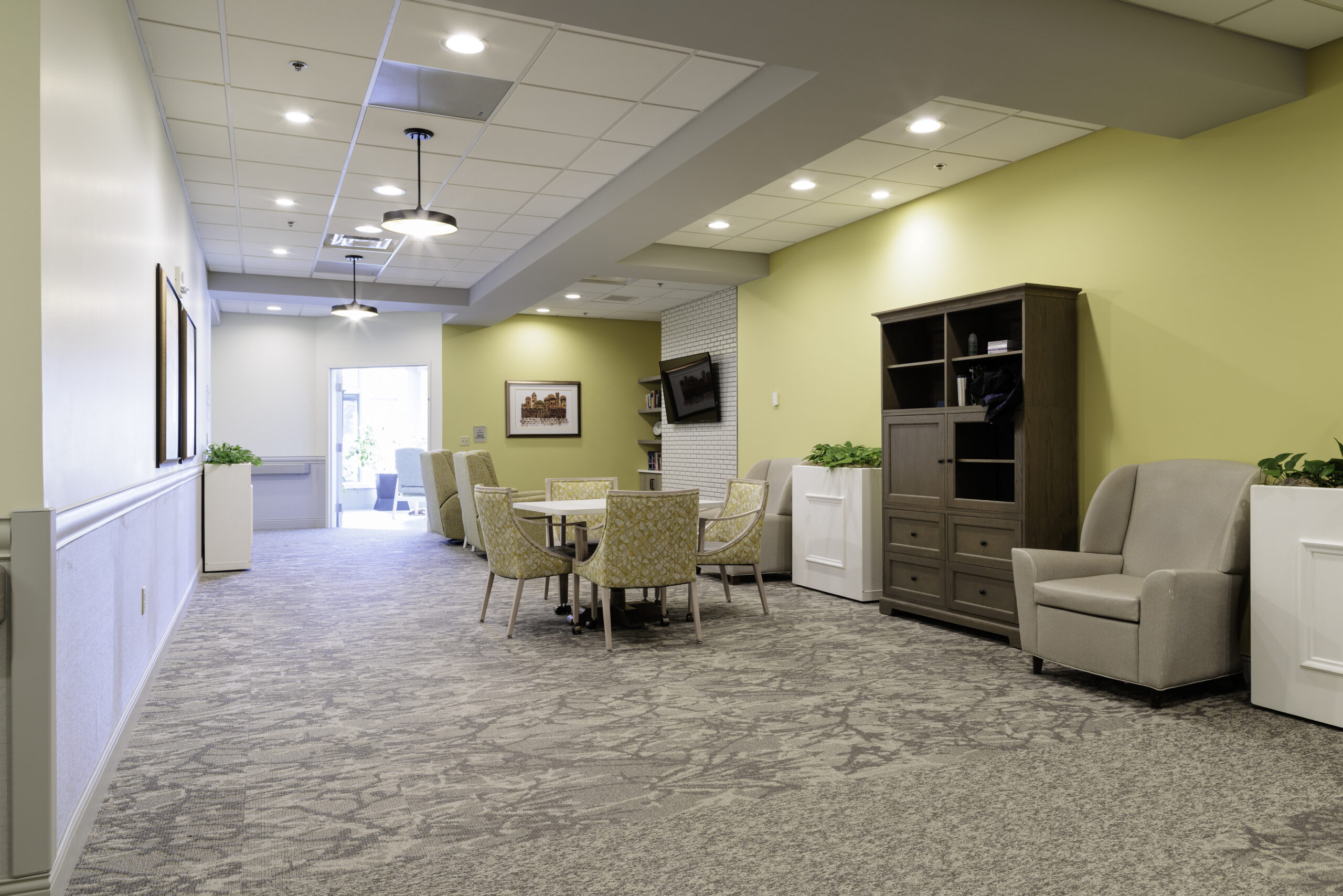 From the welcoming lobby to the intimate residence rooms and vibrant community spaces.  Every installation detail was executed with precision and care.  The result is a cohesive, uplifting environment that not only meets the highest standards of craftsmanship but also reflects the heart and mission of the Rose Blumpkin Home-a place where every step feels like home.