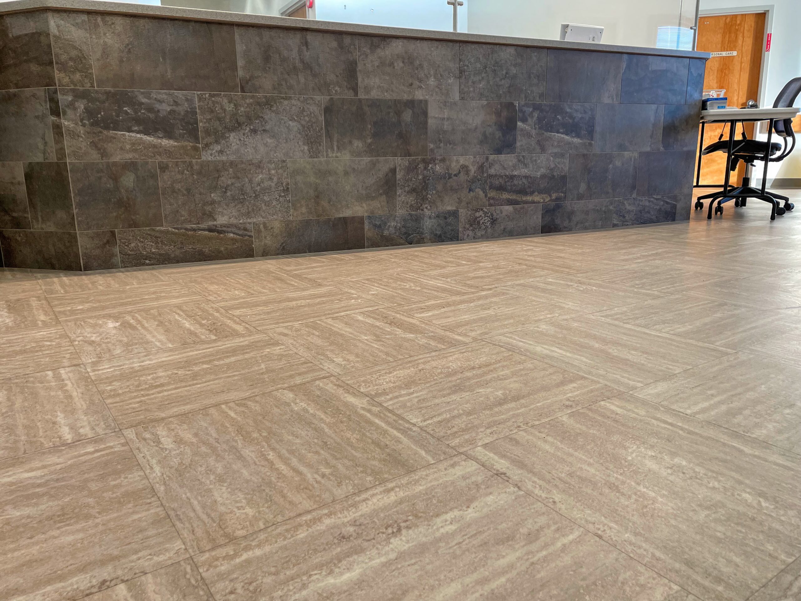 • 27,000 s/f of LVT & LVP installed in a pattern, Tarkett’s Latitude Stone with others