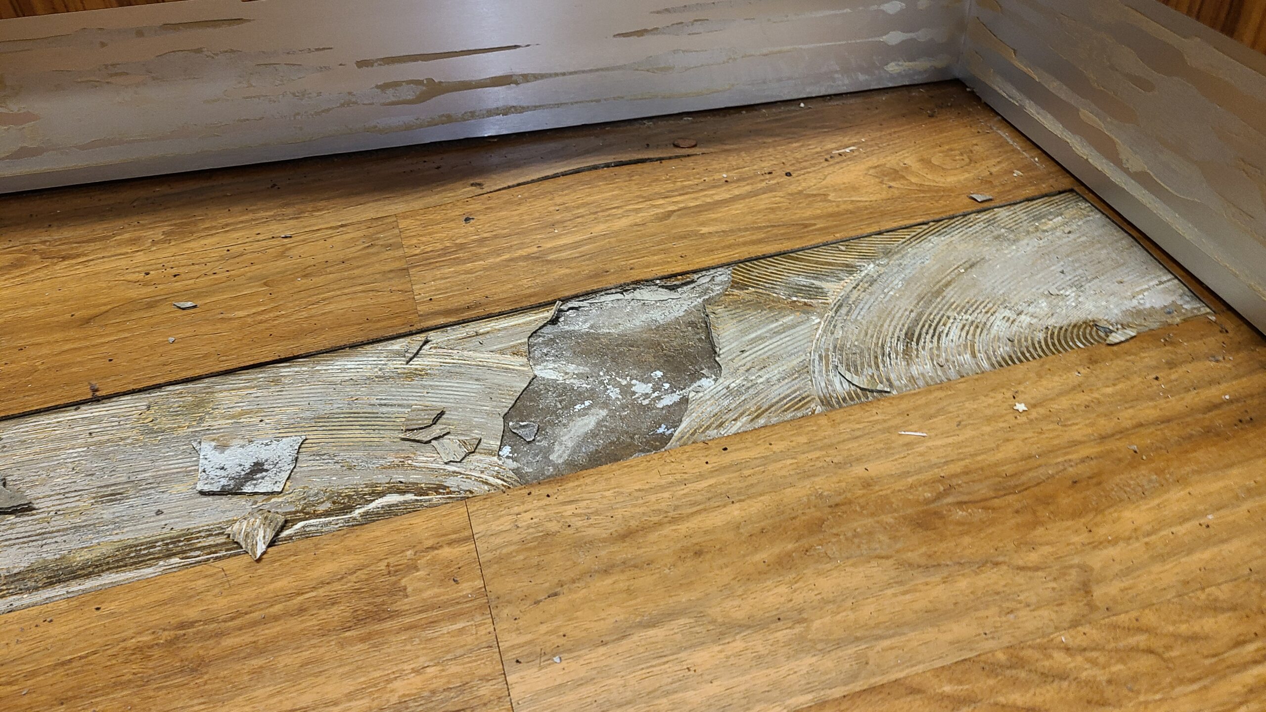 After demo roulette, we could move on to applying Schonox EPA two-part epoxy followed by 220 bags of Schonox ZM and 15 bags of the AP for our asbestos containing area. Capping off the beautiful install with Tarkett cove base really completed the look.
