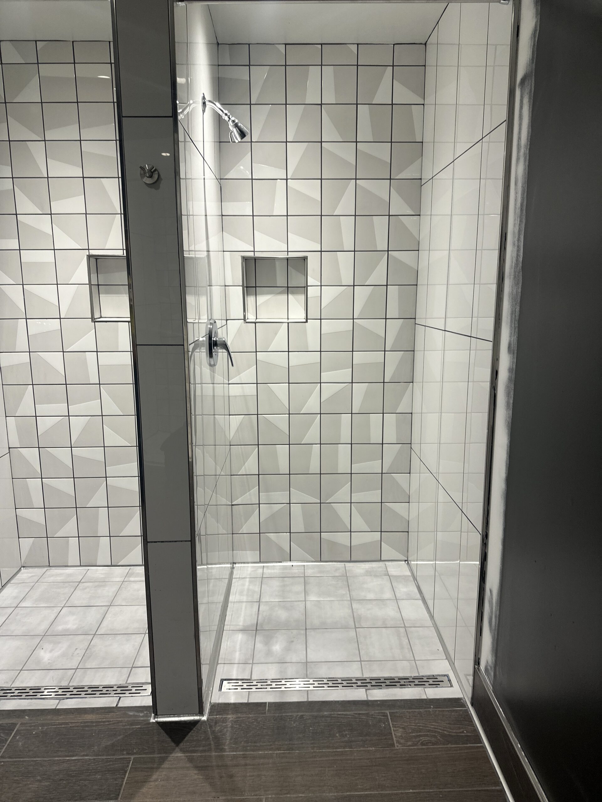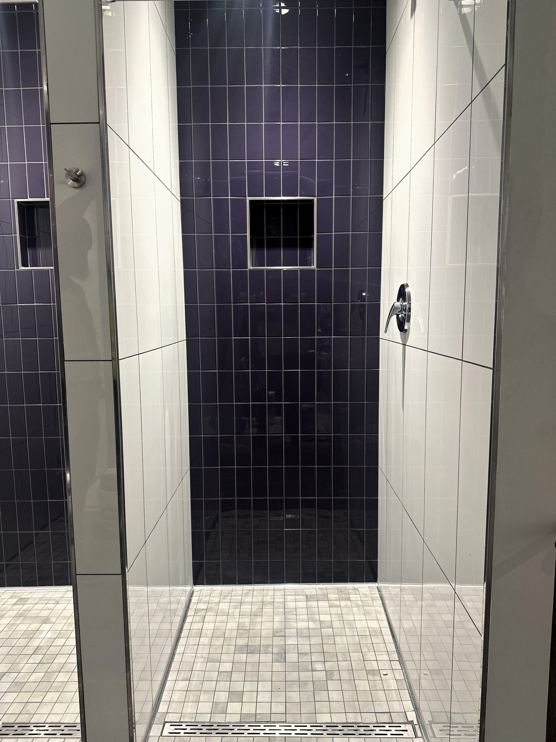 The technical demands of installing both floor and wall tile across multiple finishes, while coordinating different Mapei and Laticrete systems paired with varying tile combinations, added complexity. Through meticulous planning, precise execution, and disciplined workflow management, our team delivered a high-quality installation on schedule, allowing Spectrum Arena to reopen for events seamlessly.