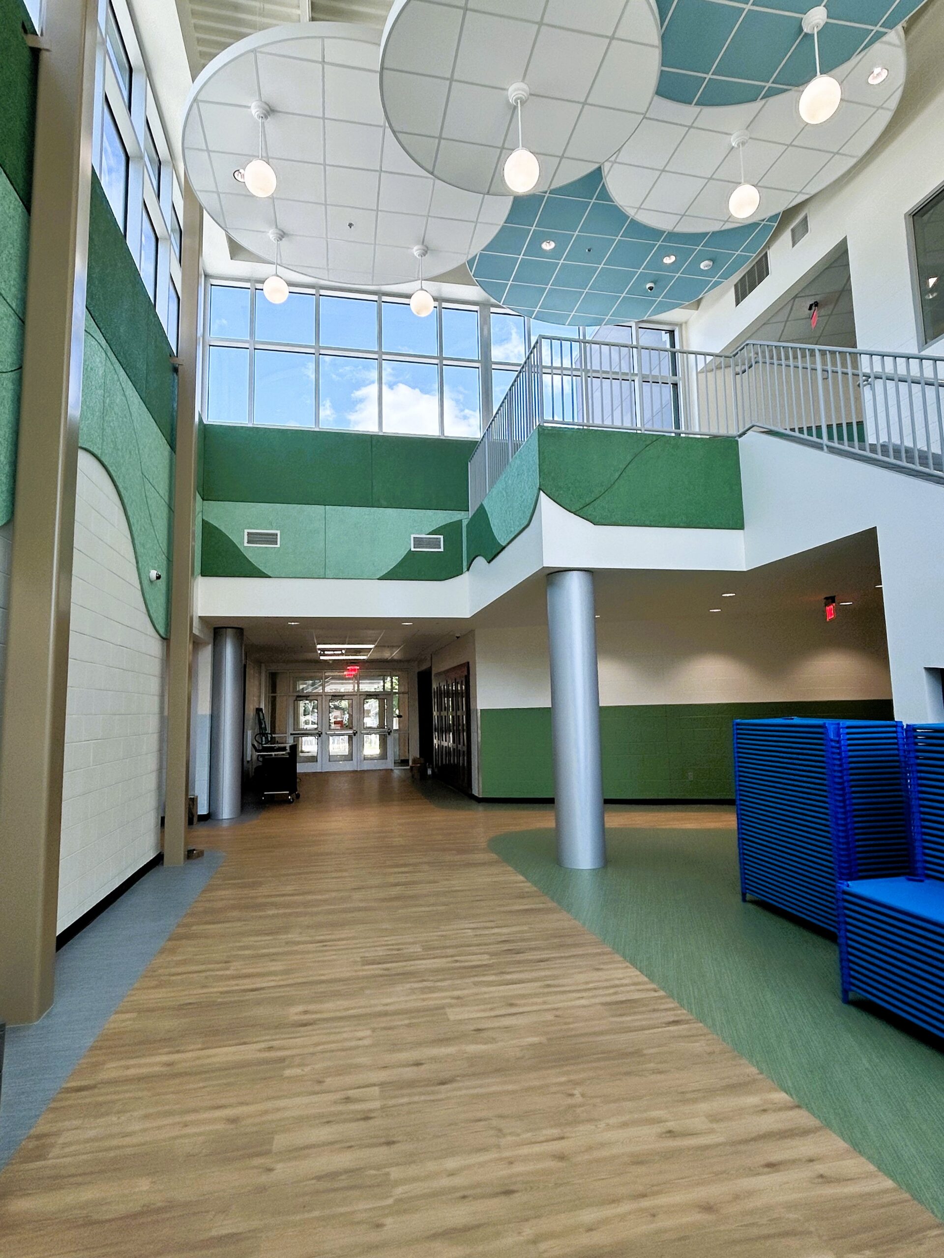 This project reflects a strong collaboration between Garmon and Company, Patcraft, Daltile, and Johnsonite to deliver a highly creative and technically demanding installation. The combination of custom radius LVT, coordinated carpet tile, and complex ceramic wall tile demonstrates exceptional craftsmanship and execution. UCPS East Elementary School stands as a compelling example of how design-driven flooring and wall finishes, when installed with precision and expertise, can elevate the built environment and create an inspiring, engaging space for students, faculty, and visitors.